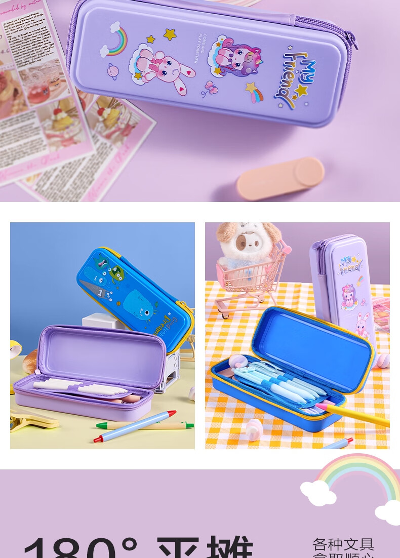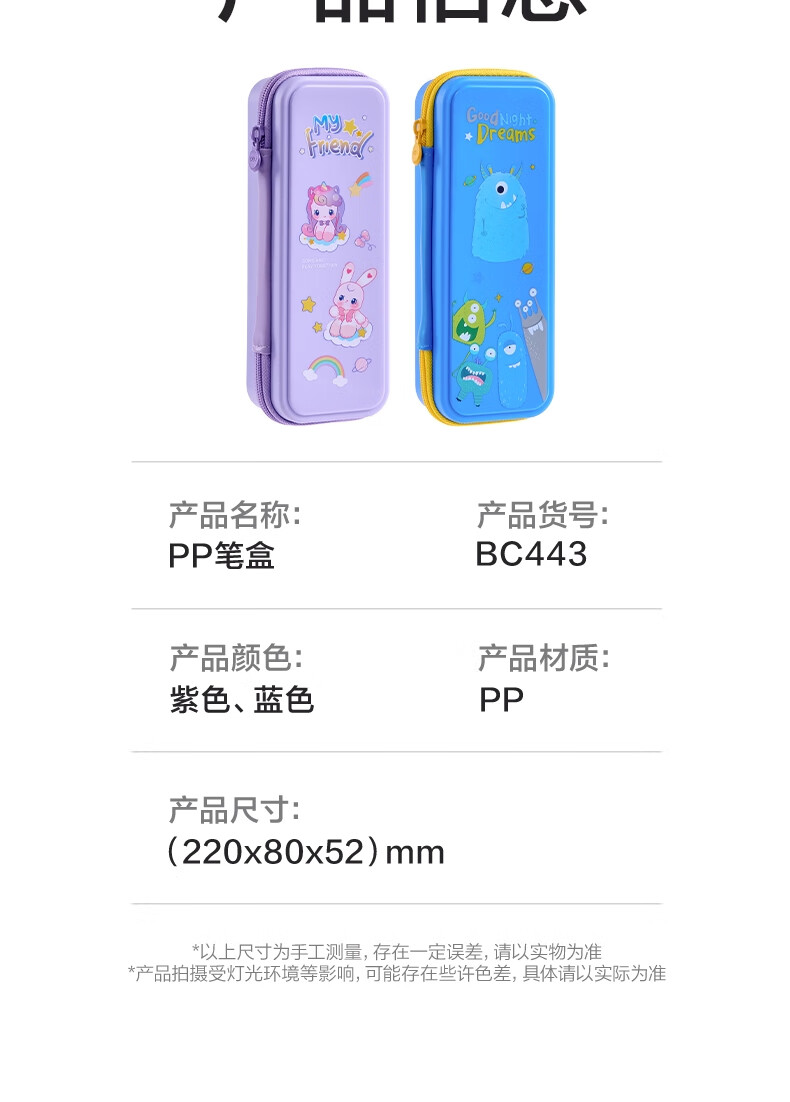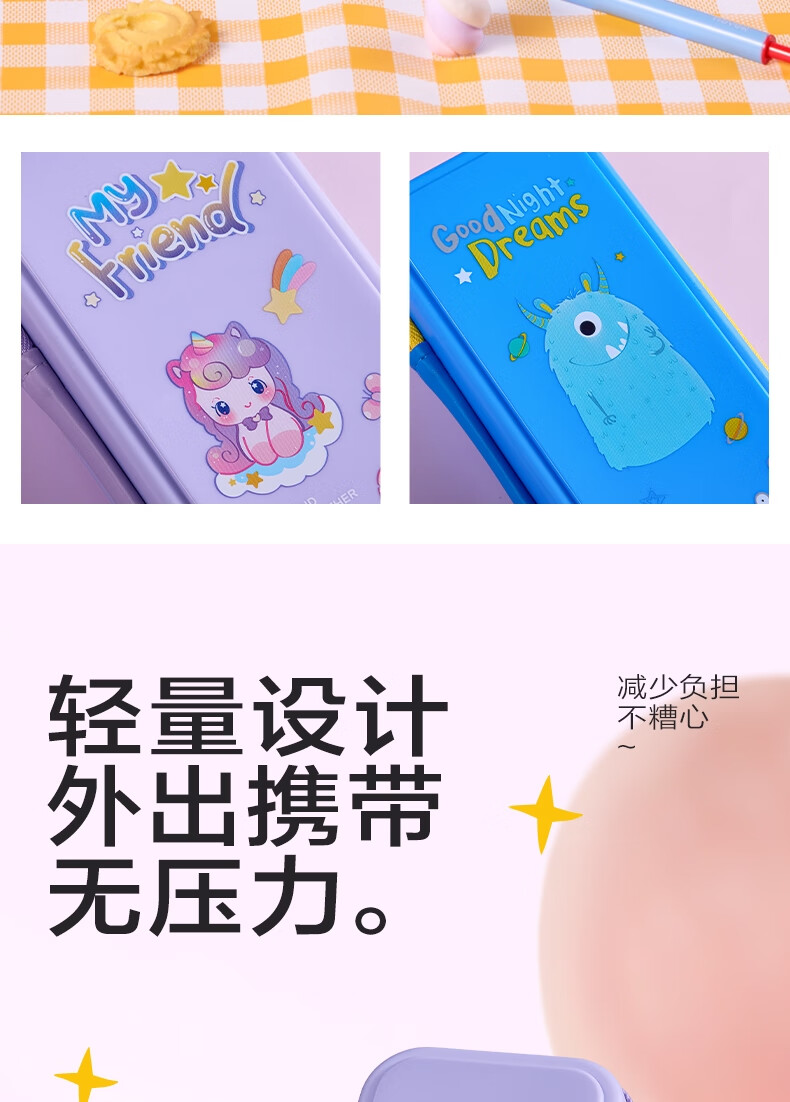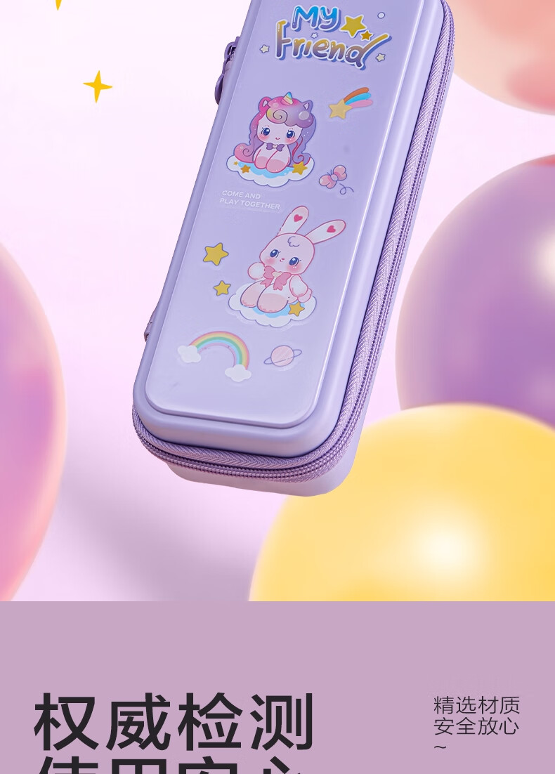 得力卡通PP学生笔袋 可爱高颜值笔盒 轻量便携大容量收纳文具盒 紫BC443开学必备