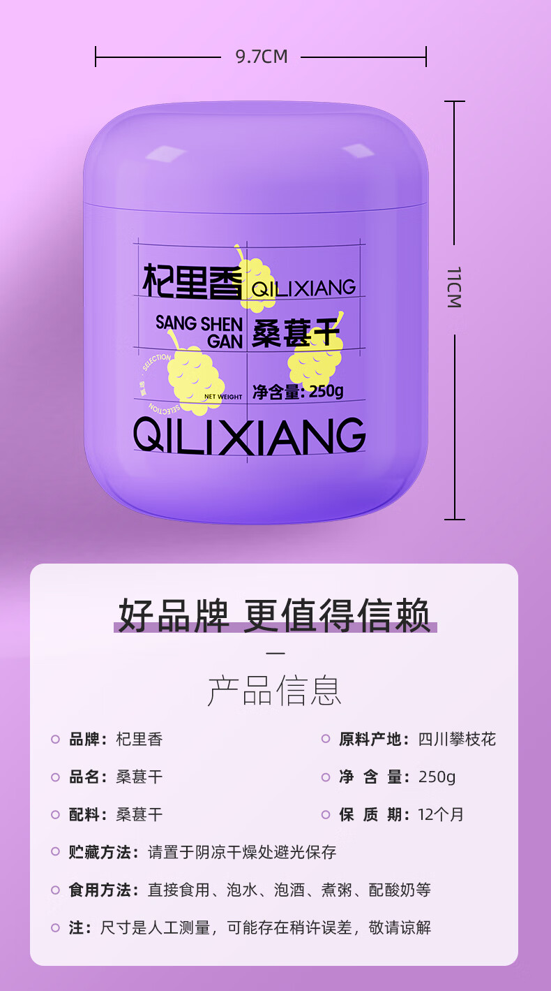 杞里香桑葚干500g 精选黑桑椹干即食桑椹子头茬桑葚干泡水养生桑葚茶