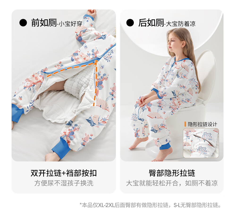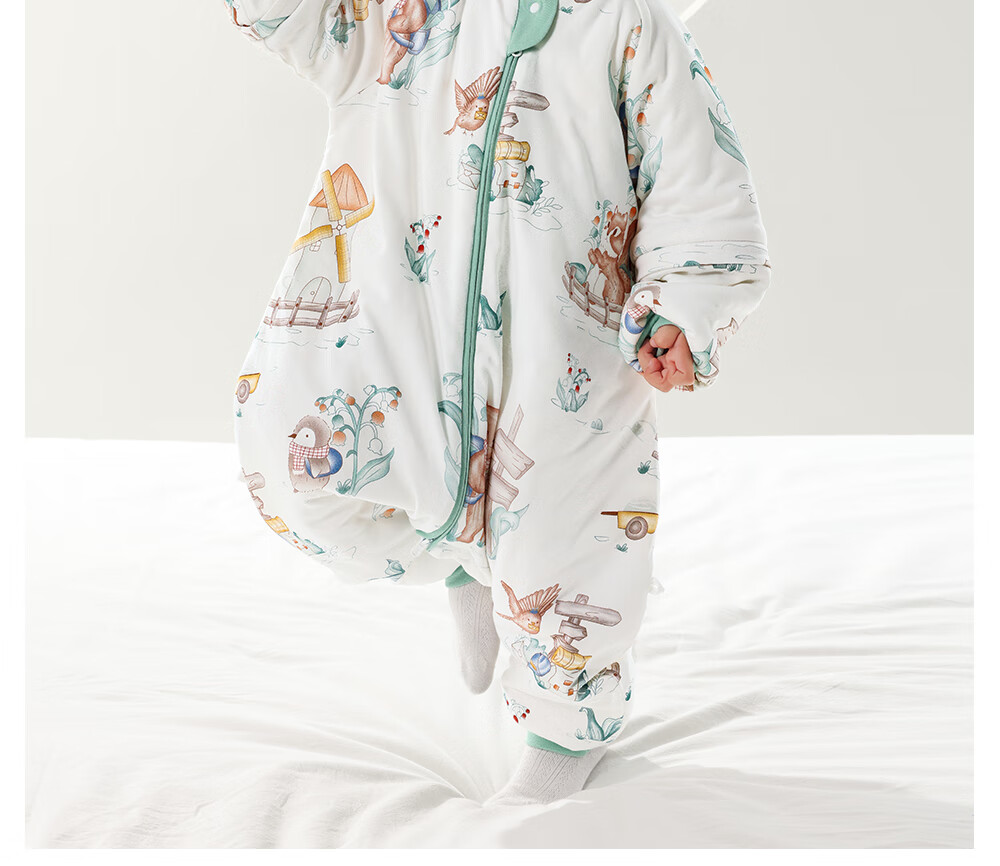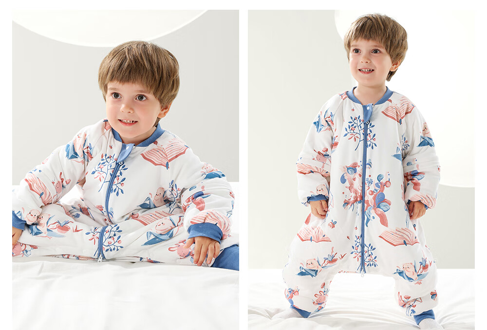 贝肽斯婴儿睡袋秋冬恒温儿童分腿睡袋婴幼儿防踢被单导防湿冷双层 繁花L