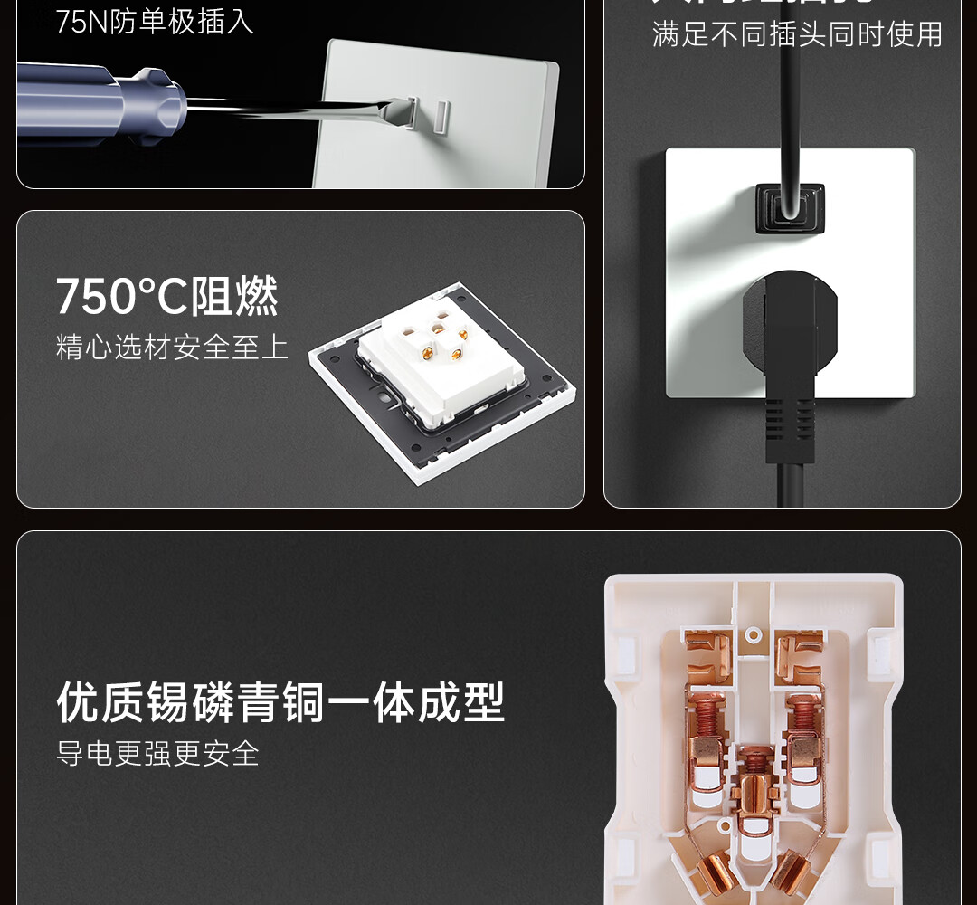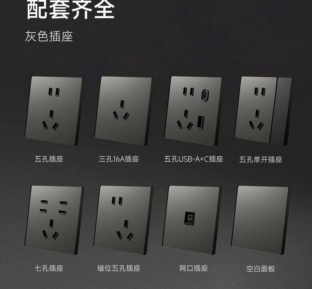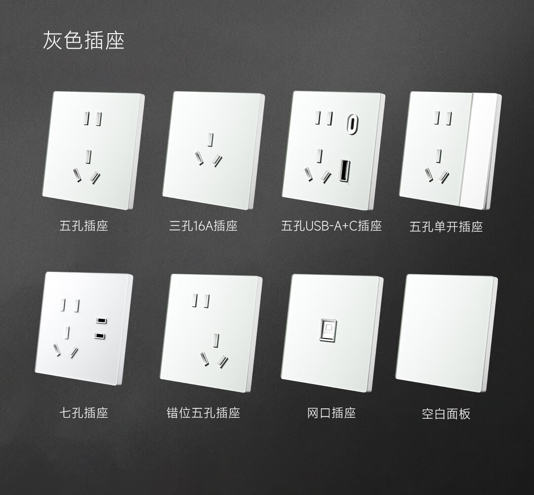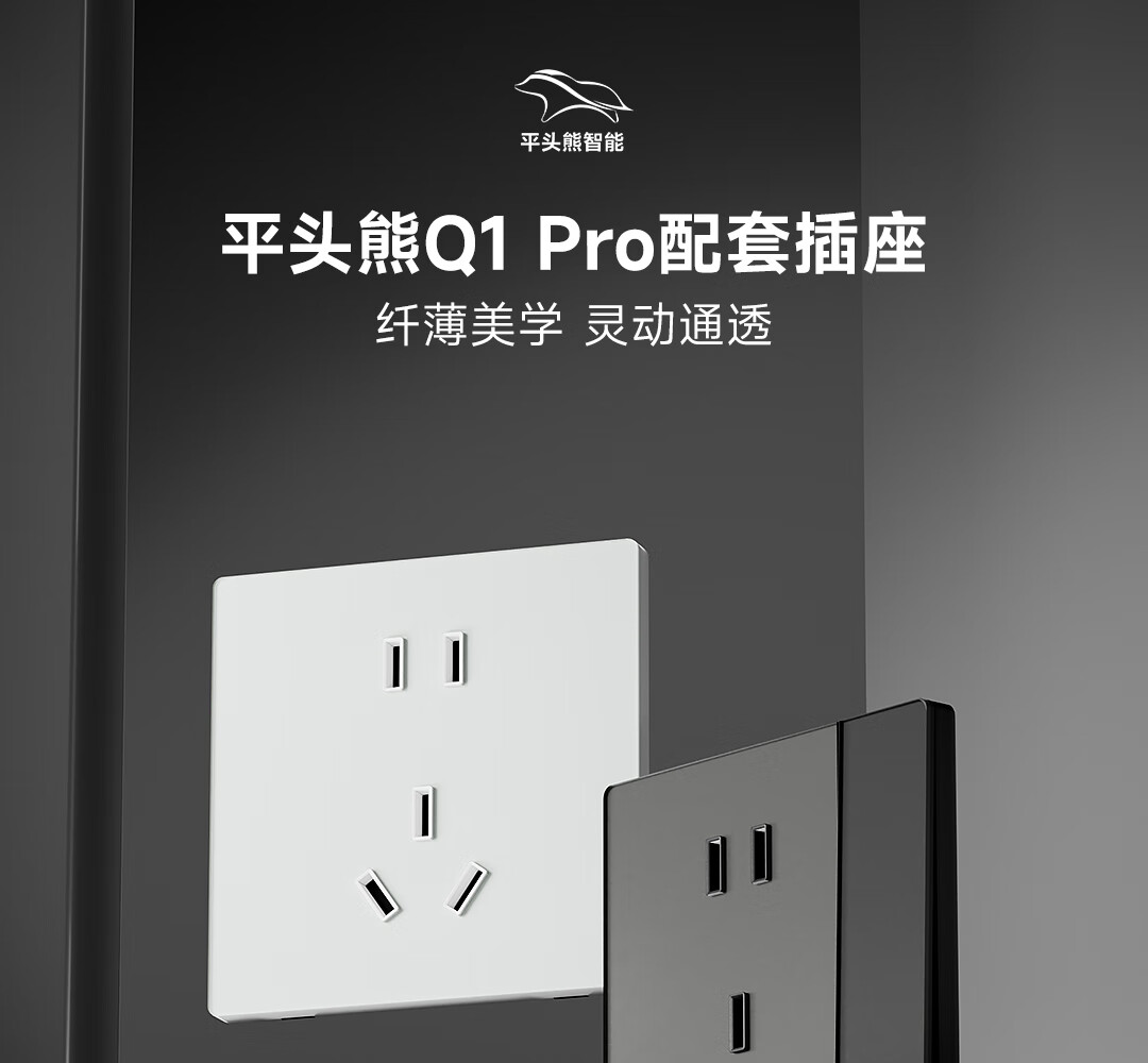 平头熊Q1PRO配套开关插座 10A正五孔插座 86型二三插暗装墙壁插座 白色