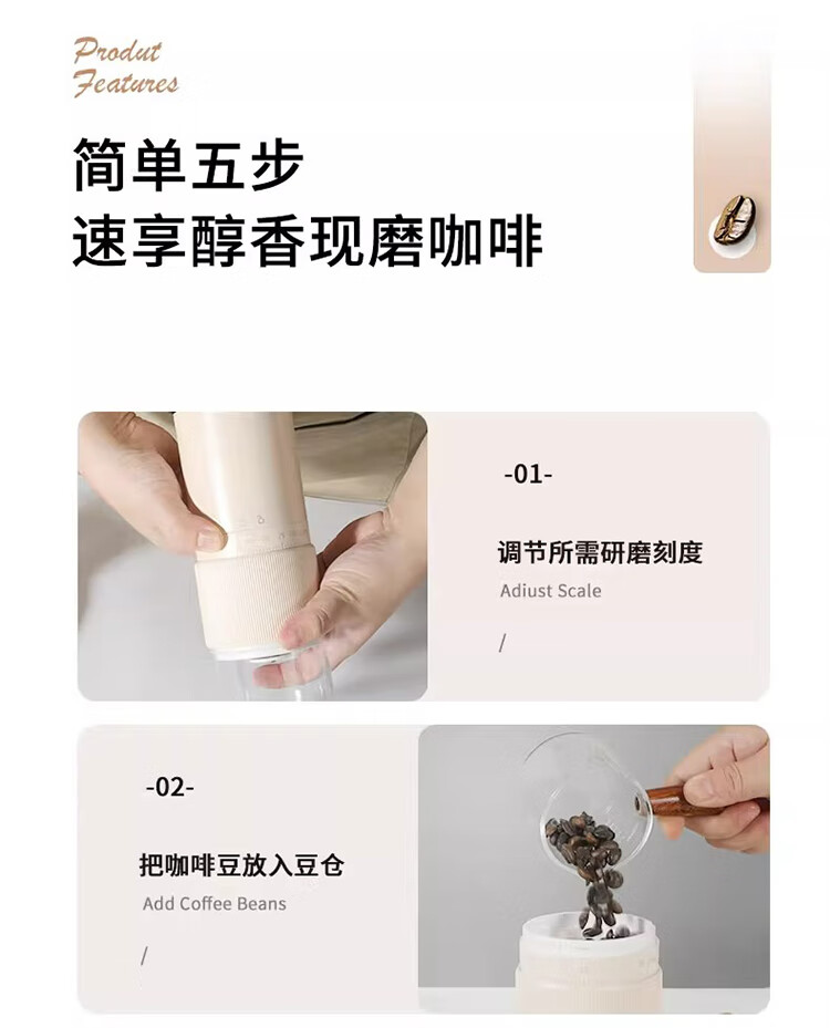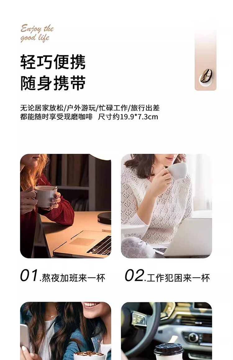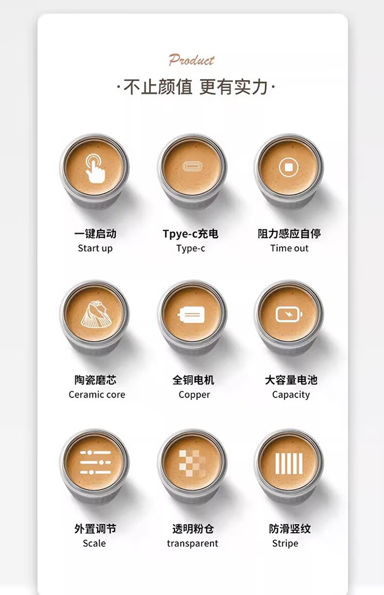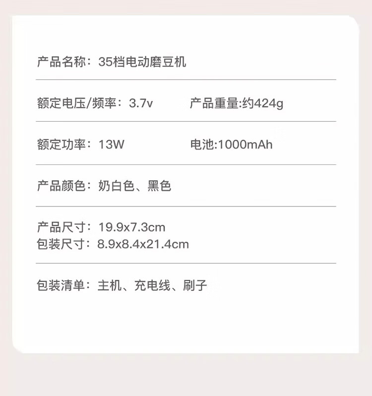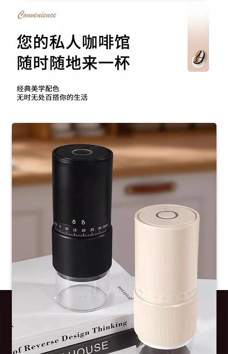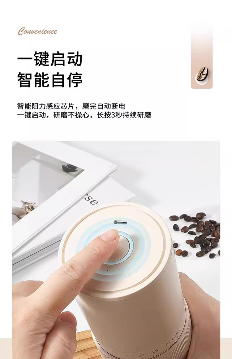 筏芯德国咖啡豆研磨机电动磨豆机家用小型磨粉机全自动手磨咖啡机 曜石黑电动磨豆机【35档外置刻度调节粗细】