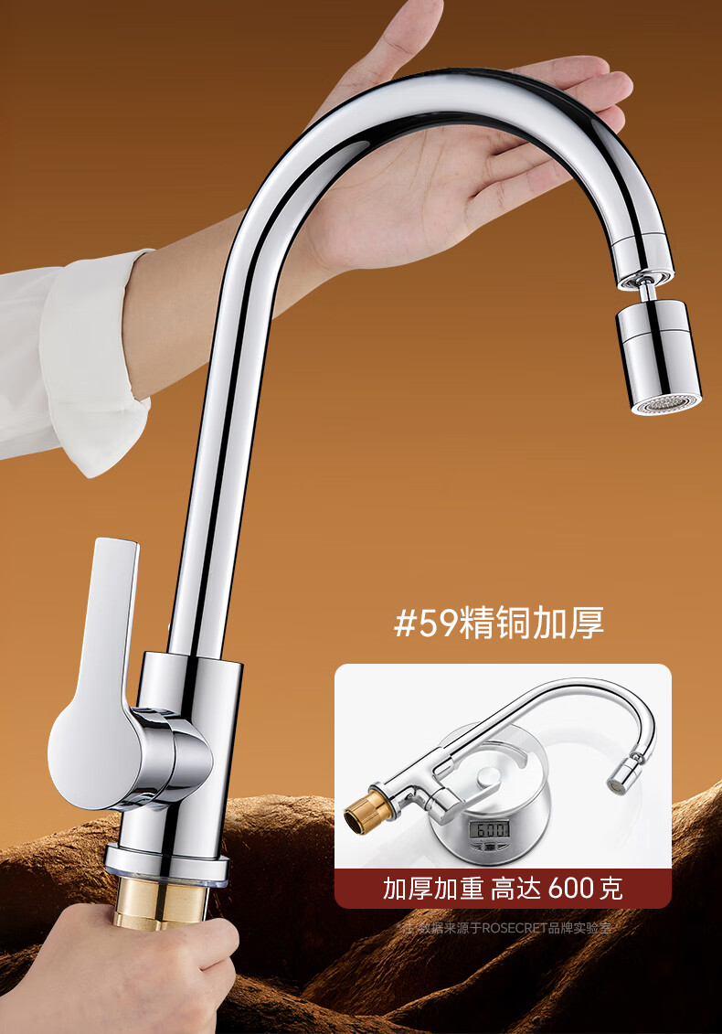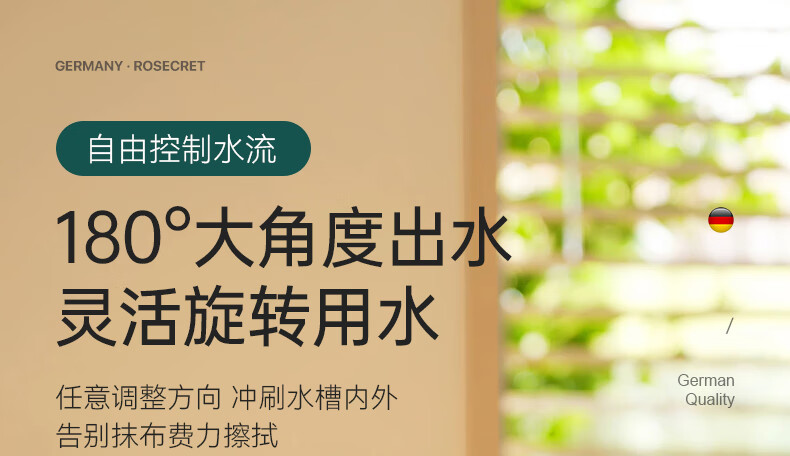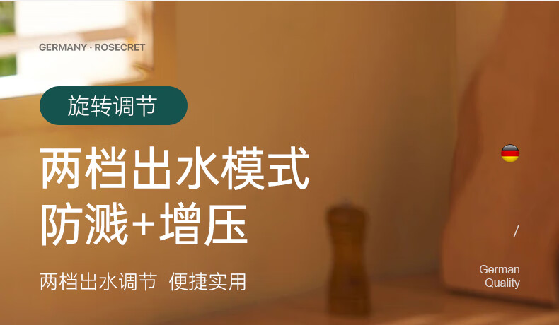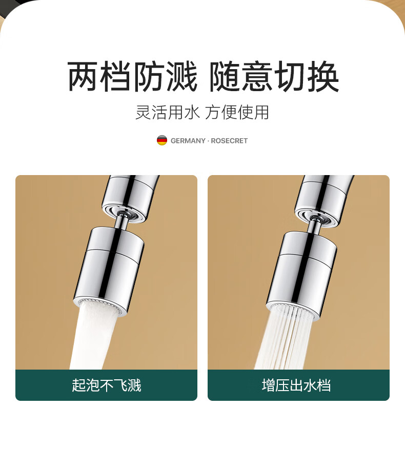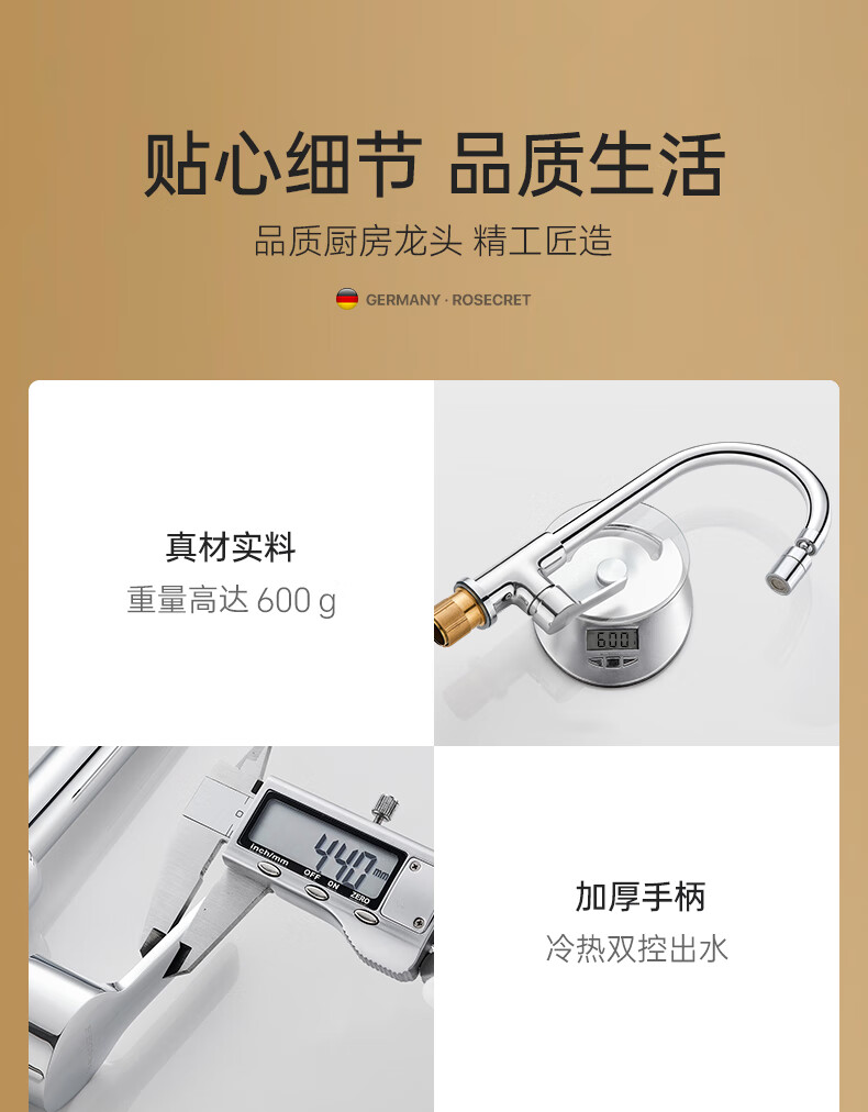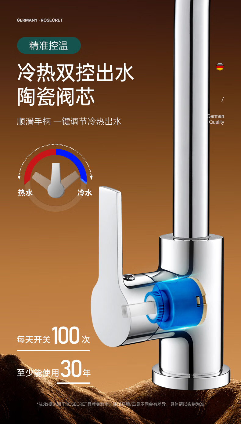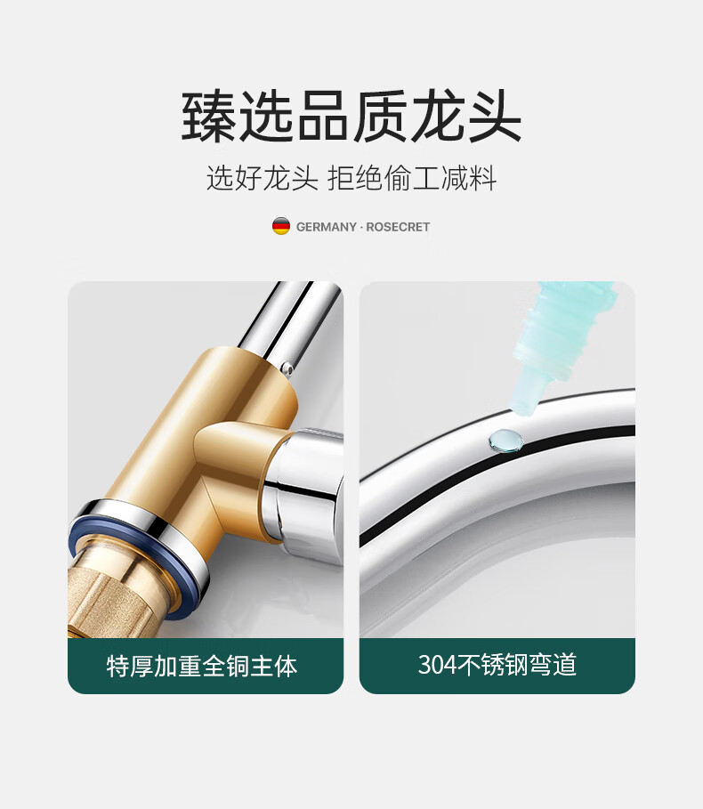 Rosecret【德国】全铜主体厨房水龙头高抛冷热水器二合一万向洗菜盆水龙头 厨房水槽双温龙头【两档亮银色】 万向增压防溅丨配80cm冷热进水管*2