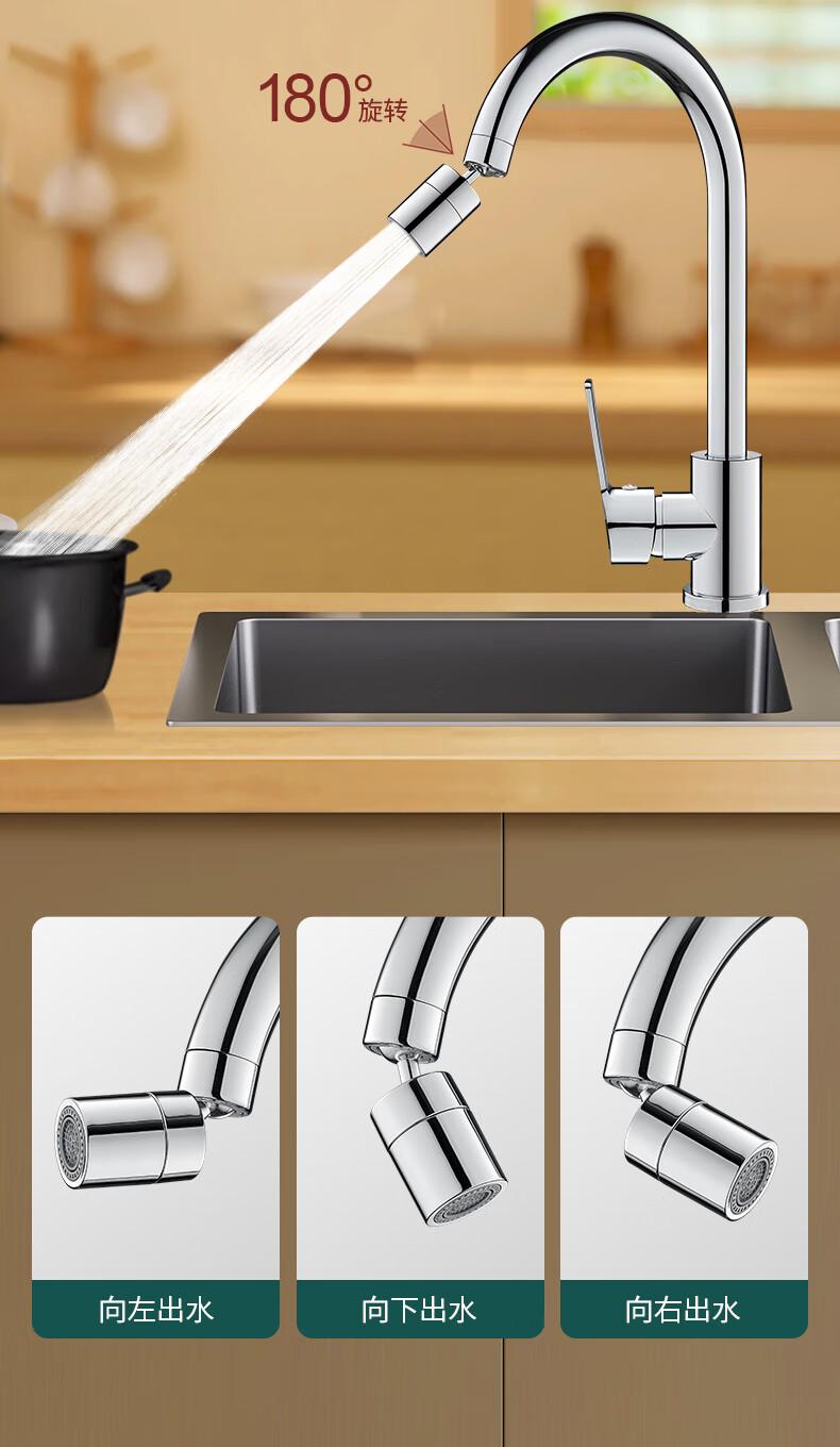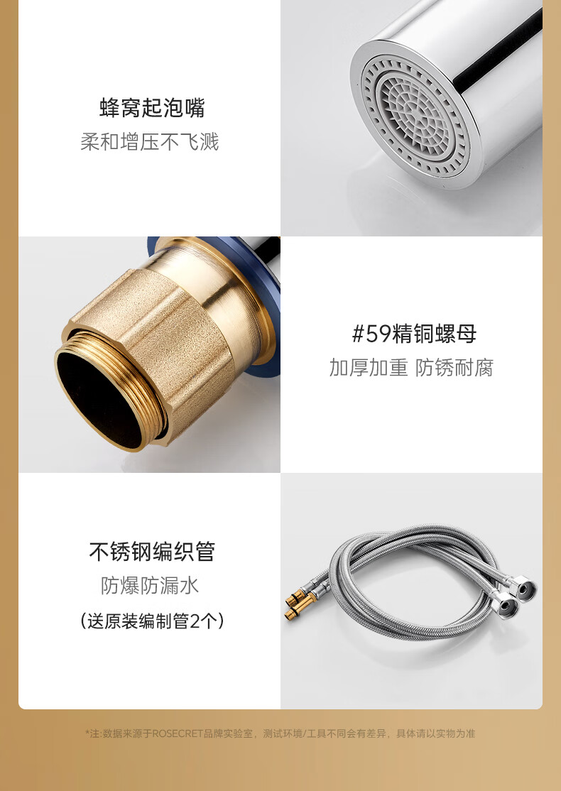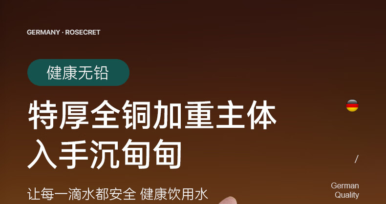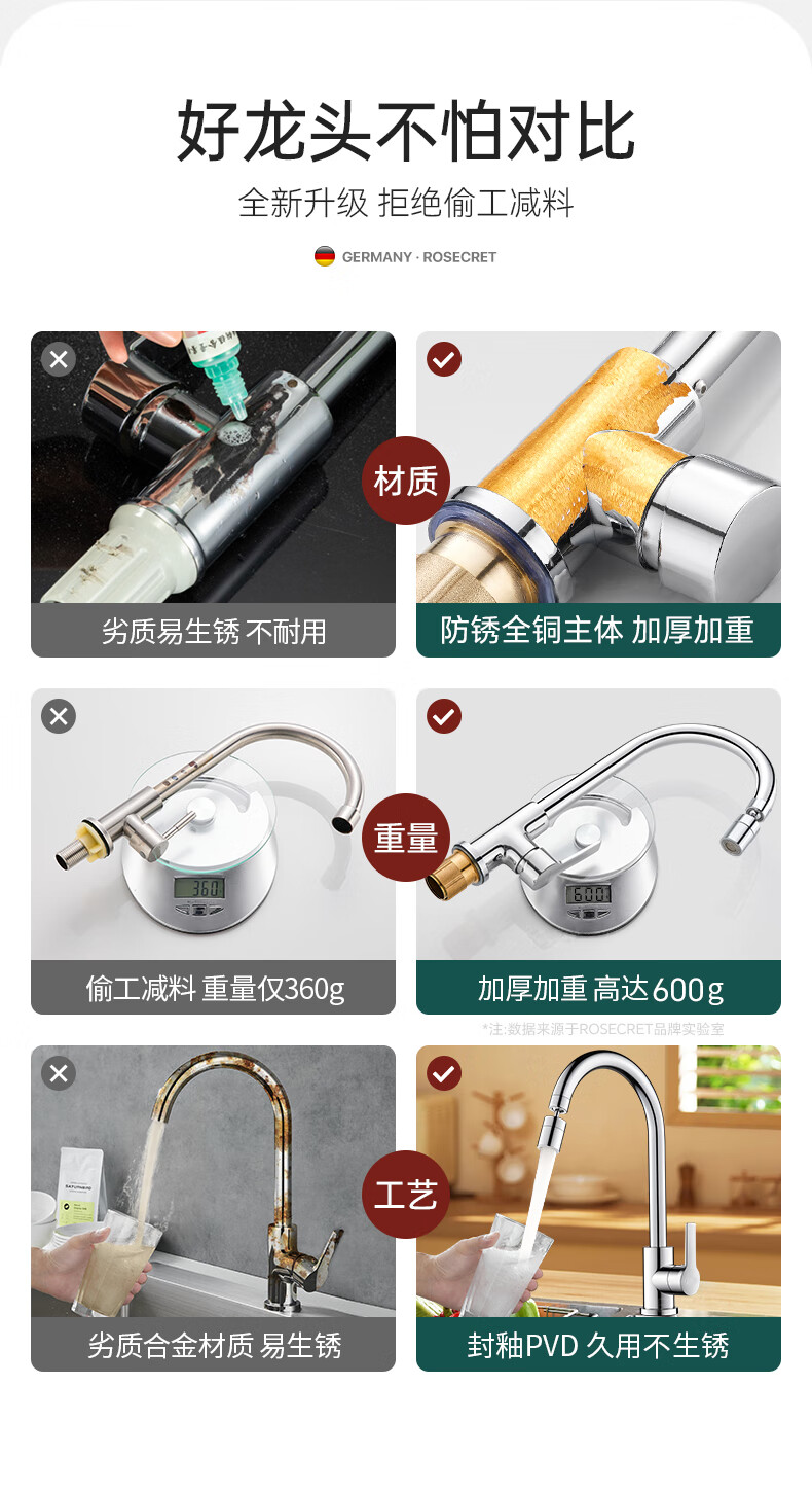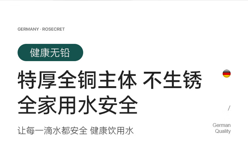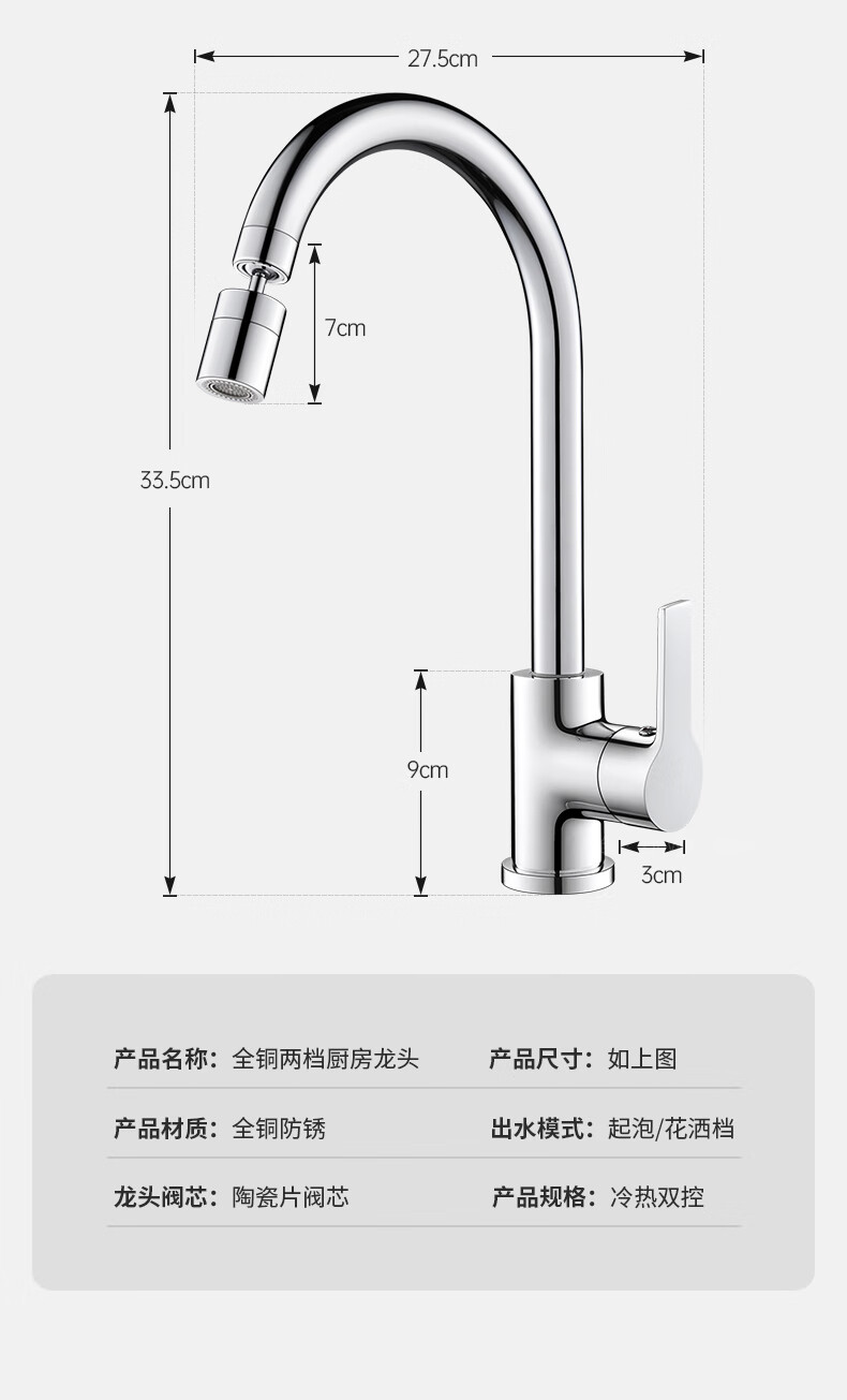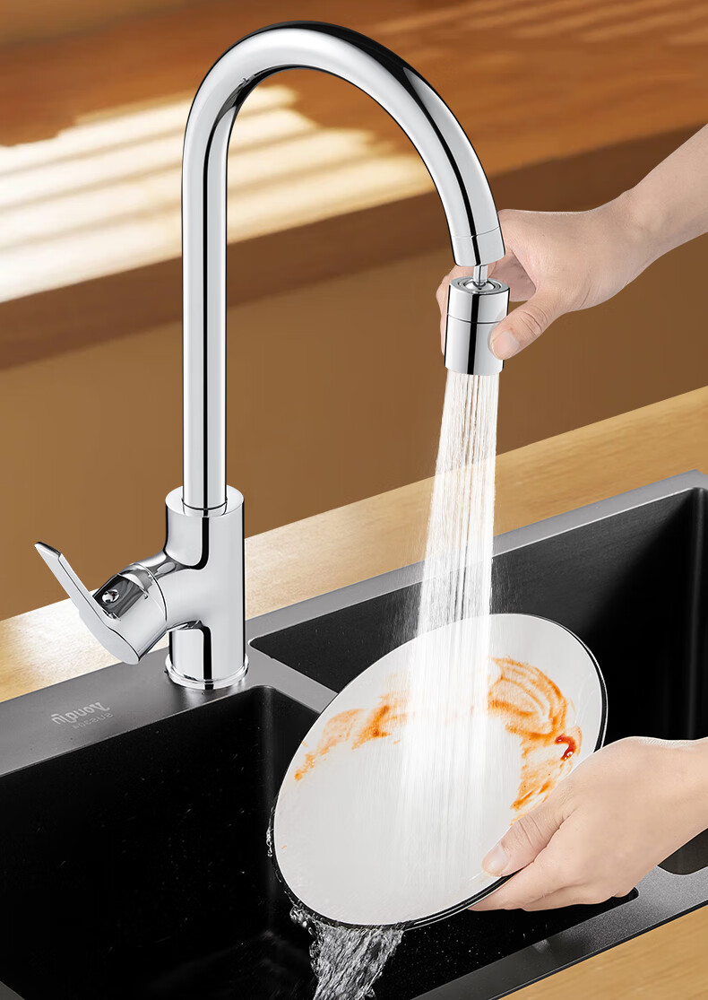 Rosecret【德国】全铜主体厨房水龙头高抛冷热水器二合一万向洗菜盆水龙头 厨房水槽双温龙头【两档亮银色】 万向增压防溅丨配80cm冷热进水管*2