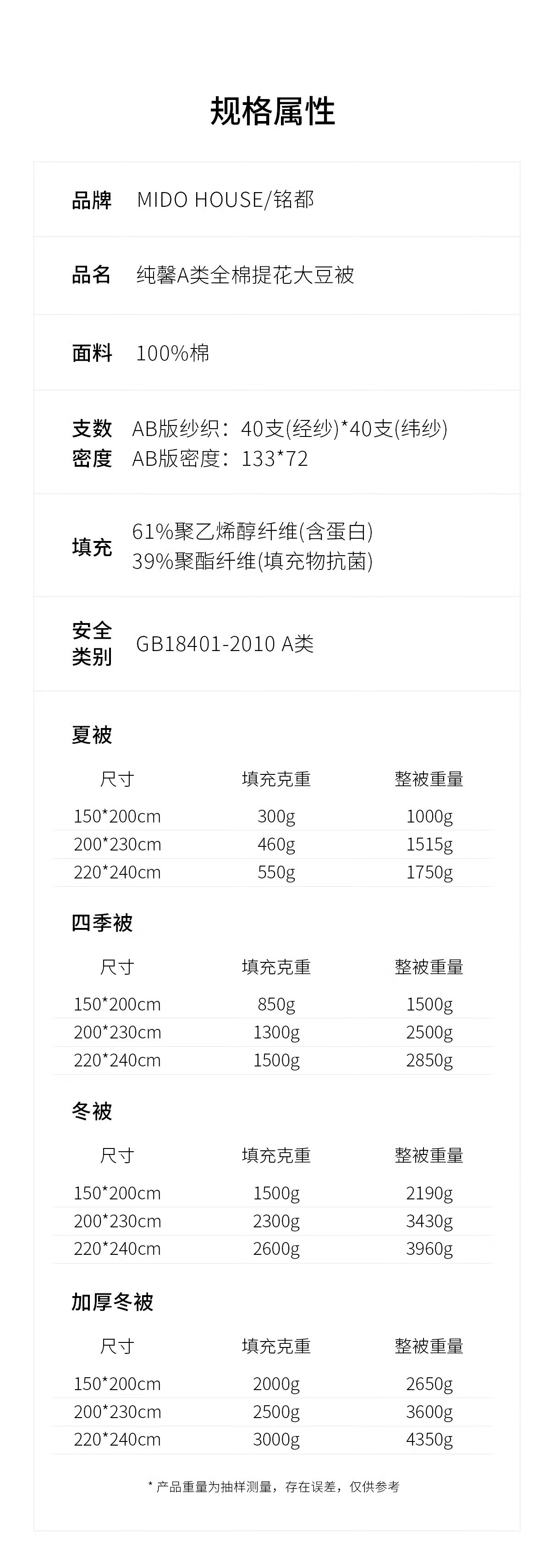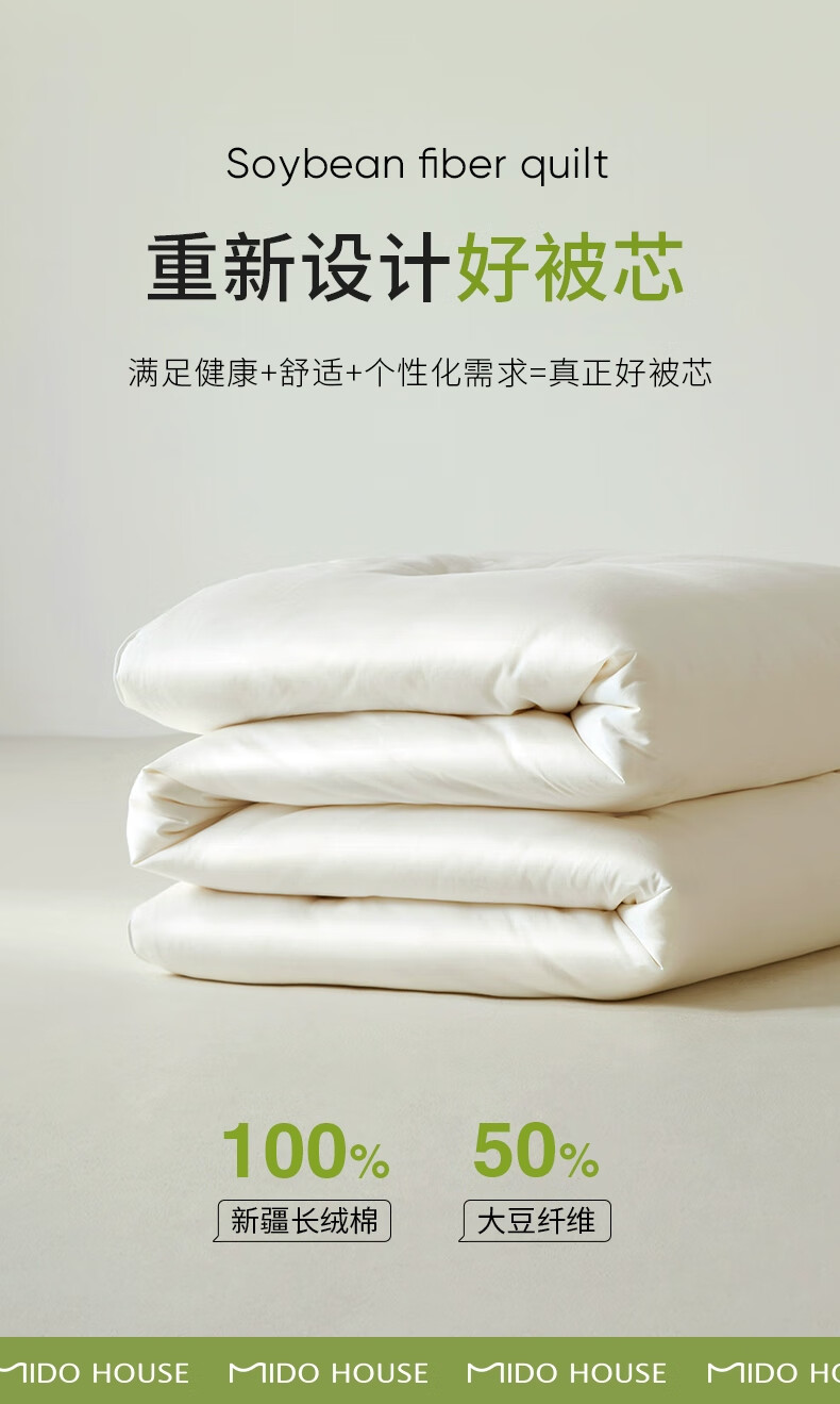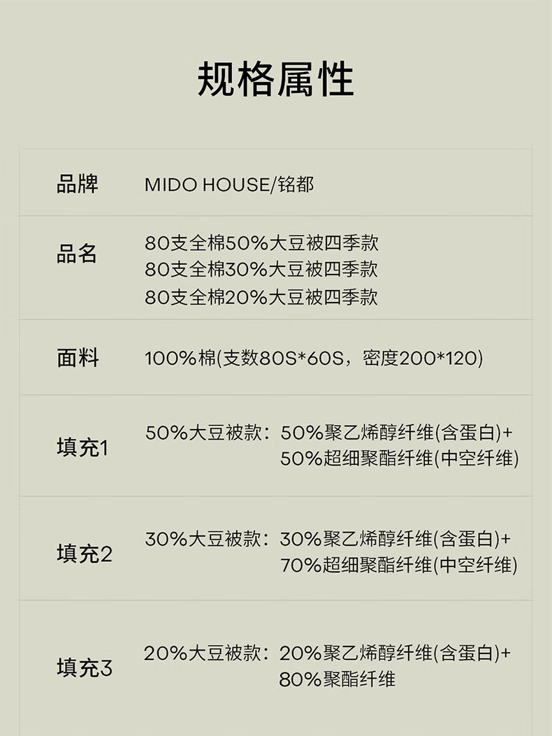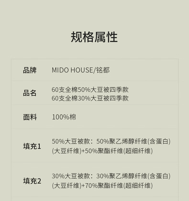 MIDO HOUSE铭都大豆纤维被子A类100%纯棉冬被秋冬保暖单双人二合一子母被 60支全棉50%大豆被 加厚冬被200*230cm【8度以下】