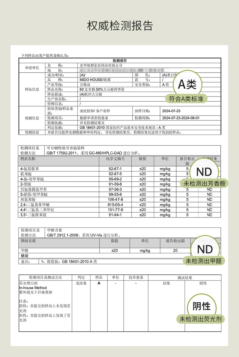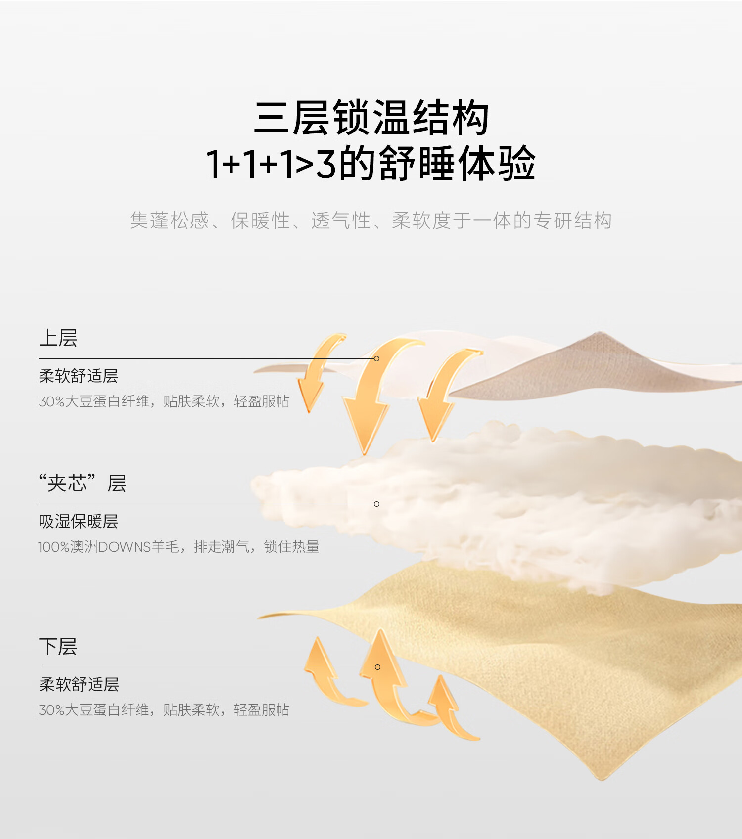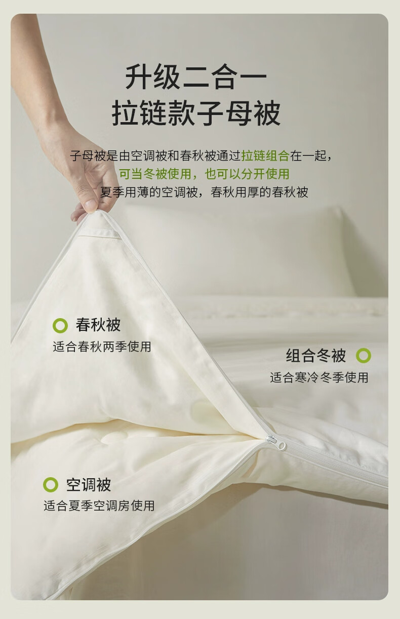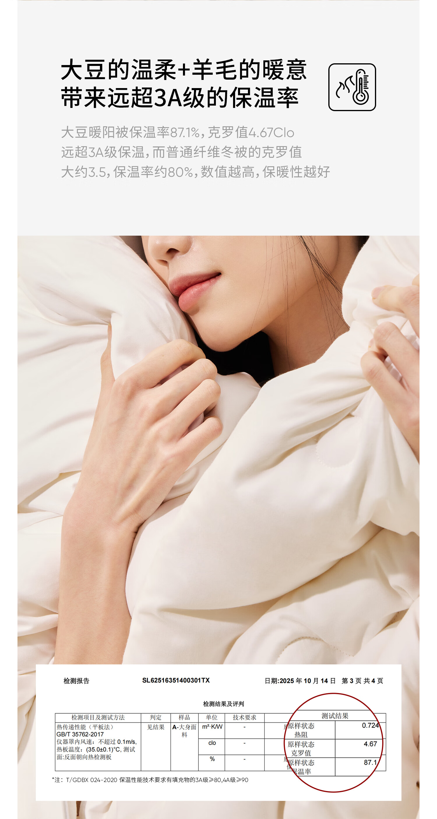 MIDO HOUSE铭都大豆纤维被子A类100%纯棉冬被秋冬保暖单双人二合一子母被 60支全棉50%大豆被 加厚冬被200*230cm【8度以下】