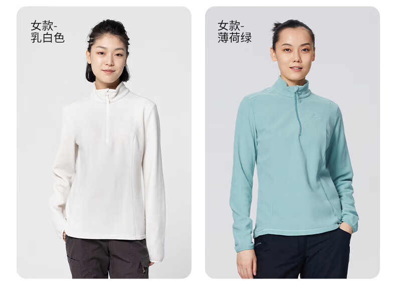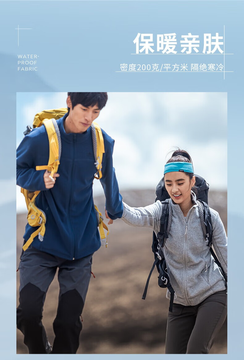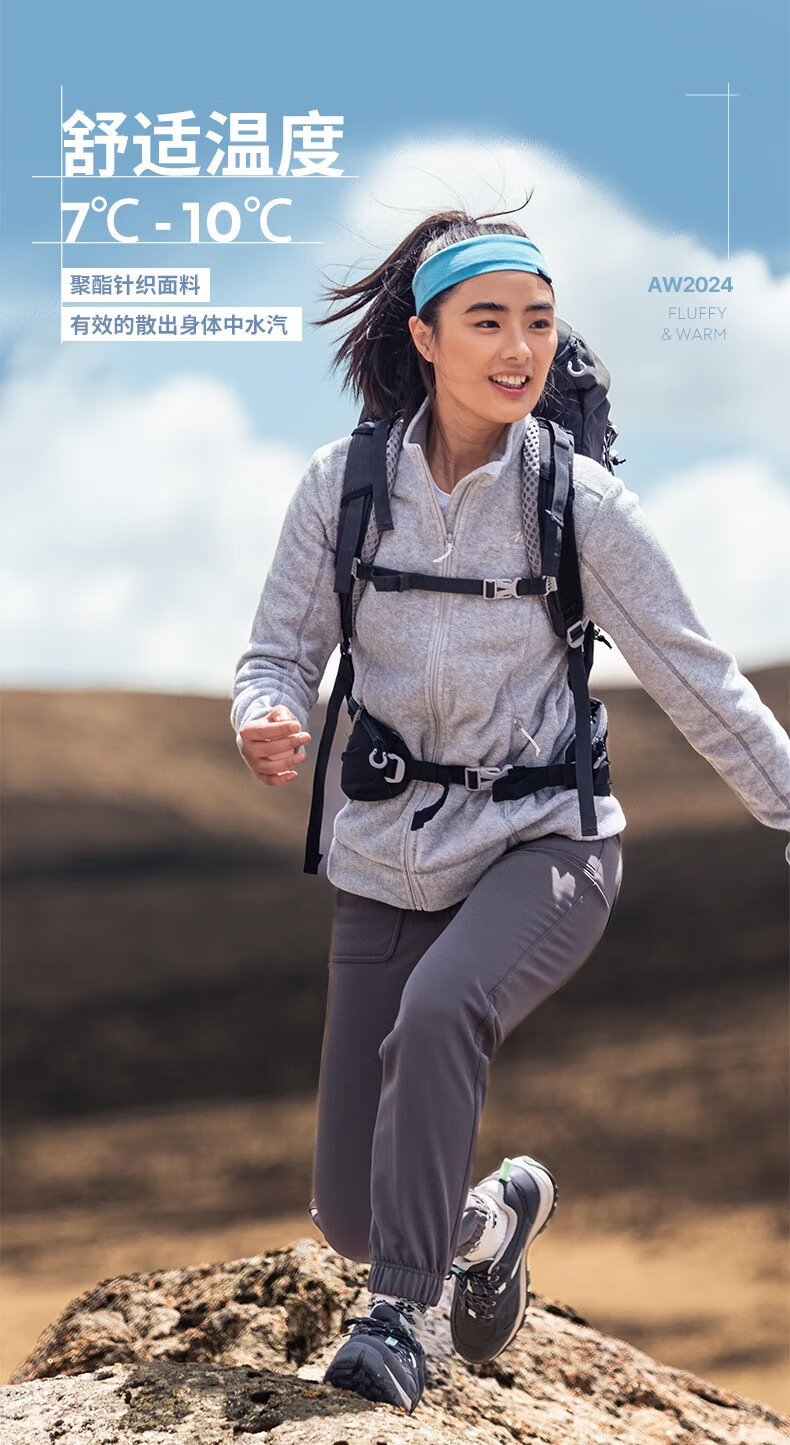 迪卡侬(DECATHLON)保暖绒衣户外抓绒衣女运动宽松秋摇粒绒外套冲锋衣内胆 MH100 半拉链-月岩灰 L