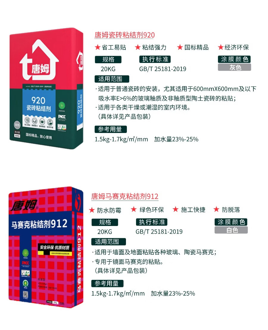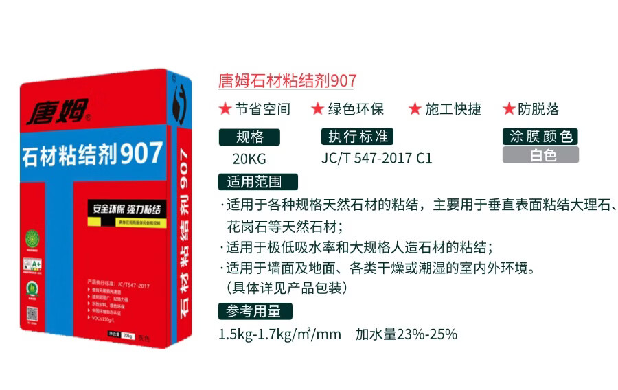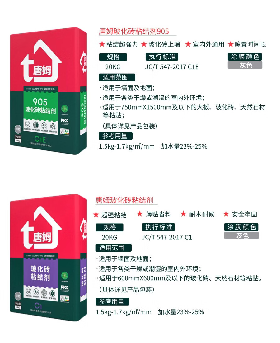 唐姆玻化砖粘结剂905 C1E 瓷砖胶 强力粘合剂