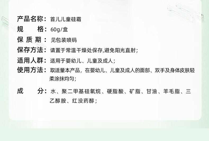 首儿儿童肤乐霜硅霜面霜婴儿面霜润肤保湿护手霜身体乳护肤品 硅霜60g丨滋润保湿