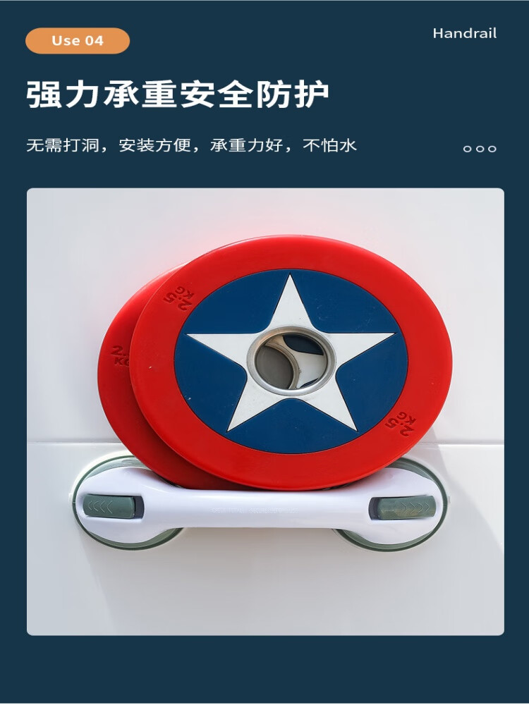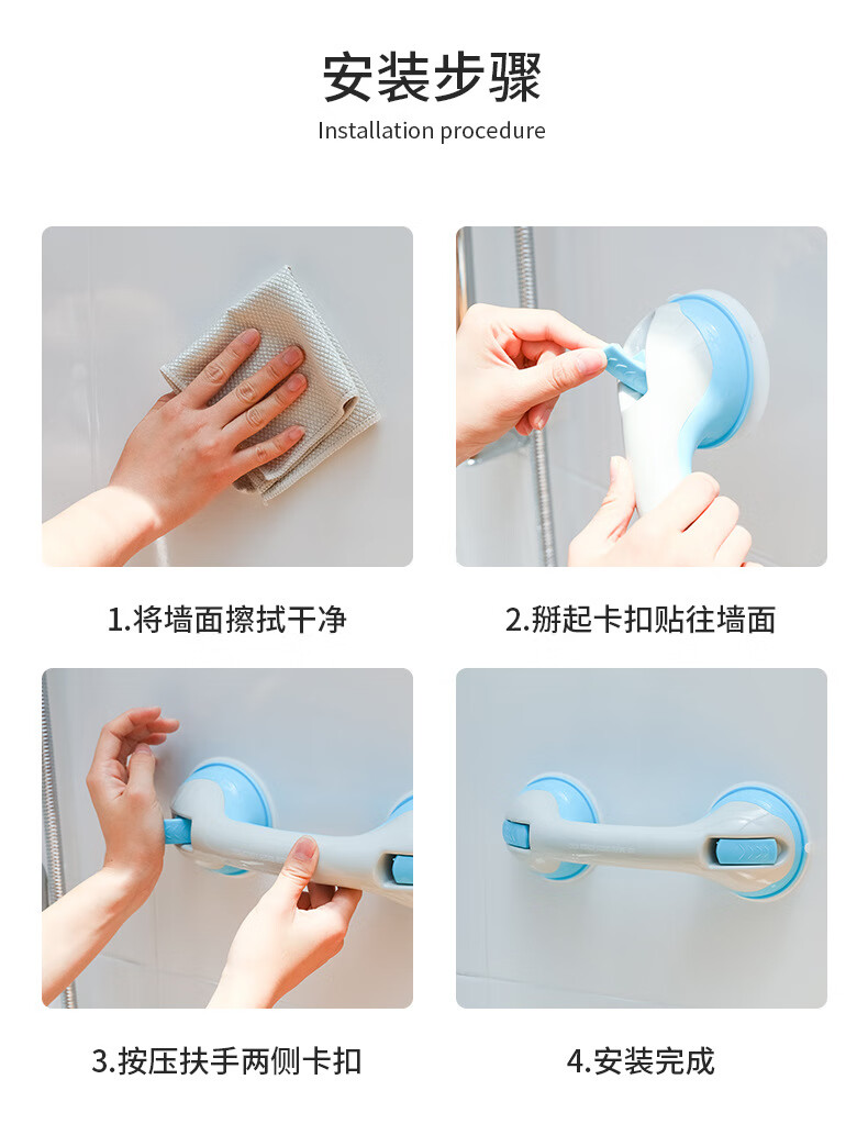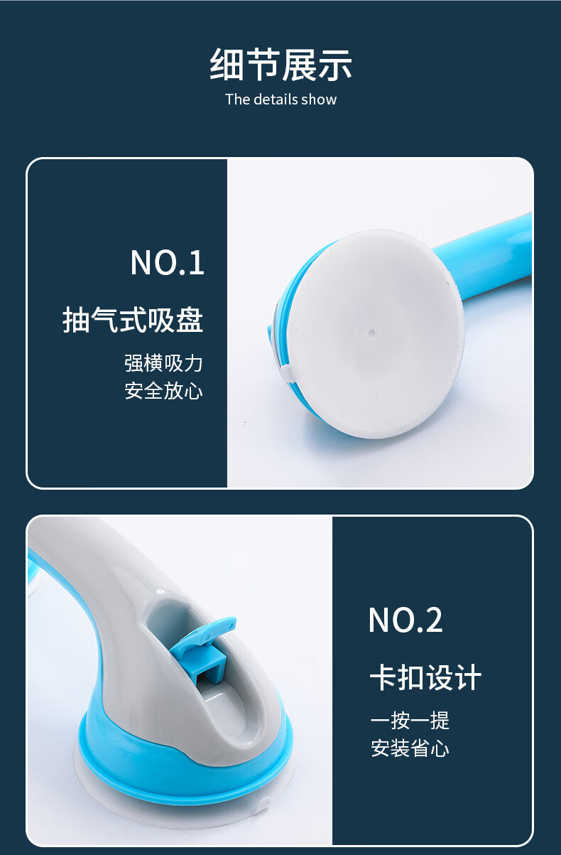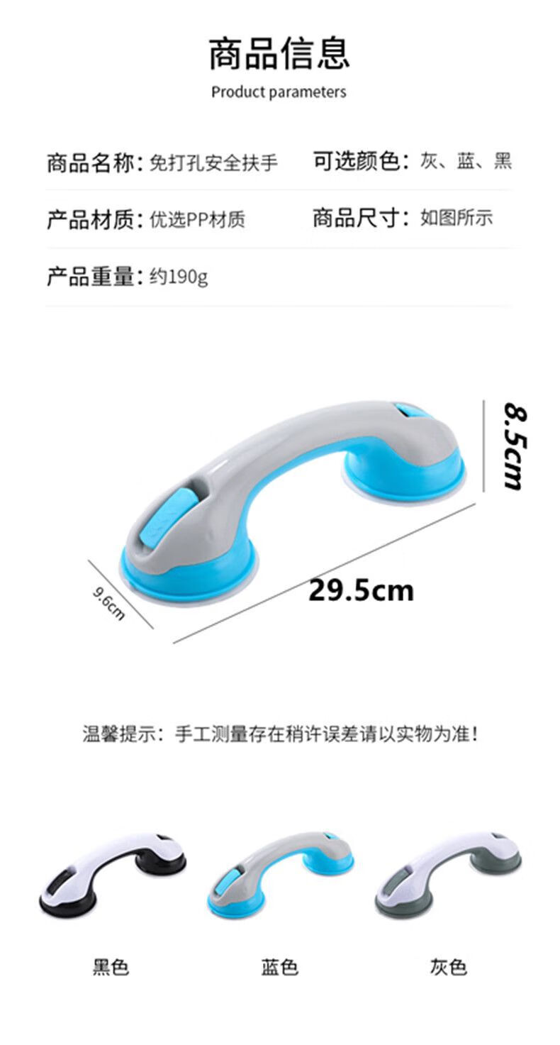映棠【厂家直供】浴室扶手强力吸盘厕所马桶扶手老人儿童防滑安全把手 OPP双袋装白灰(两个装)