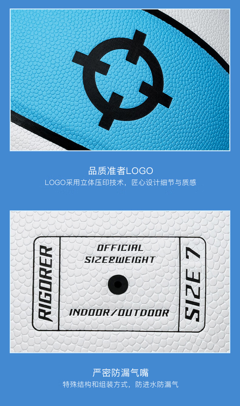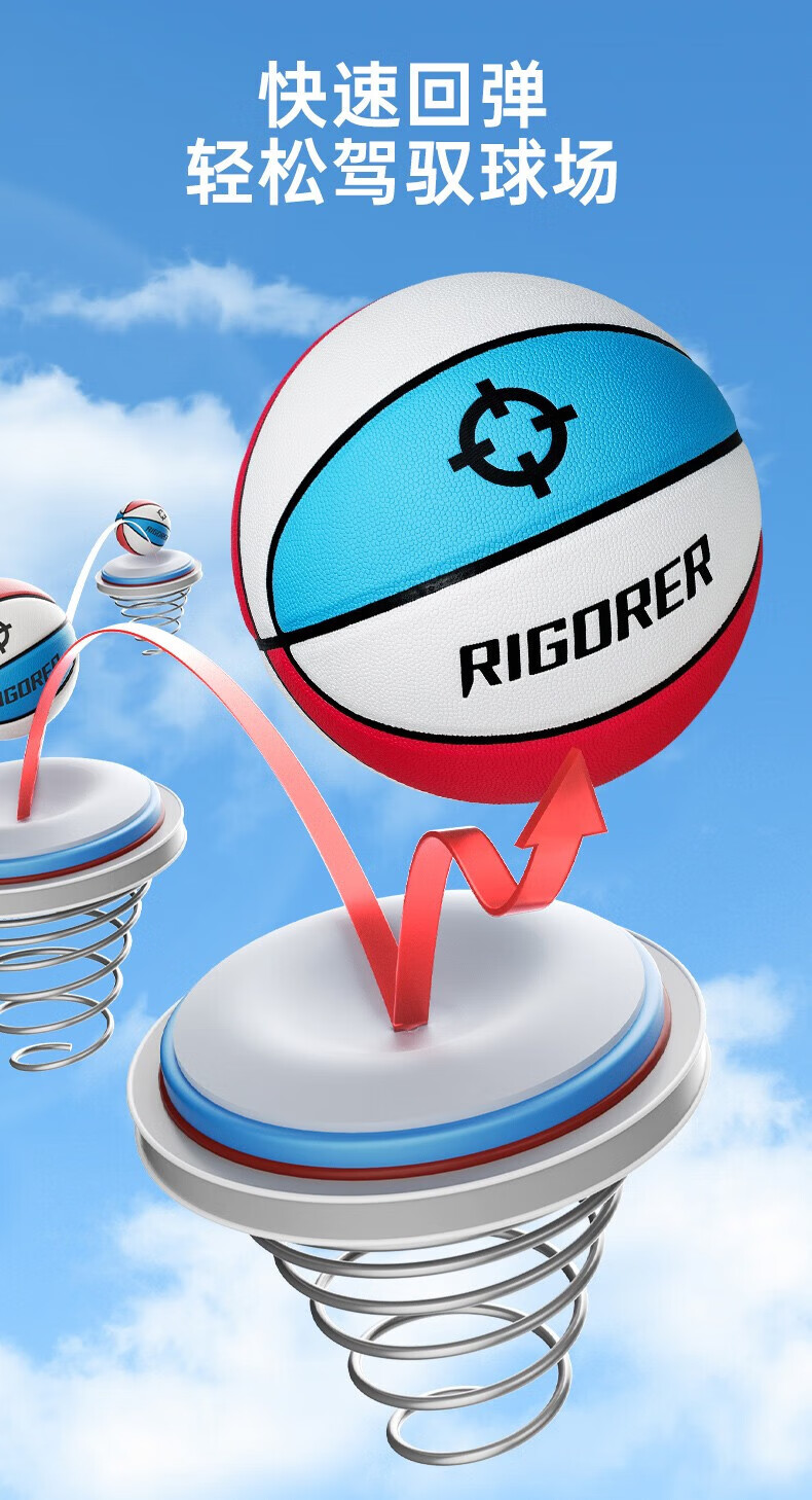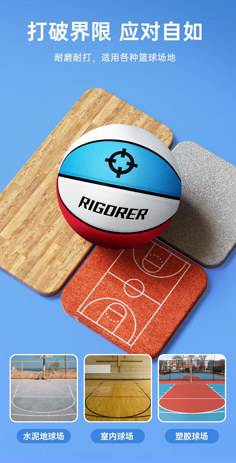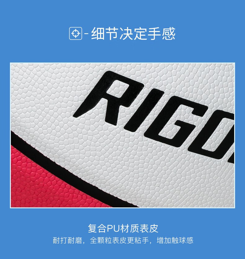 准者(RIGORER)篮球7号室内外通用耐磨训练专用球青少年PU软皮球高弹 经典红白蓝-训练比赛专用 7号篮球【送全套赠品】