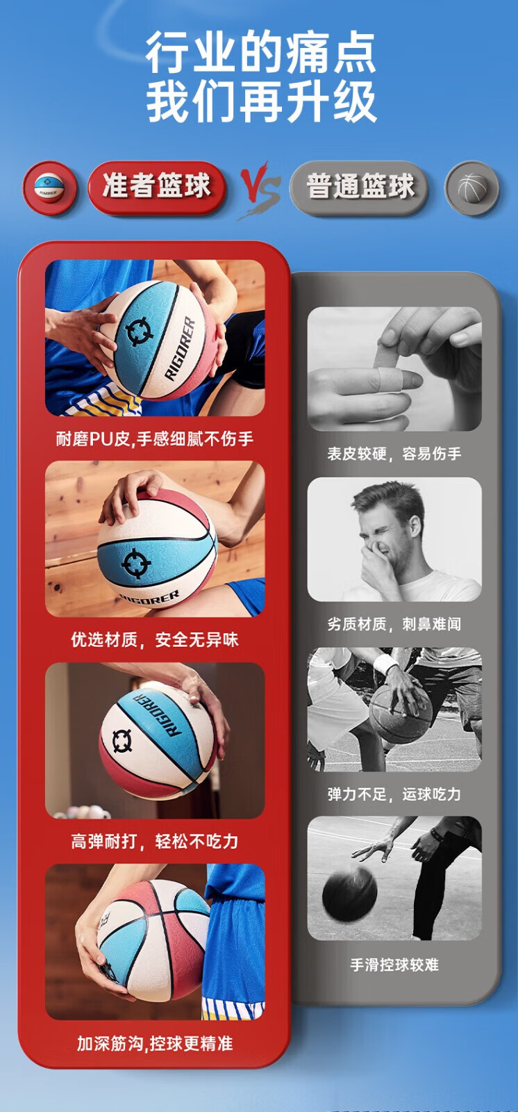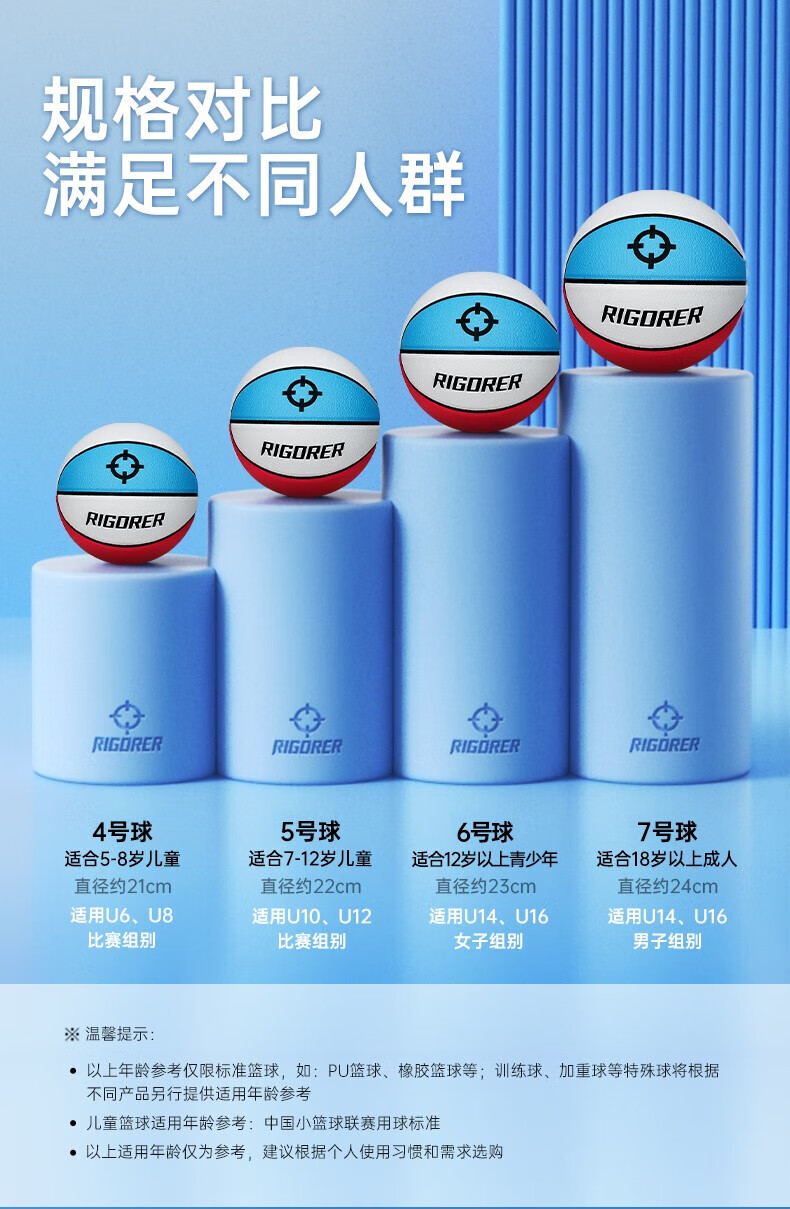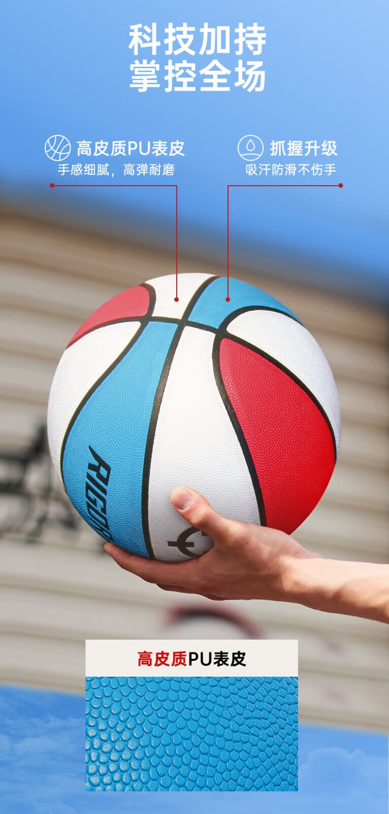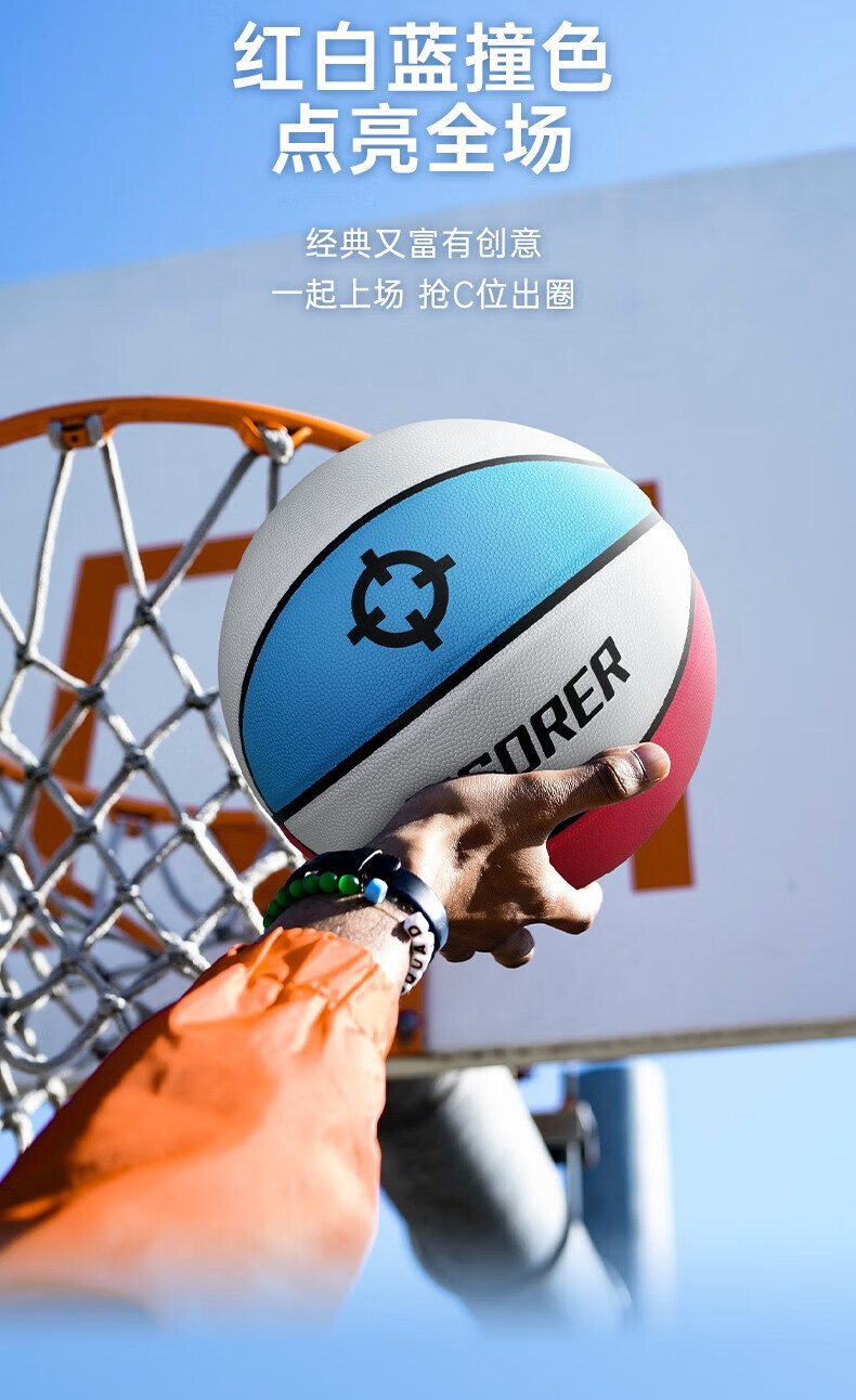 准者(RIGORER)篮球7号室内外通用耐磨训练专用球青少年PU软皮球高弹 经典红白蓝-训练比赛专用 7号篮球【送全套赠品】