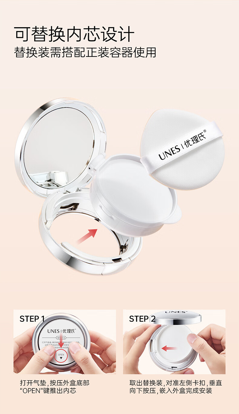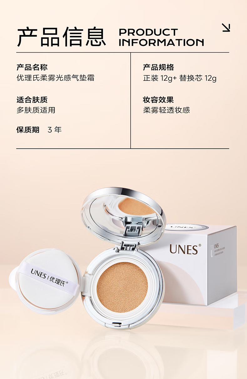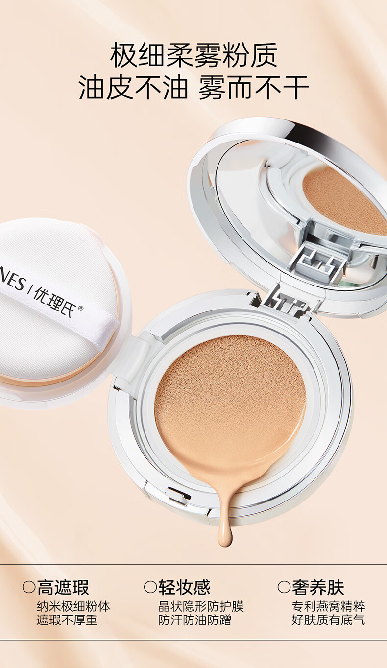 优理氏气垫霜BB霜定妆油皮控油遮瑕保湿持久不脱妆粉底液生日礼物送女友 单盒装