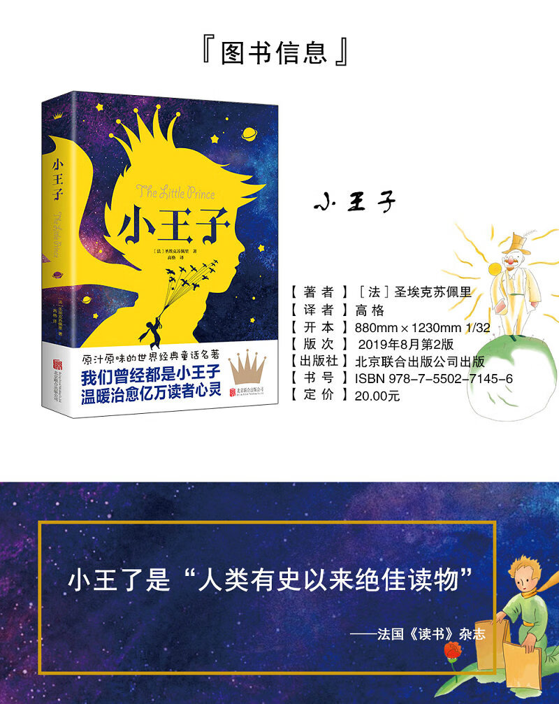 小王子书中小学生阅读课外书世界名著昆虫记学校推荐经典 小王子(一本装)