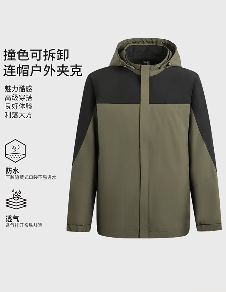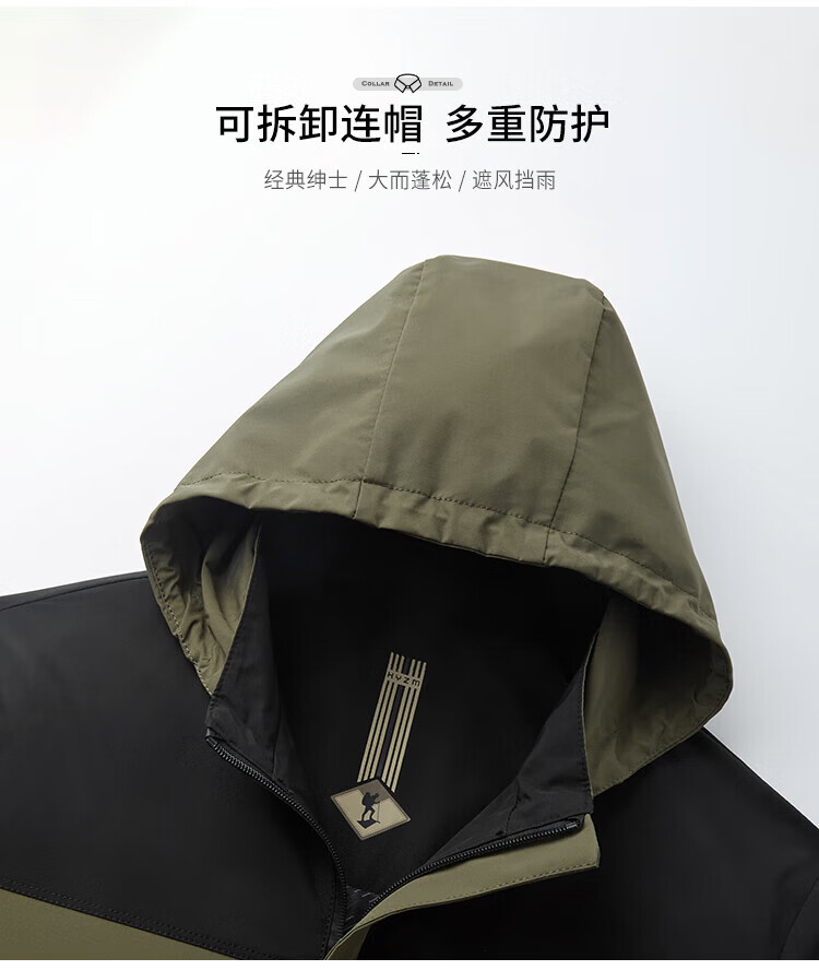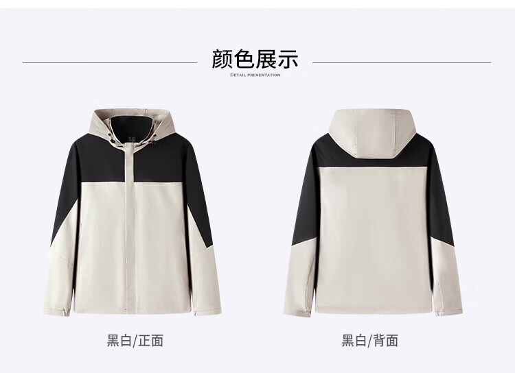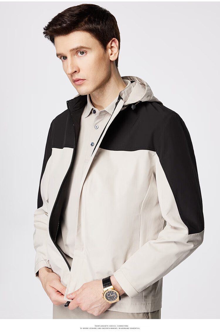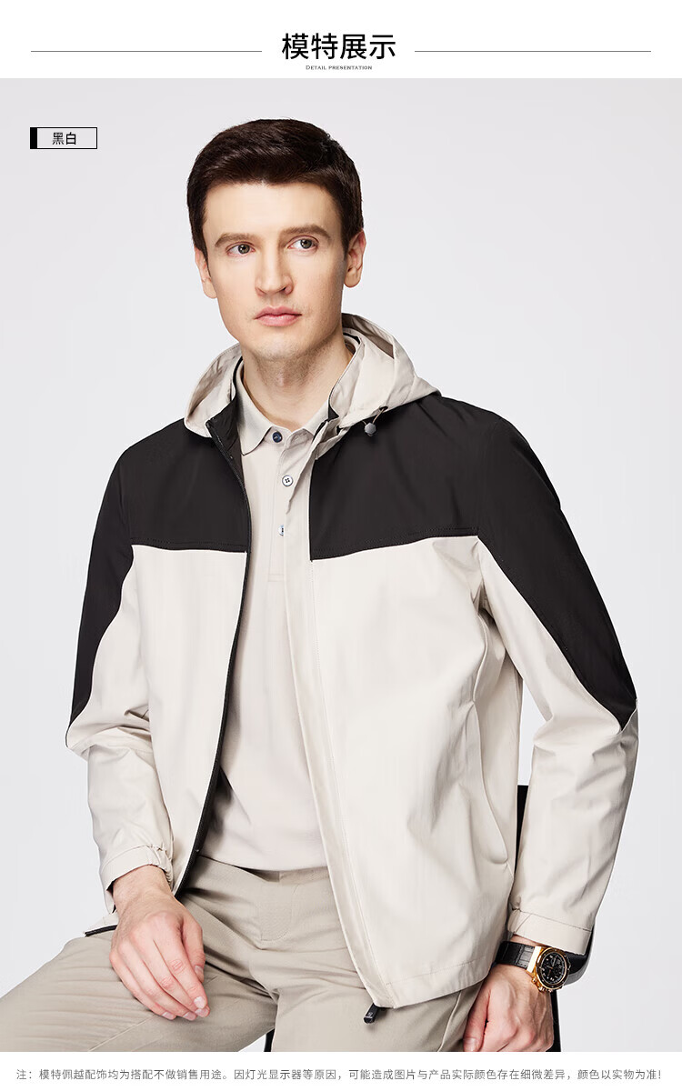 杉杉(FIRS)【撞色户外风】夹克男装连帽可拆卸防风防水轻薄透气抗皱顺滑外套 黑白 M 170/88A