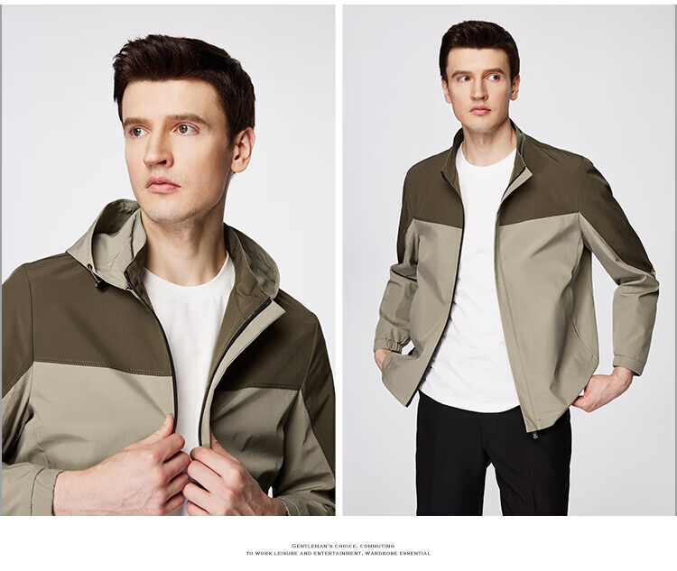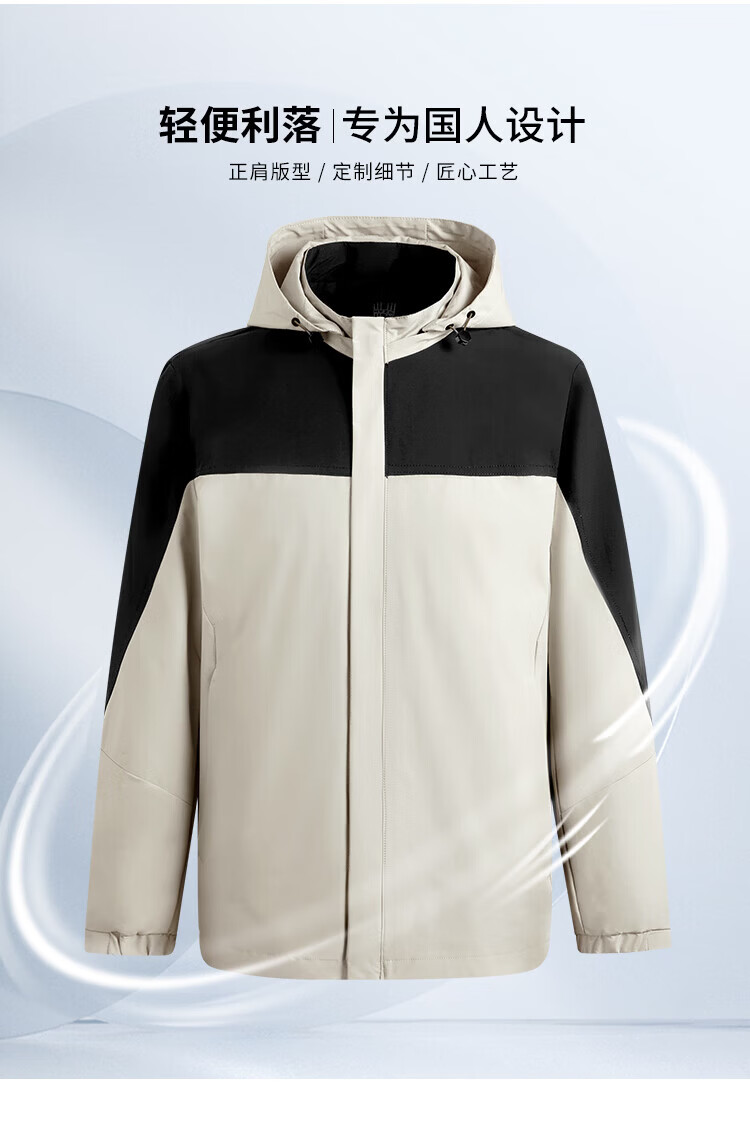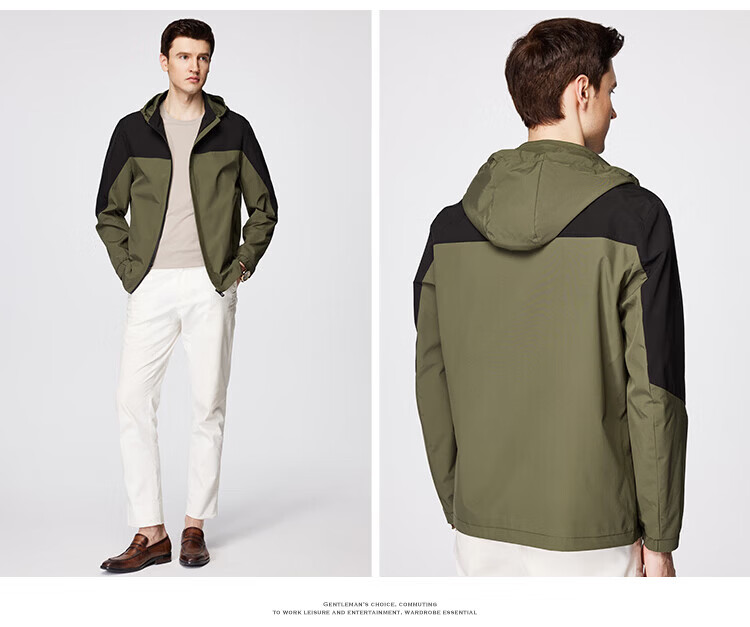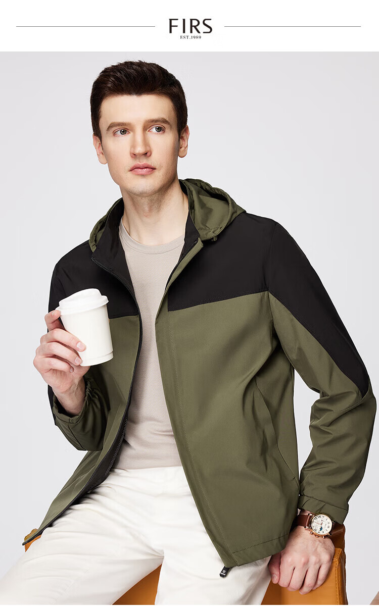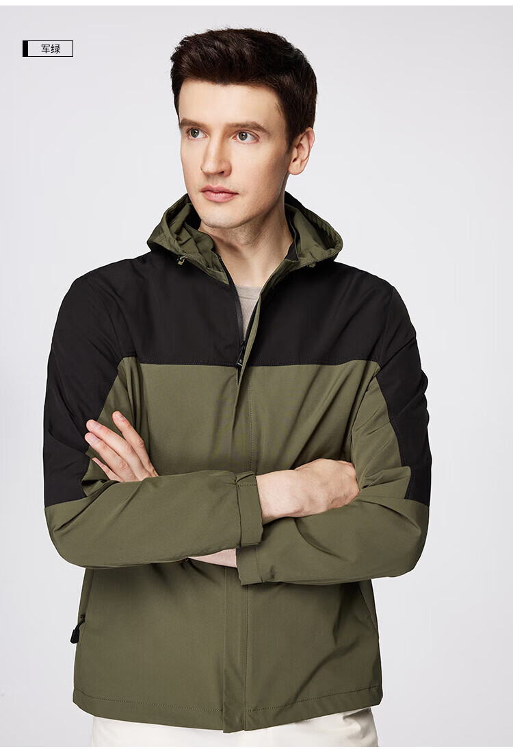 杉杉(FIRS)【撞色户外风】夹克男装连帽可拆卸防风防水轻薄透气抗皱顺滑外套 黑白 M 170/88A