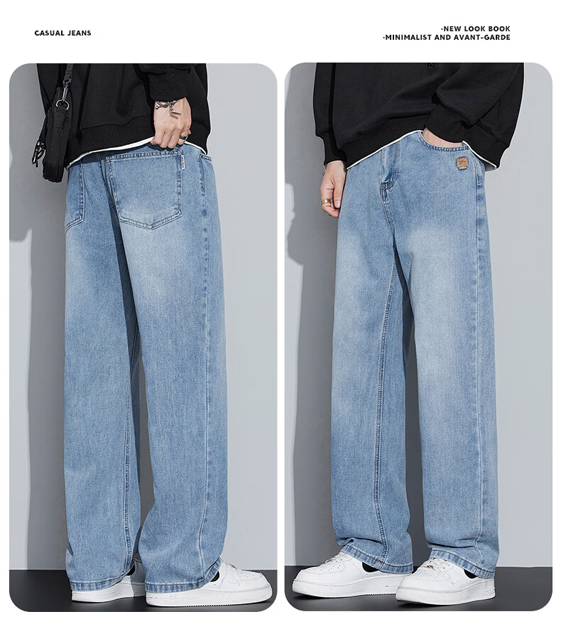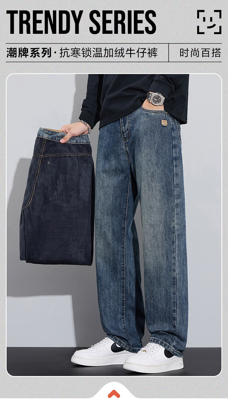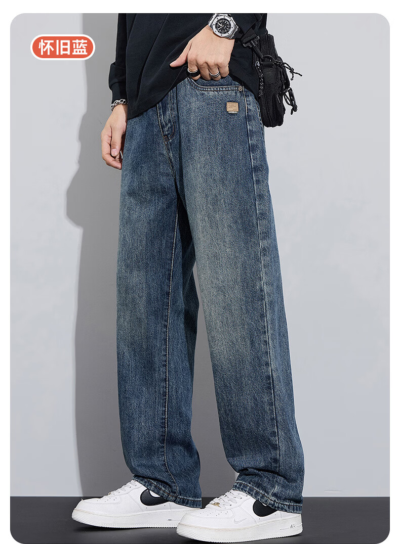 真维斯牛仔裤男春秋季宽松百搭直筒裤男新款潮牌垂感休闲舒适长裤男 怀旧蓝 28