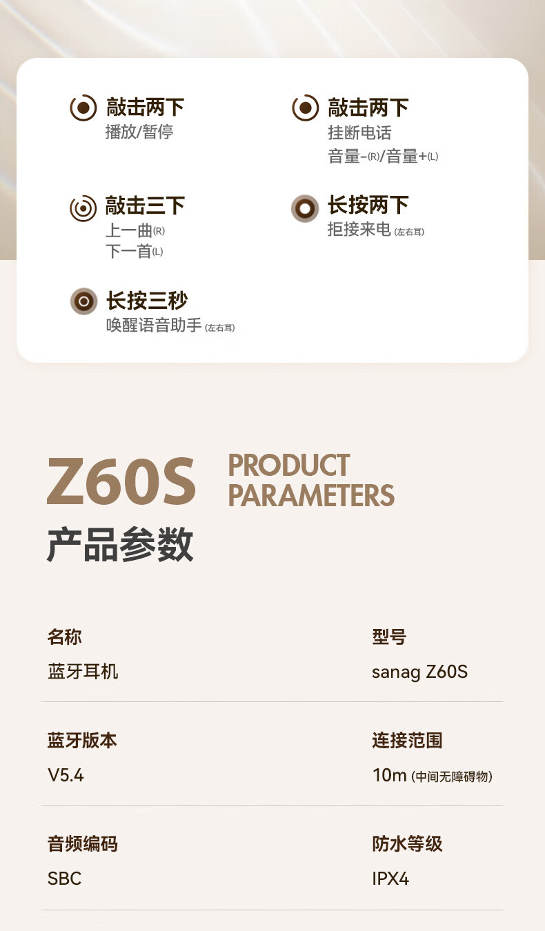 SANAG塞那【李宏毅推荐】Z60S 蓝牙耳机国家补贴耳夹式 AI气骨传导概念无线通话降噪运动无损音乐耳机