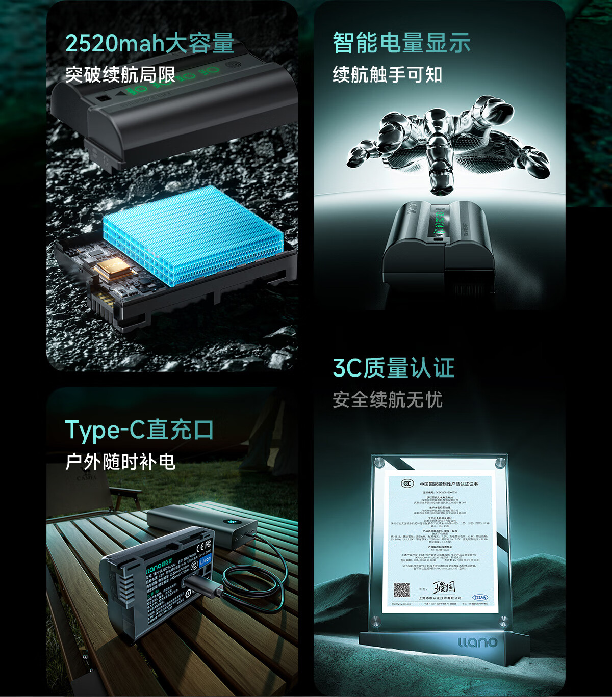 绿巨能(llano)极光电池适用佳能LP-E6P相机直充电池R5 MarkII/5D3/R6/5D4/70d/60d/90d/80d/6D2/5DSR单反2520mAh