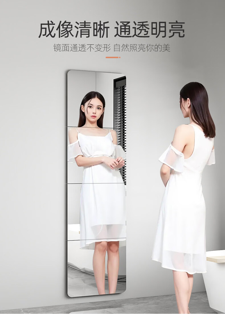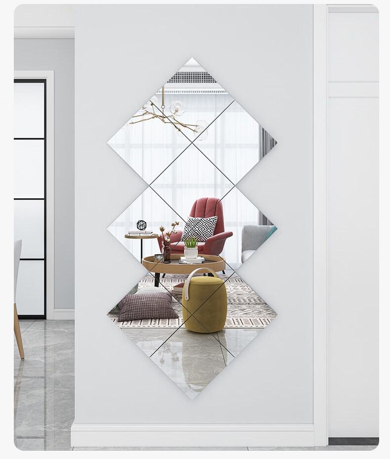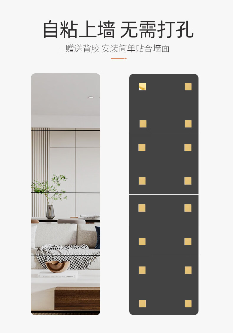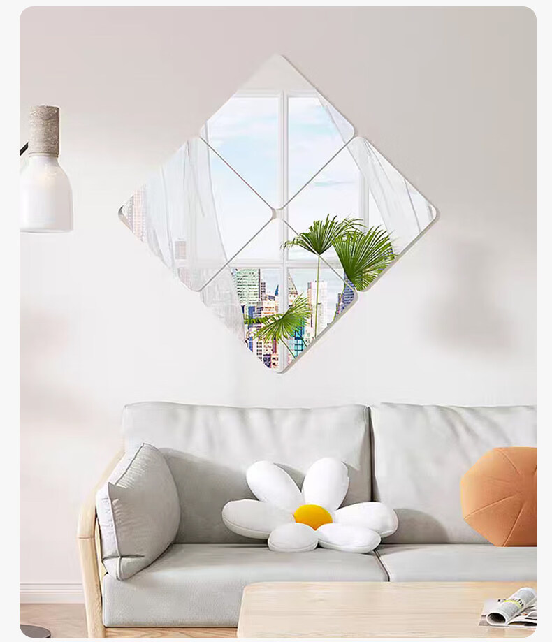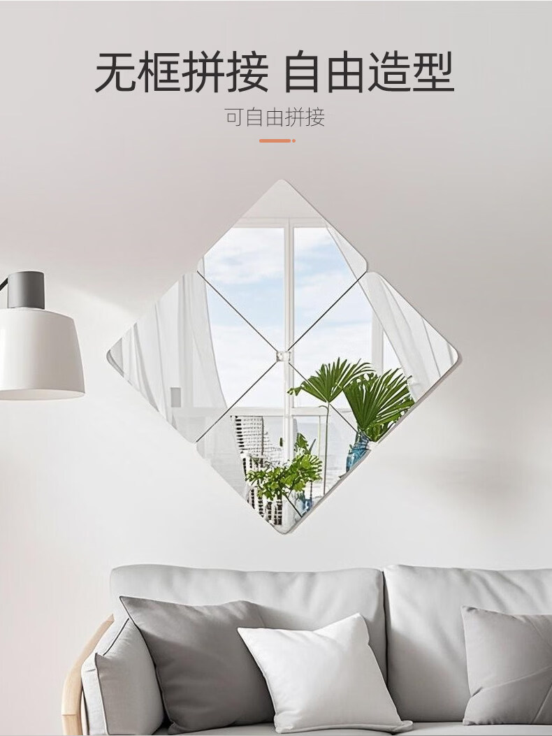 诗元硬玻璃镜子贴墙自粘可拼接全身穿衣镜免打孔上墙贴柜门宿舍化妆镜 【4片装】直角20*20cm【高清防眩 真实不变形】