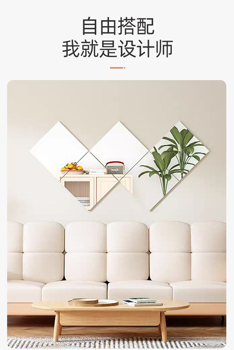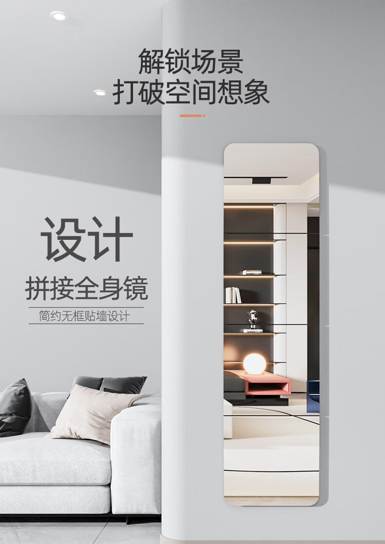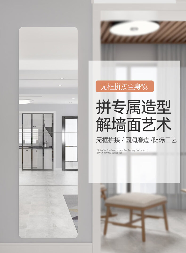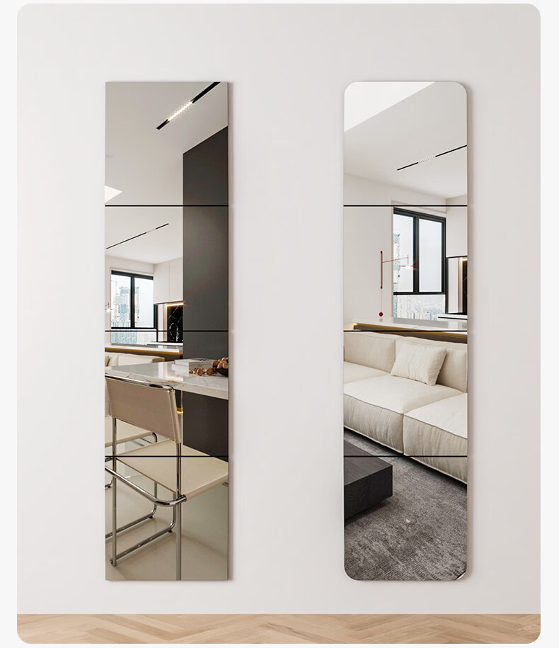 诗元硬玻璃镜子贴墙自粘可拼接全身穿衣镜免打孔上墙贴柜门宿舍化妆镜 【4片装】直角20*20cm【高清防眩 真实不变形】
