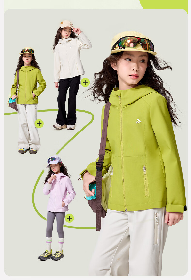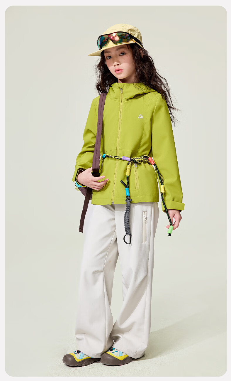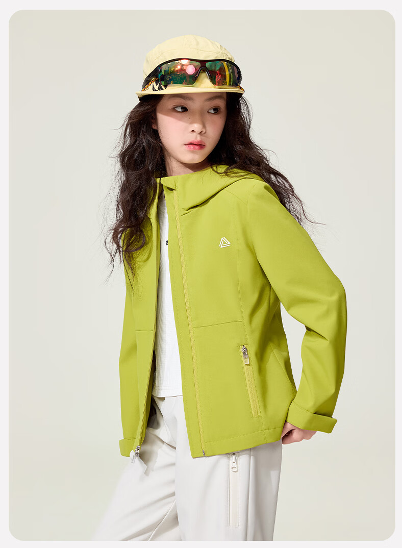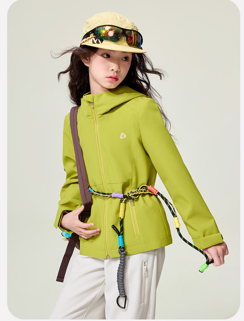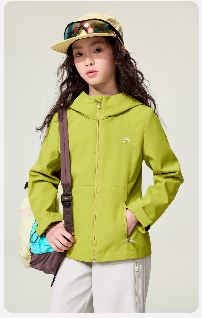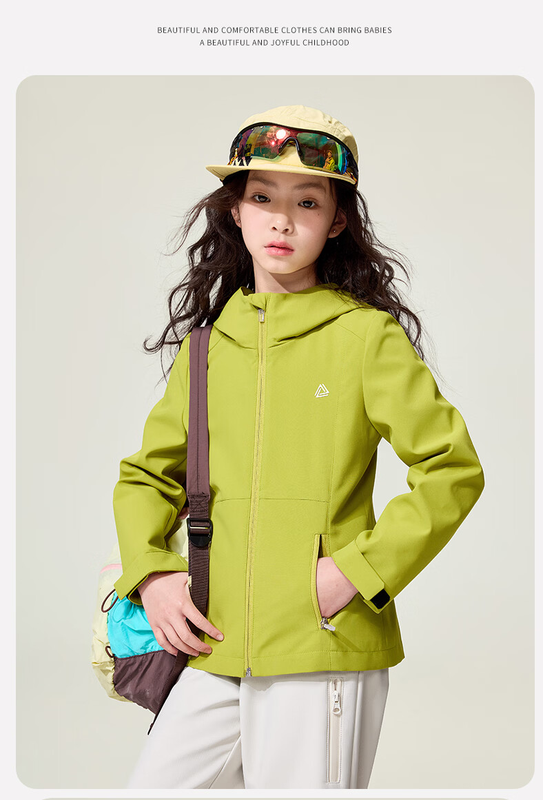 媛媛公主儿童外套26春季新款女童户外运动软壳上衣中大童防风连帽夹克 草绿色 110