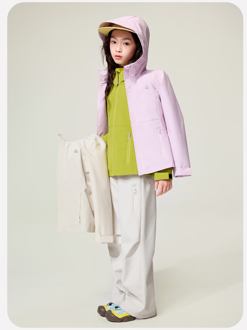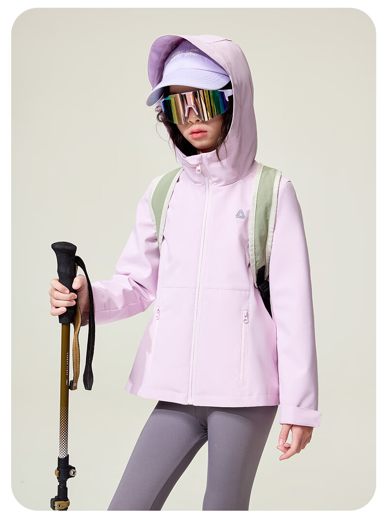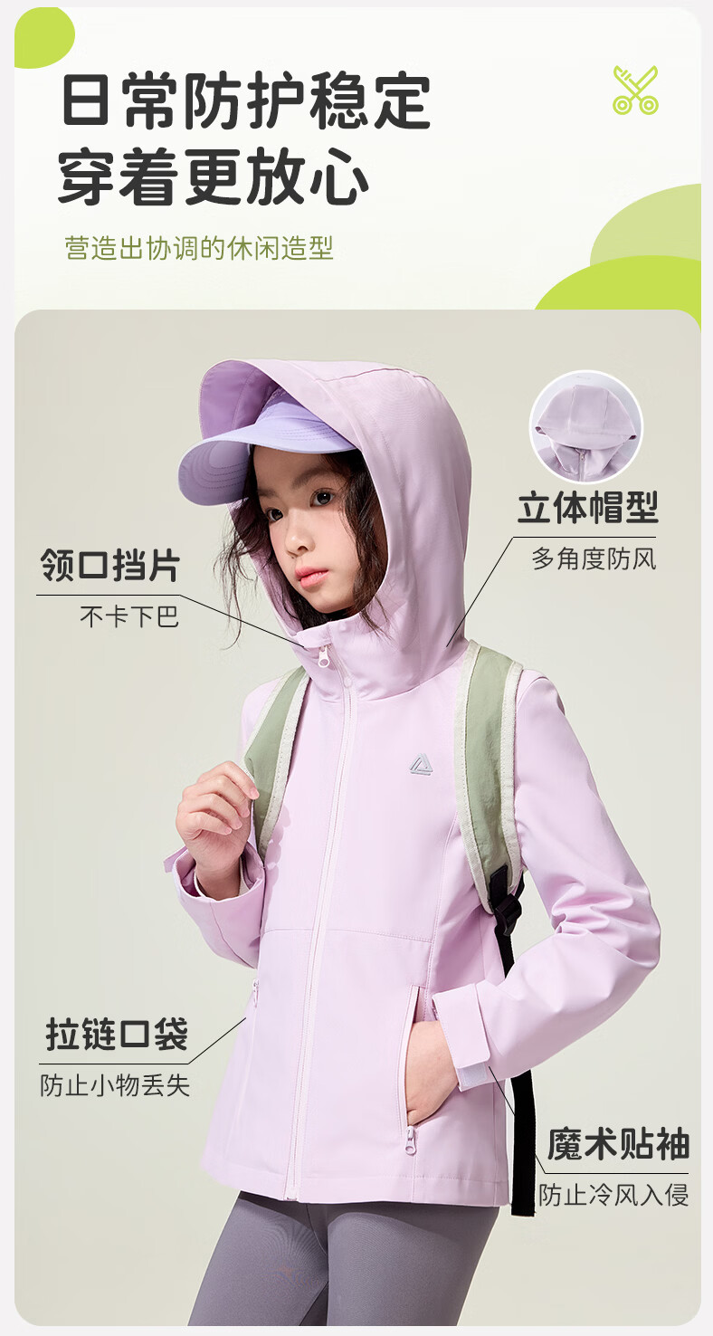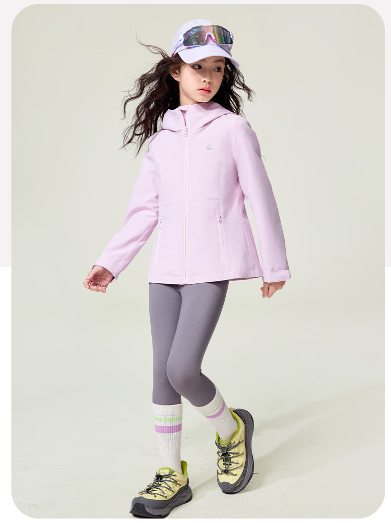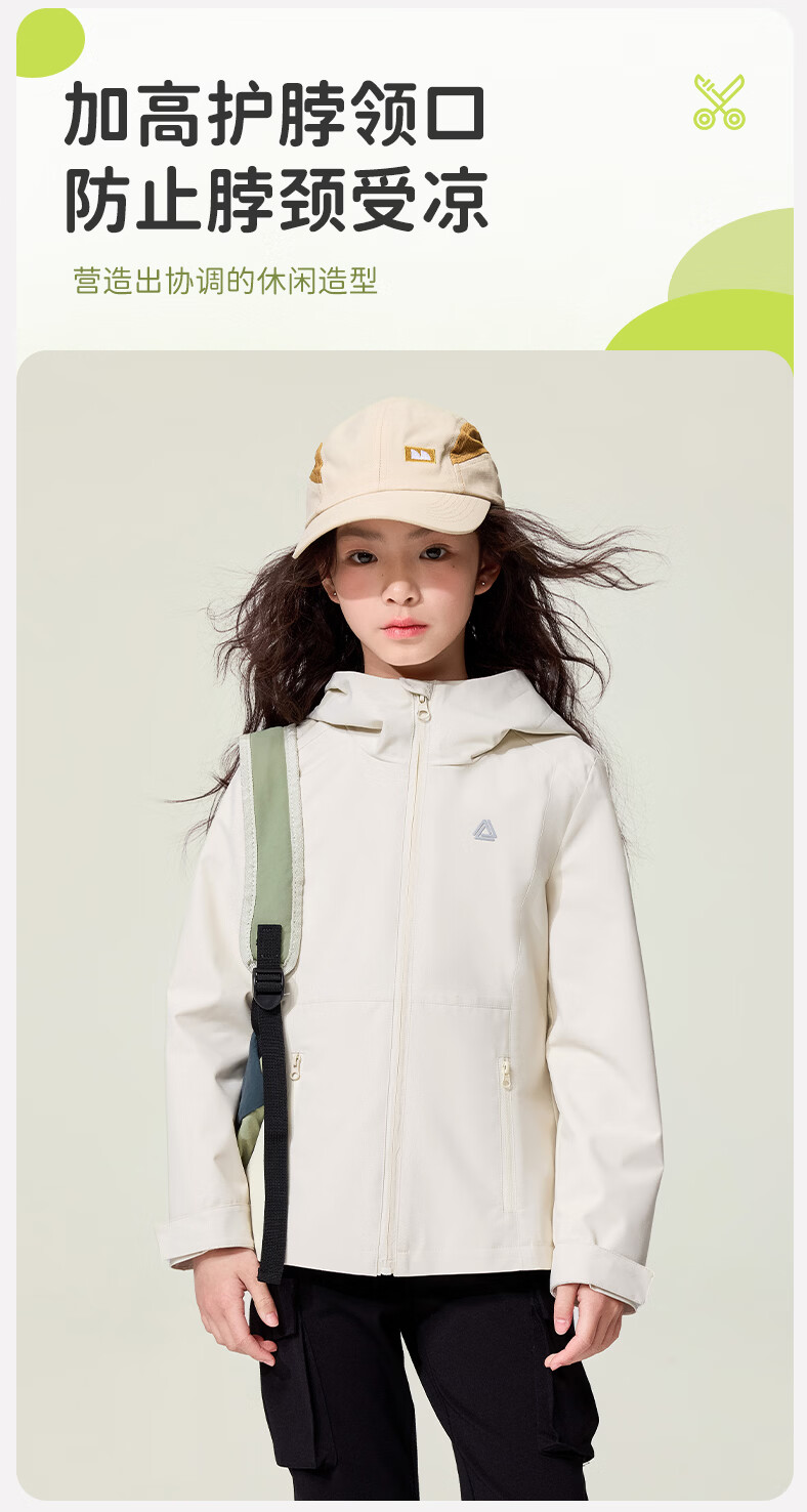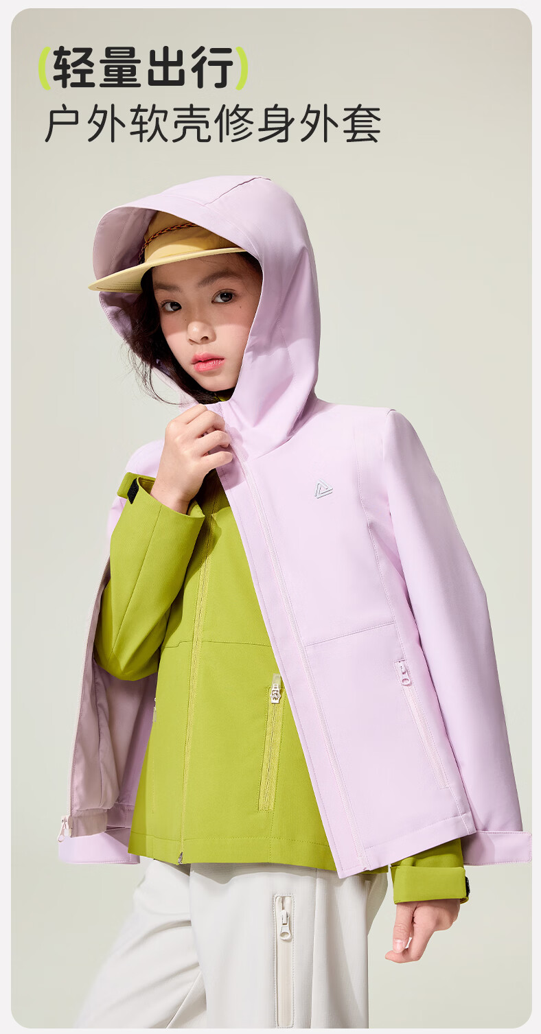 媛媛公主儿童外套26春季新款女童户外运动软壳上衣中大童防风连帽夹克 草绿色 110