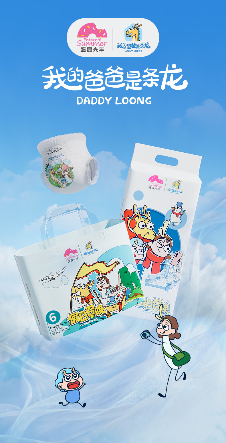 盛夏光年我的爸爸是条龙系列腰贴型婴儿纸尿裤XL码36片