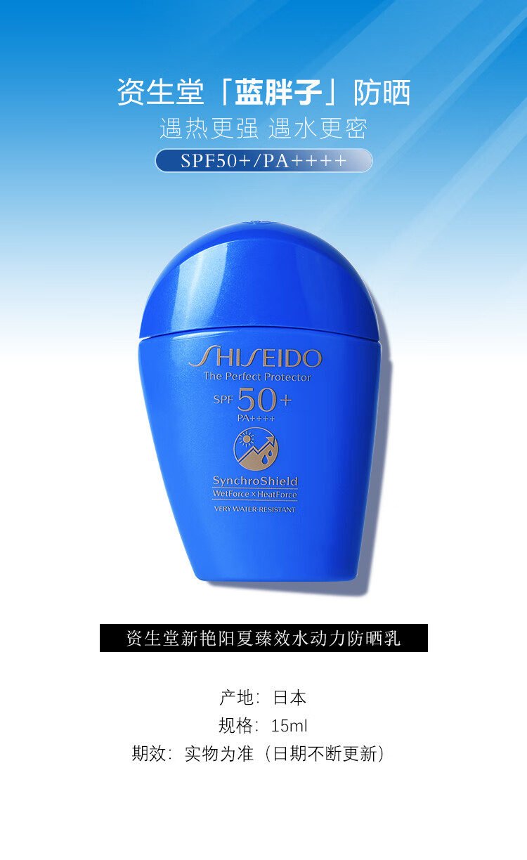 资生堂新艳阳夏臻效水动力防晒乳15ml 蓝胖子防晒【临期清仓】