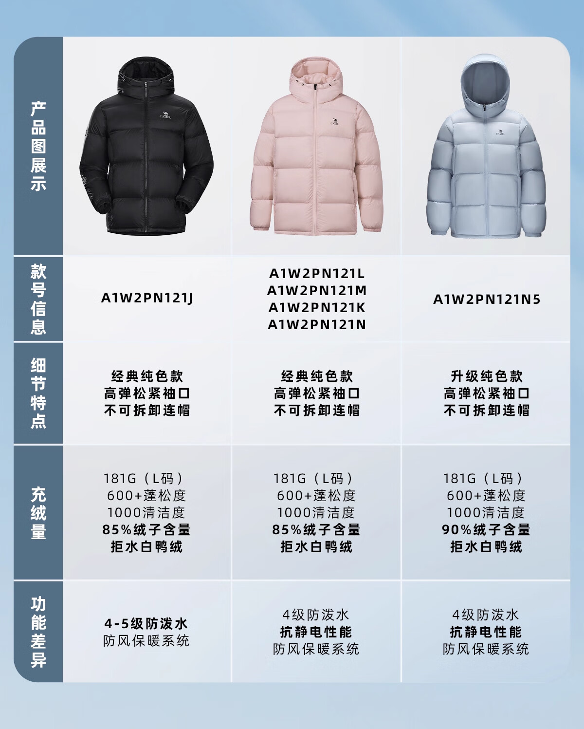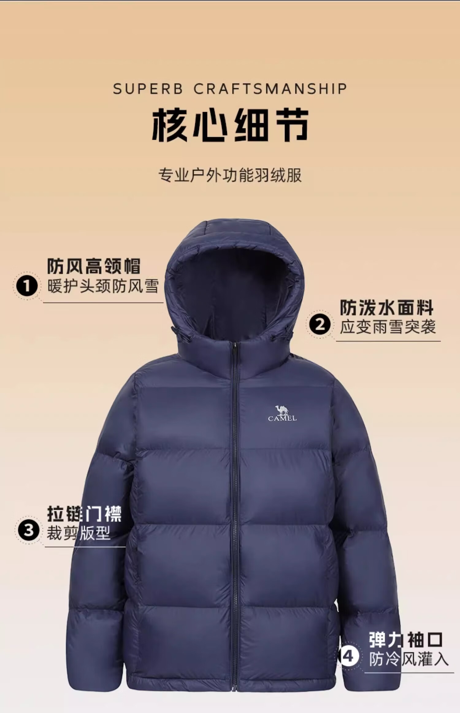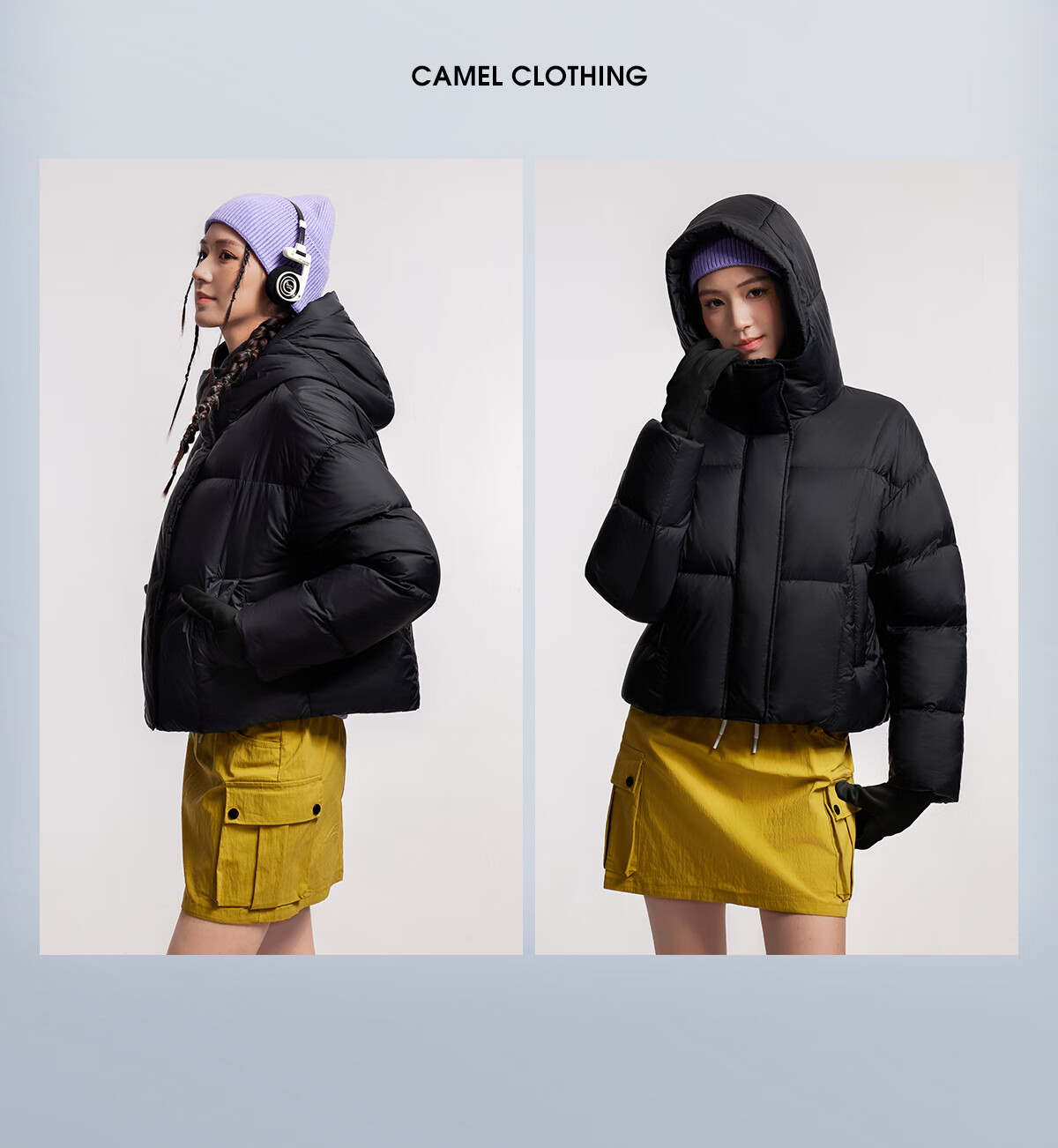 骆驼(CAMEL)抱抱户外羽绒服短款拒水保暖外套面包服
