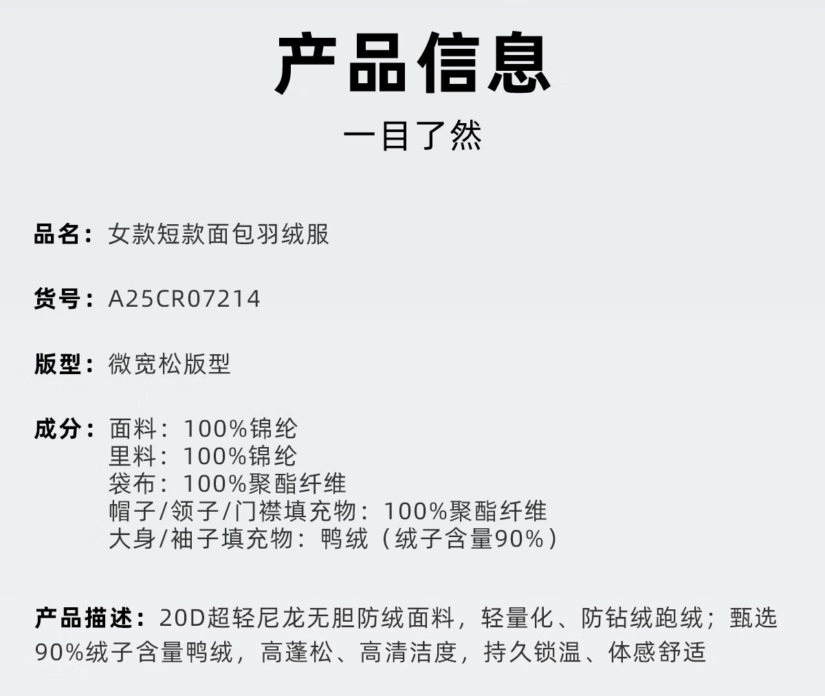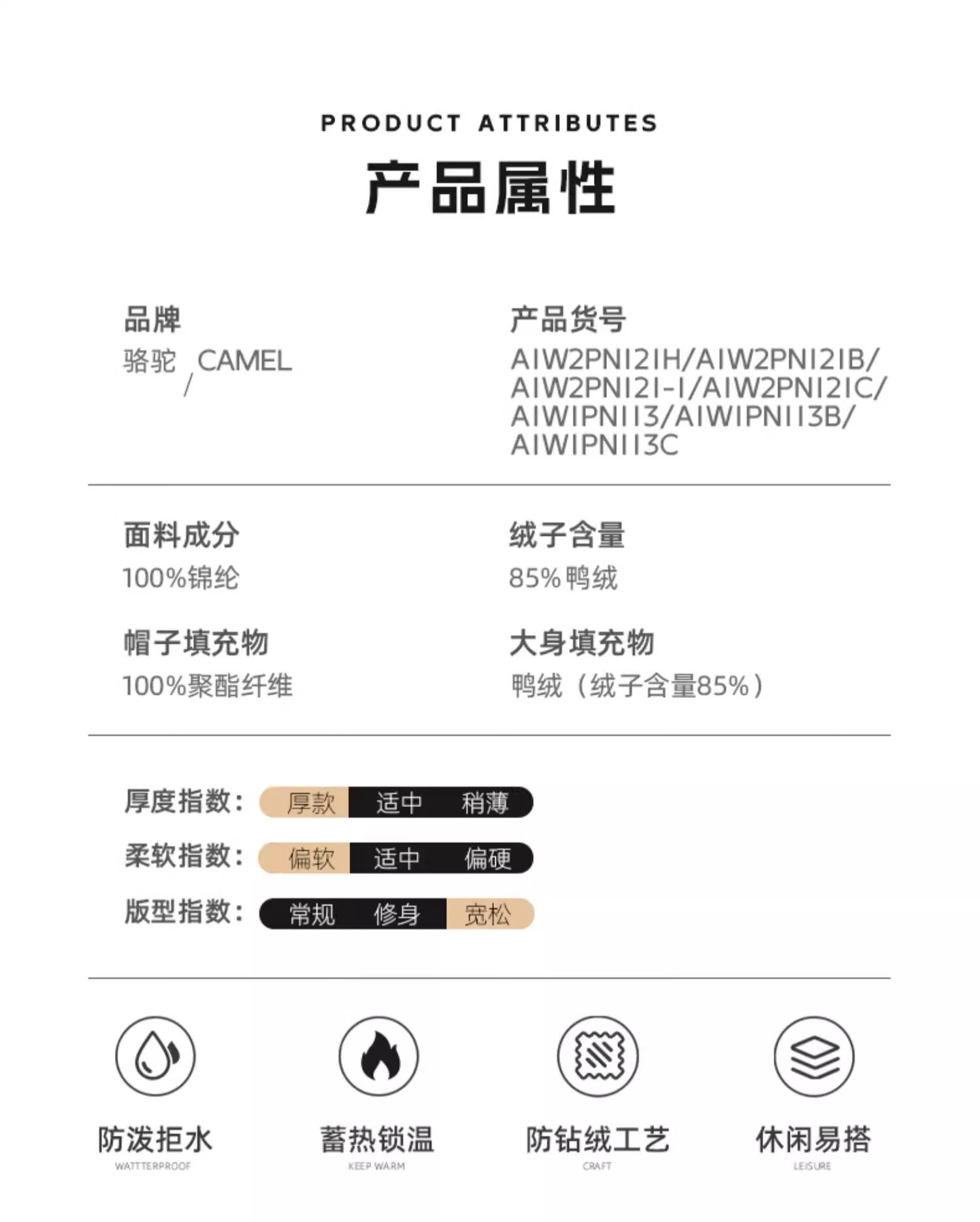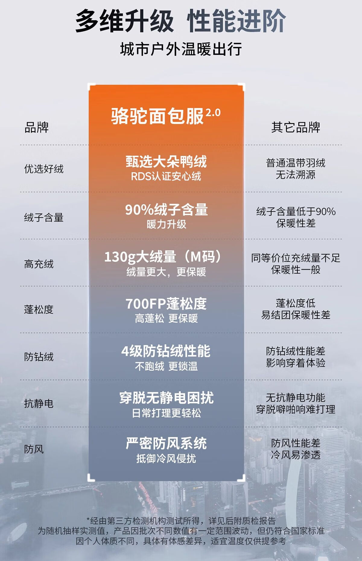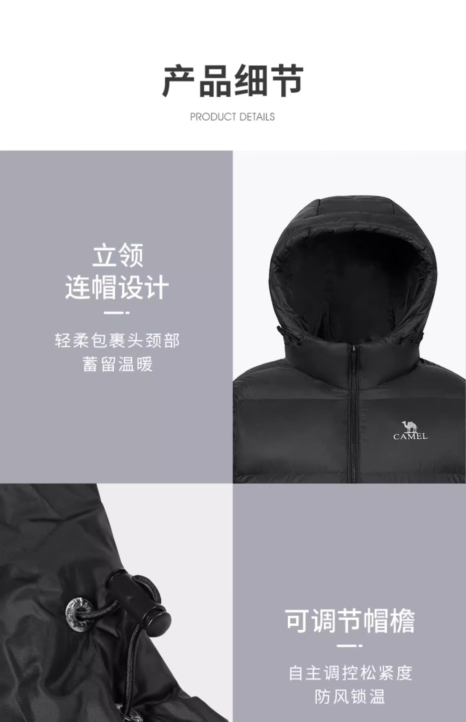 骆驼(CAMEL)抱抱户外羽绒服短款拒水保暖外套面包服