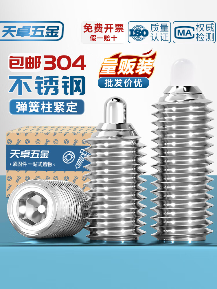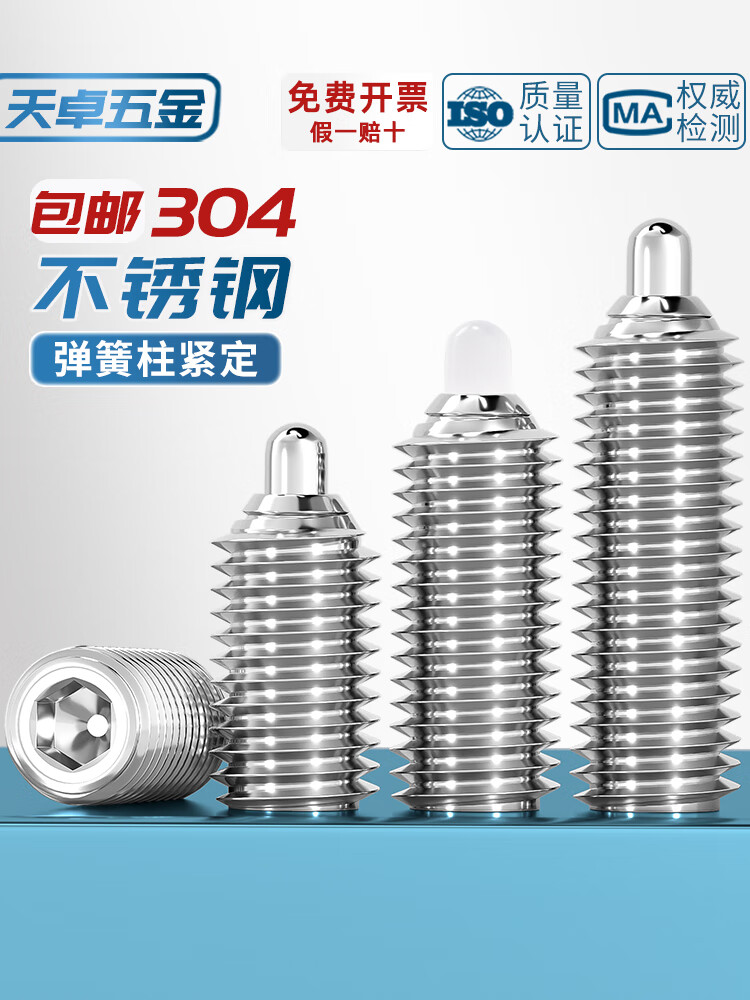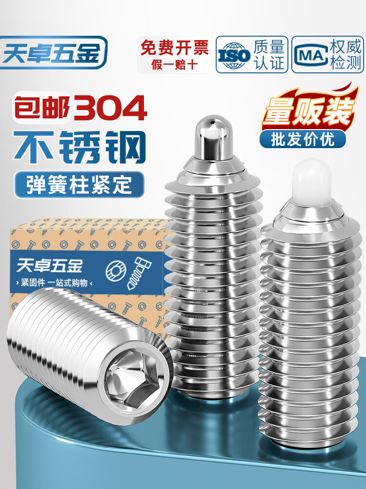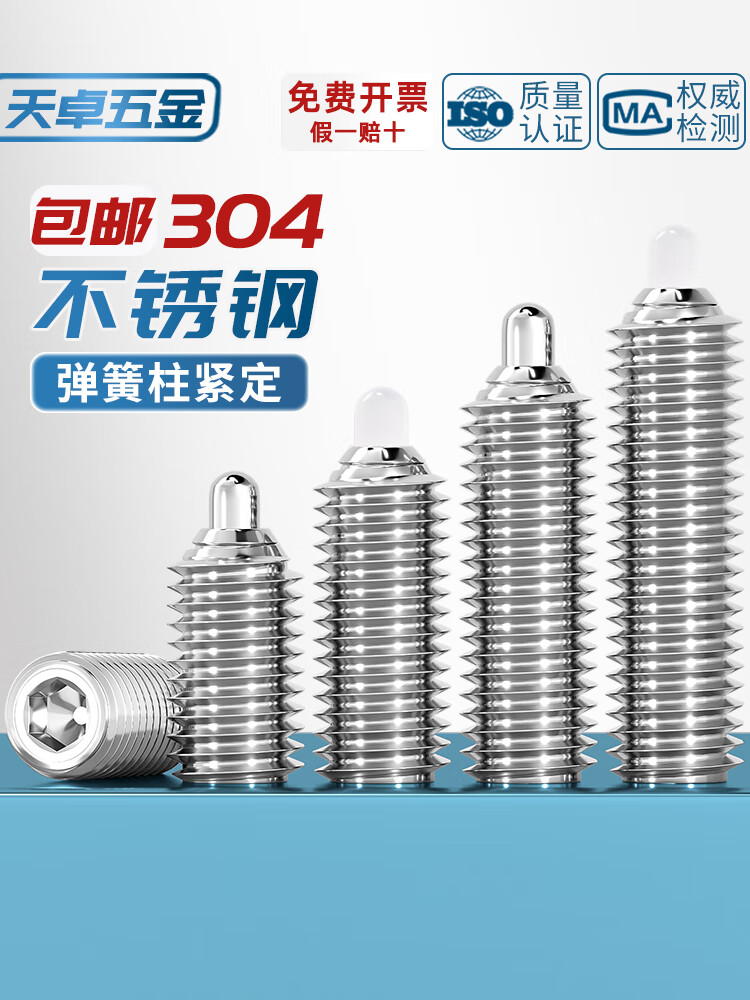 天卓五金304不锈钢弹簧柱塞圆柱头压力伸缩销波珠定位螺丝顶丝锁销M3-M12 ---以下为【304不锈钢头】---
