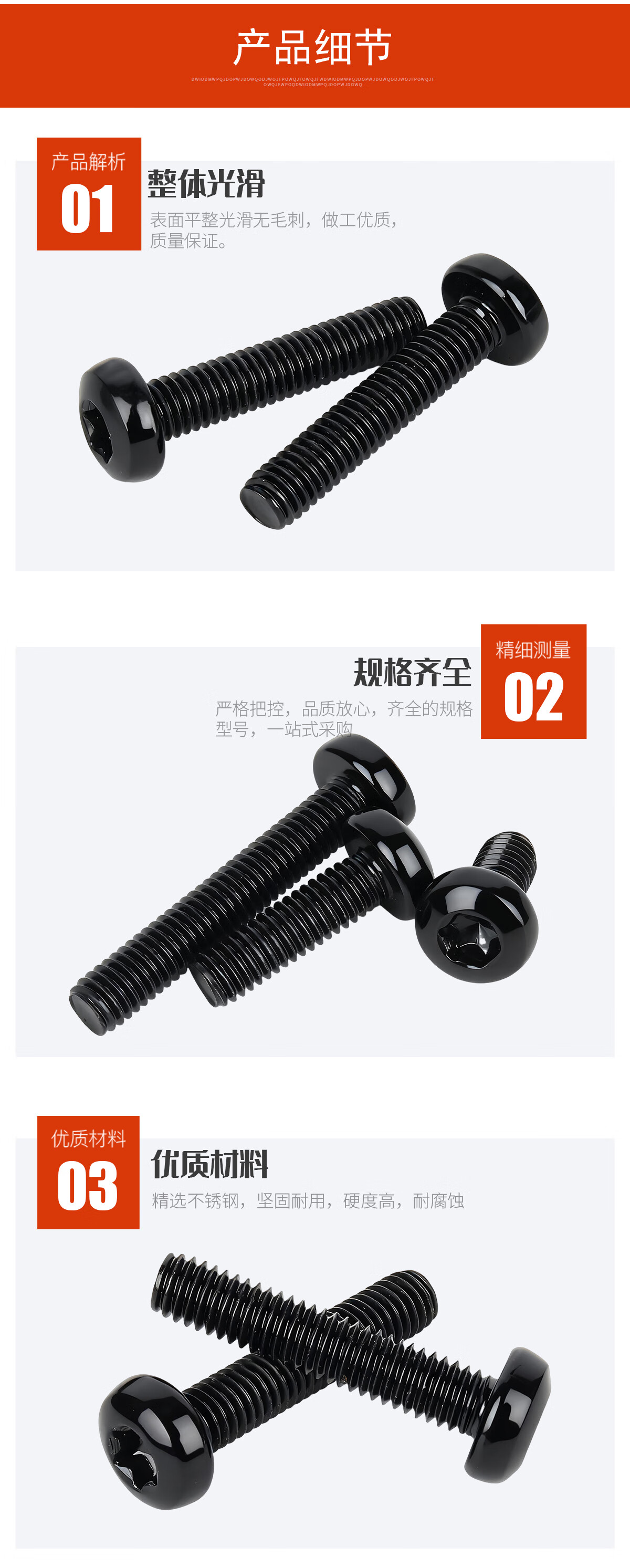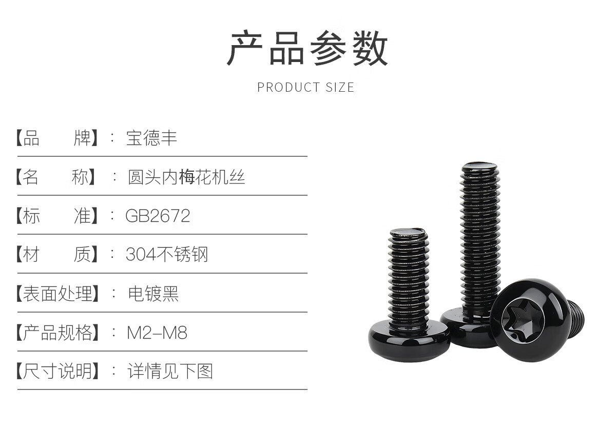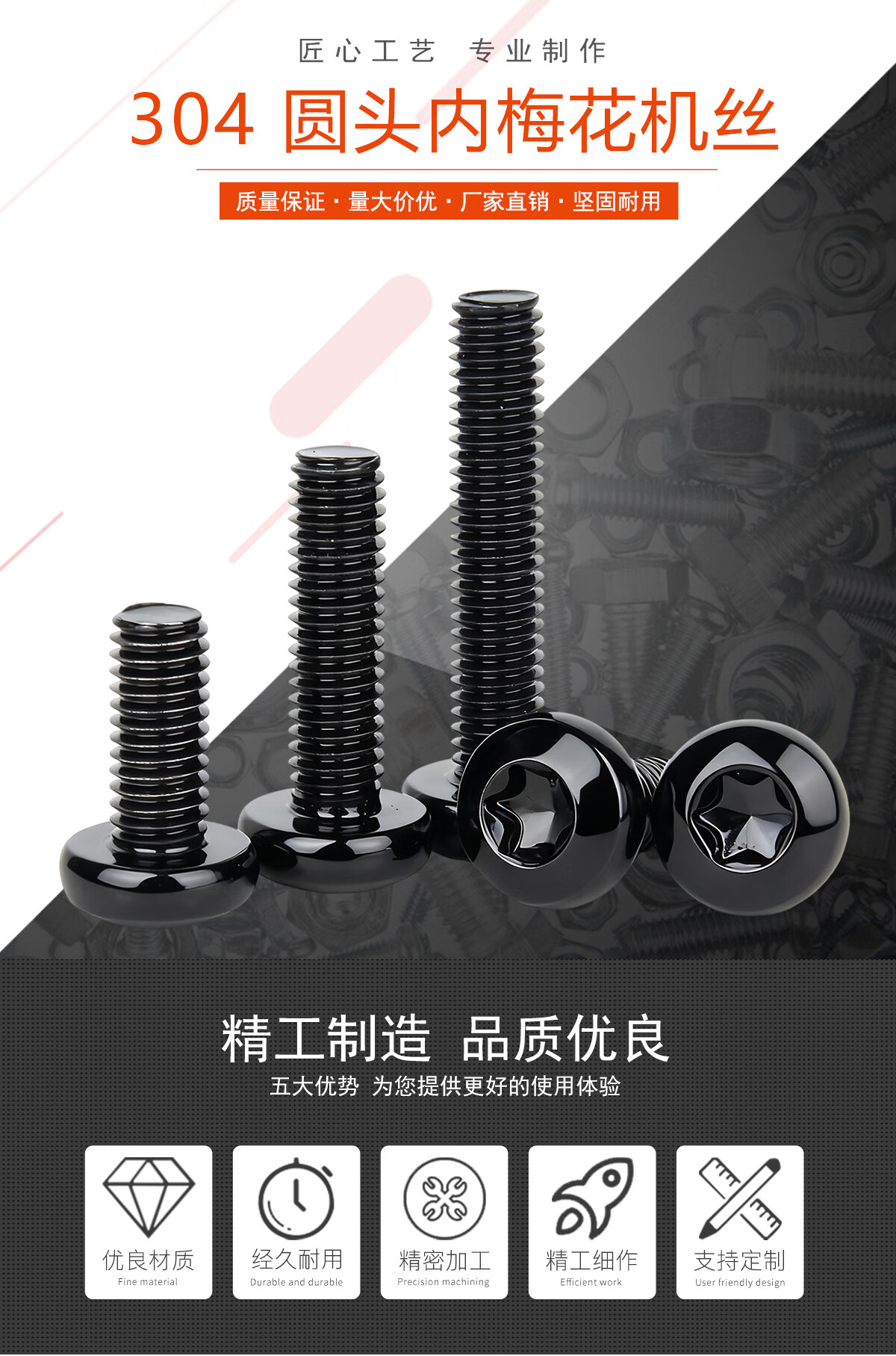 宝德丰黑色304不锈钢圆头内梅花螺丝盘头螺钉防盗螺栓M2M2.5M3M4M5M6M8 M2x4[100只]