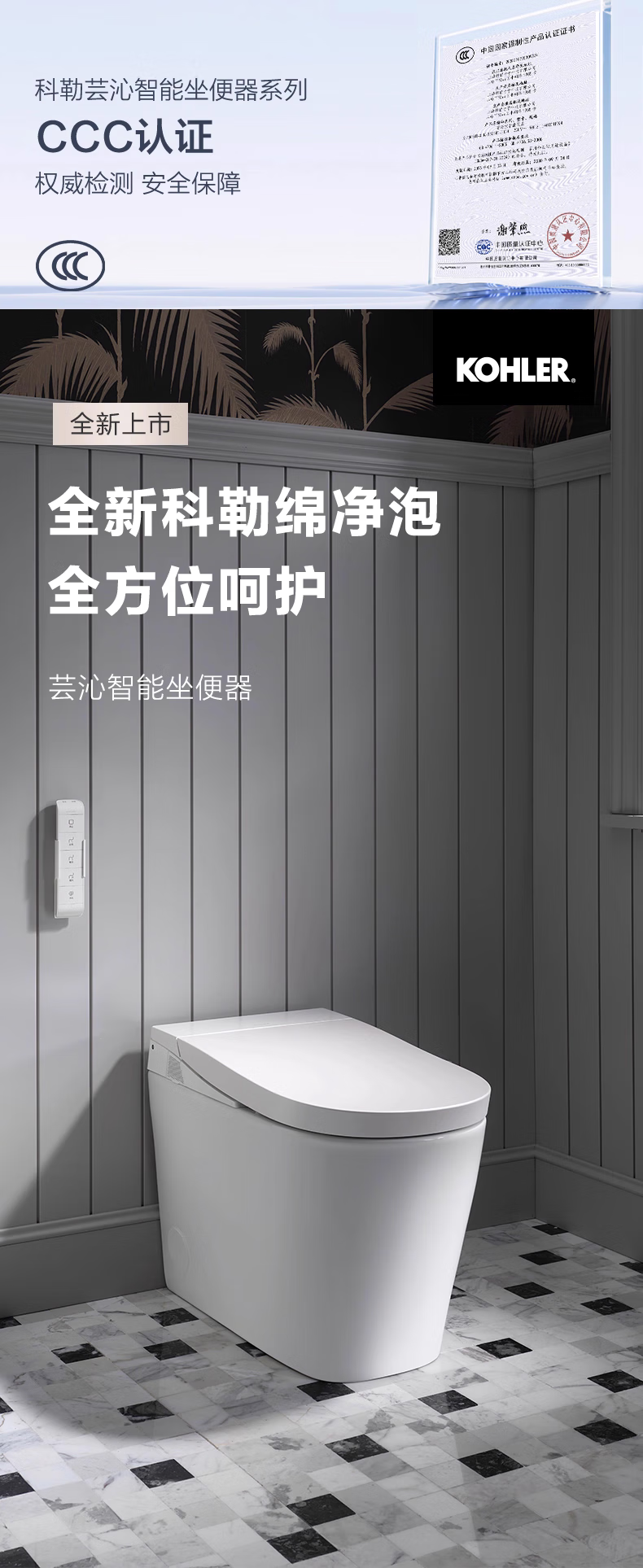 科勒(KOHLER)芸沁智能马桶一体全智能坐便器泡沫盾脚感触控自动清洗加热烘干 芸沁智能坐便器(月光白) FW 305/300mm