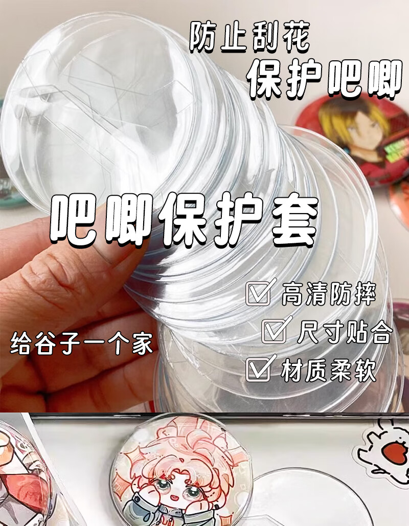 吧唧保护套圆形单个徽章收纳套动漫明星cpp吧唧卡套卡膜套 圆形63mm【适合58MM吧唧】 3个