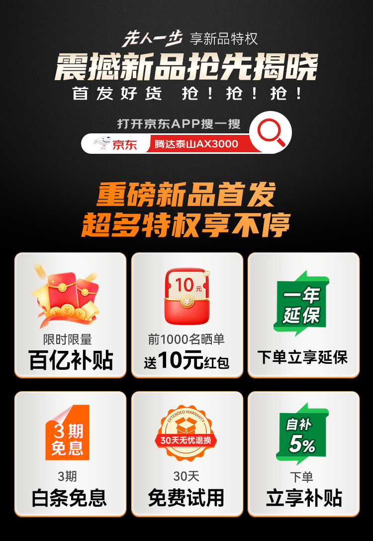 Tenda腾达路由器WiFi6+【泰山AX3000 Ultra】千兆穿墙王信号放大器增强无线家用甄选高配芯片AX12 Pro