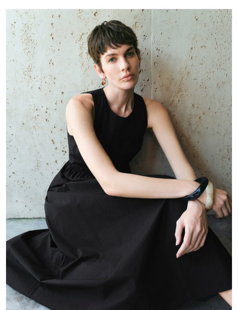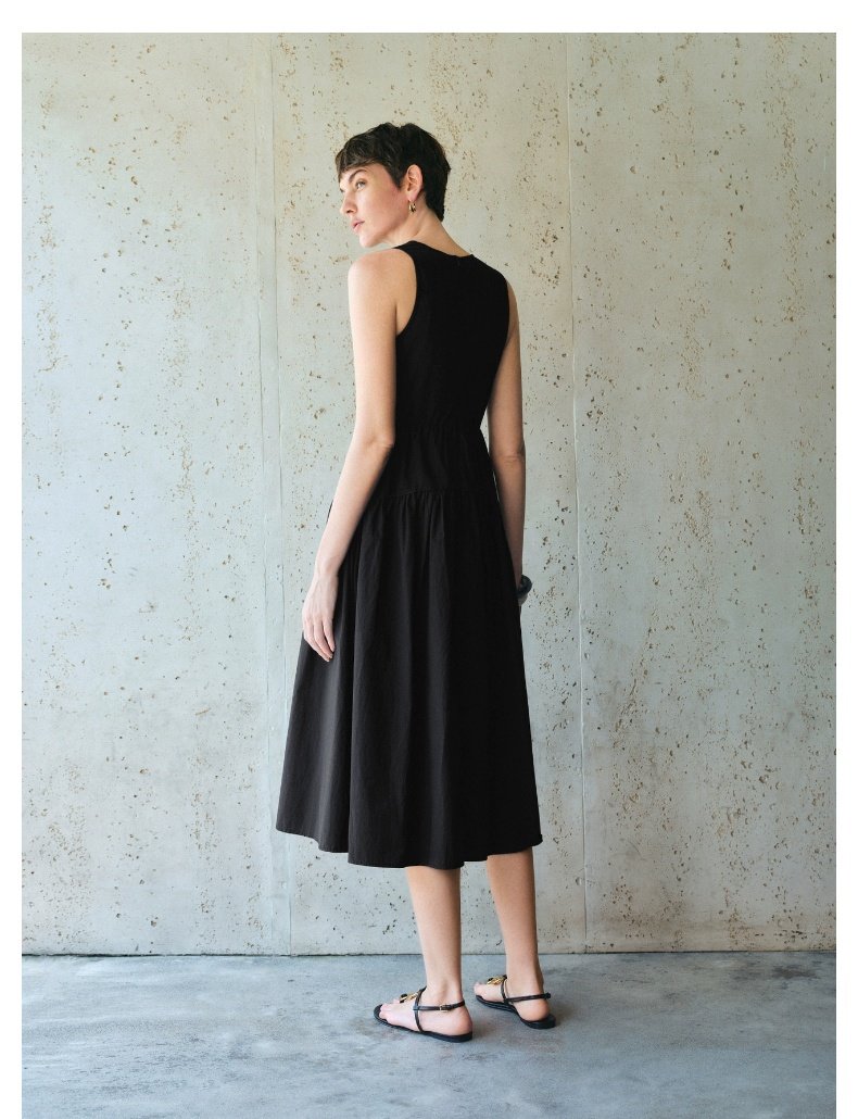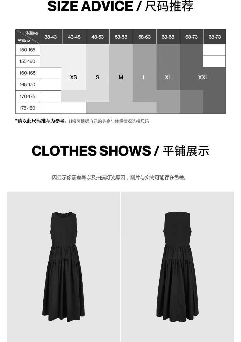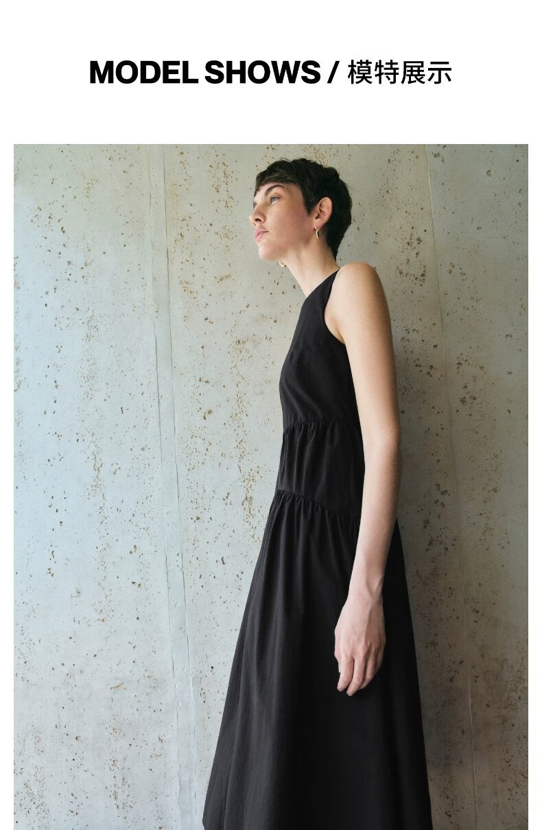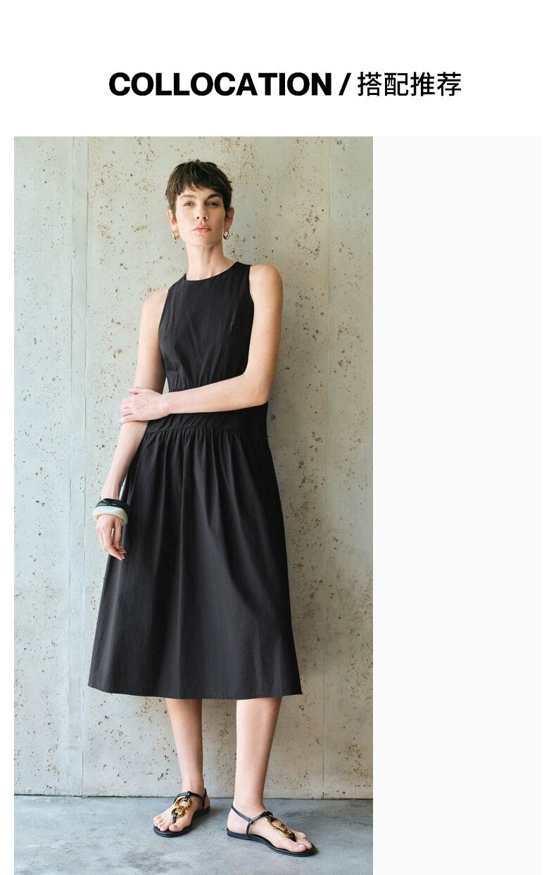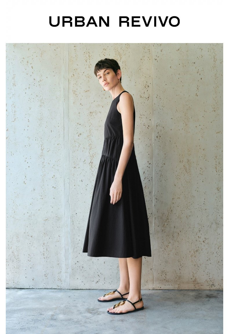 UR2025春季新款女装简约气质纯色拼接无袖连衣裙UWM750038