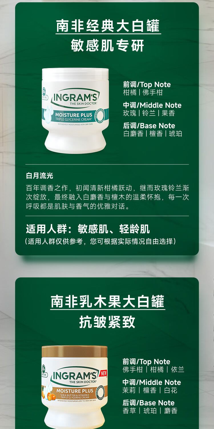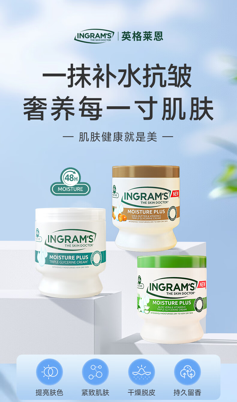 INGRAM'S汇赞专卖店英格莱恩南非乳木果大白罐身体乳水润保湿乳霜抗皱紧致 【经典水润】450ml*1赠硅胶刷