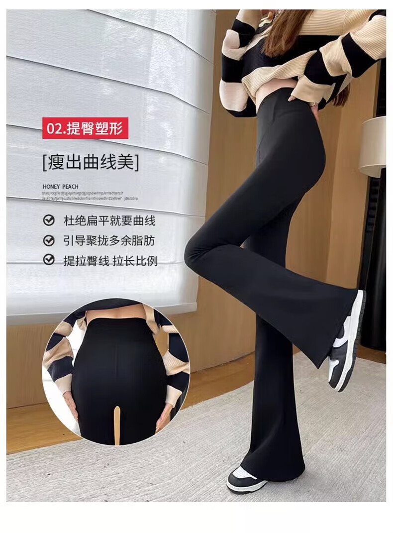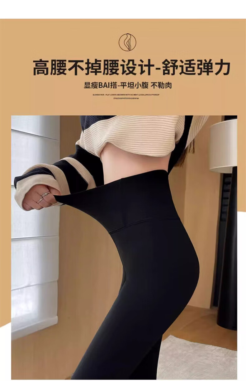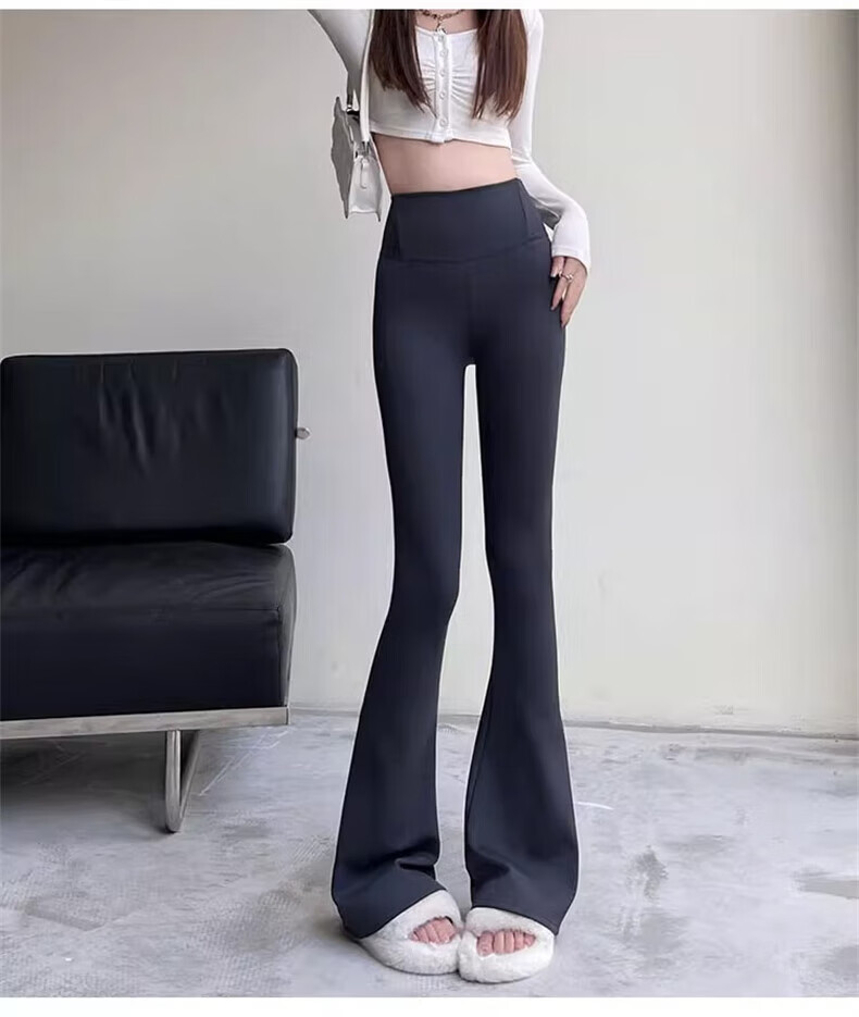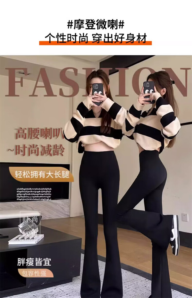 浪莎微喇鲨鱼裤女冬季加绒加厚外穿新款喇叭裤高腰瑜伽提臀显瘦打底裤 黑色 400克(适合0-15°C) M 建议101-115斤