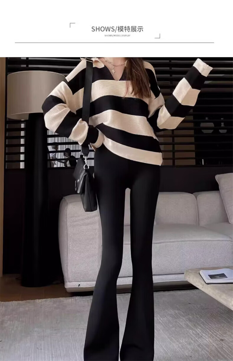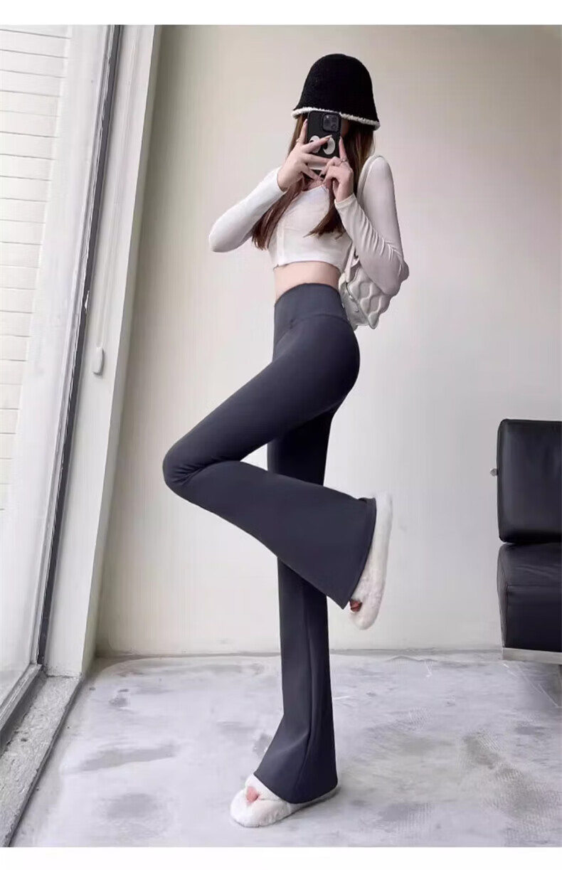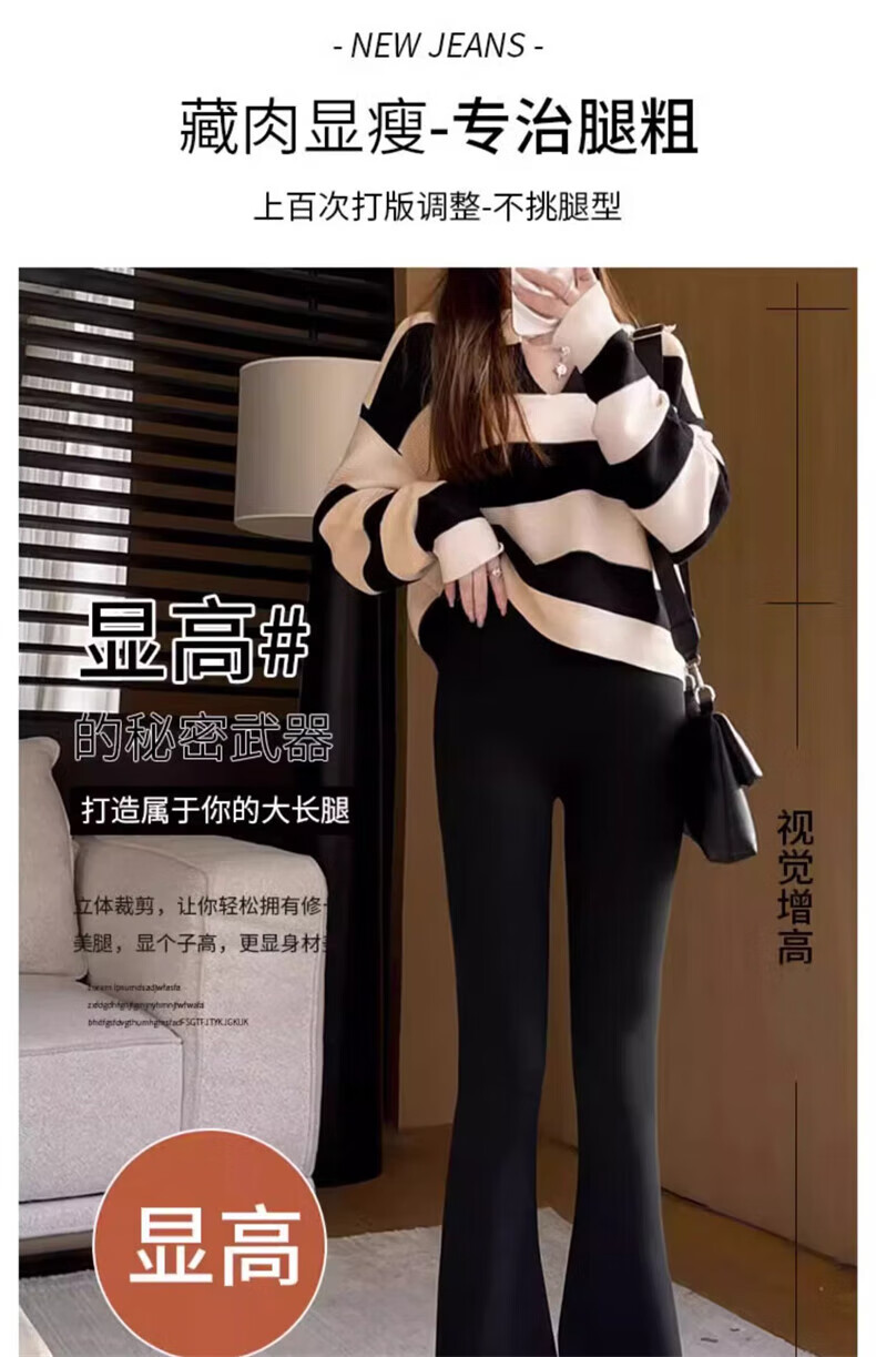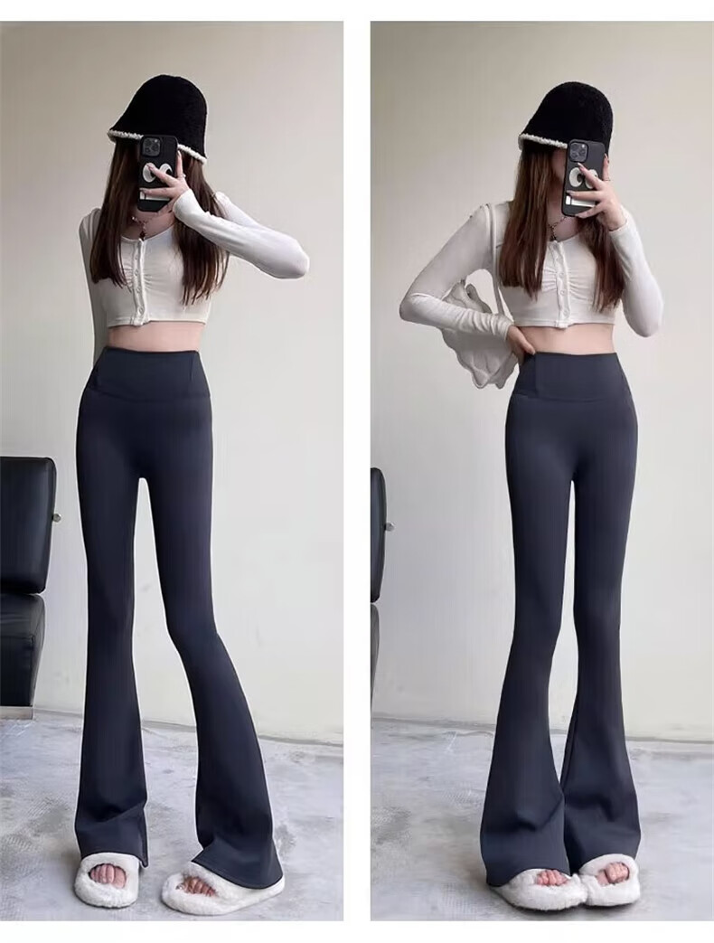 浪莎微喇鲨鱼裤女冬季加绒加厚外穿新款喇叭裤高腰瑜伽提臀显瘦打底裤 黑色 400克(适合0-15°C) M 建议101-115斤