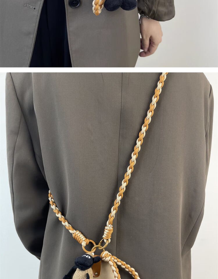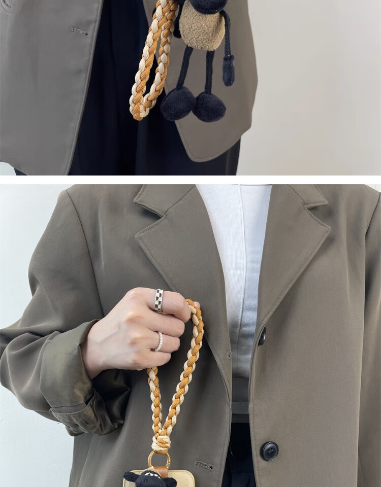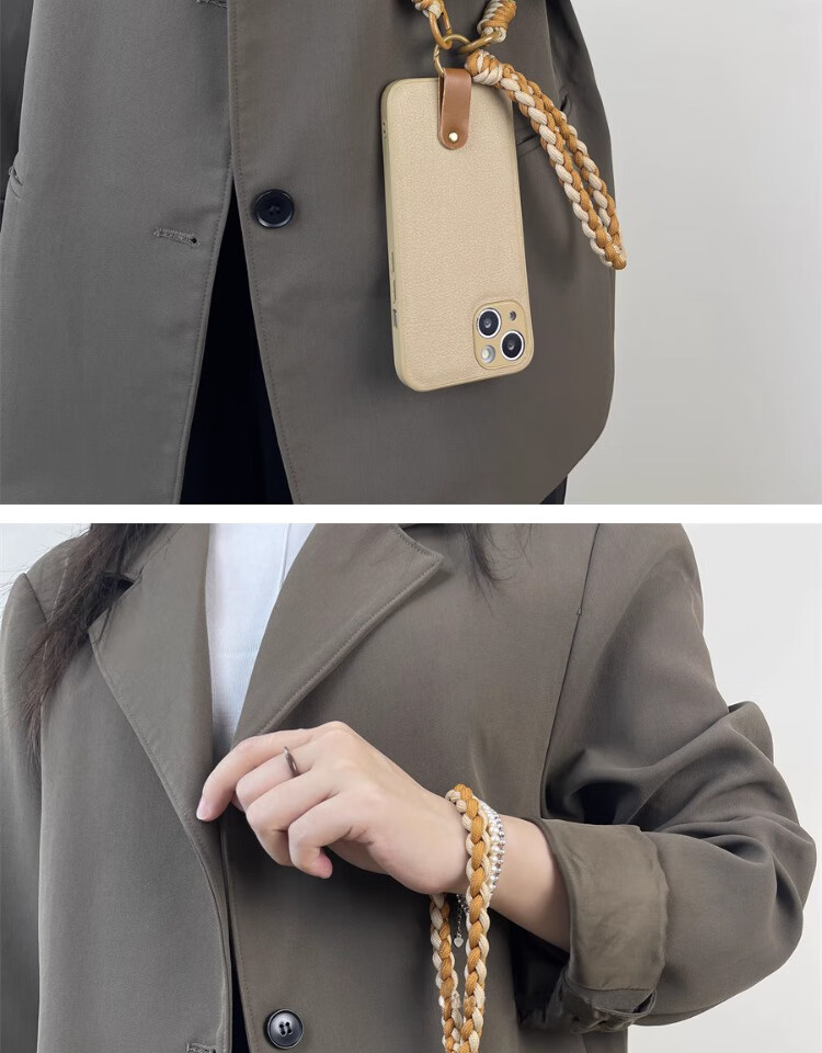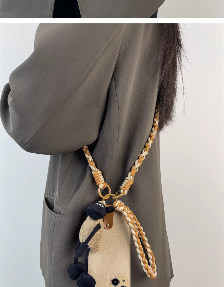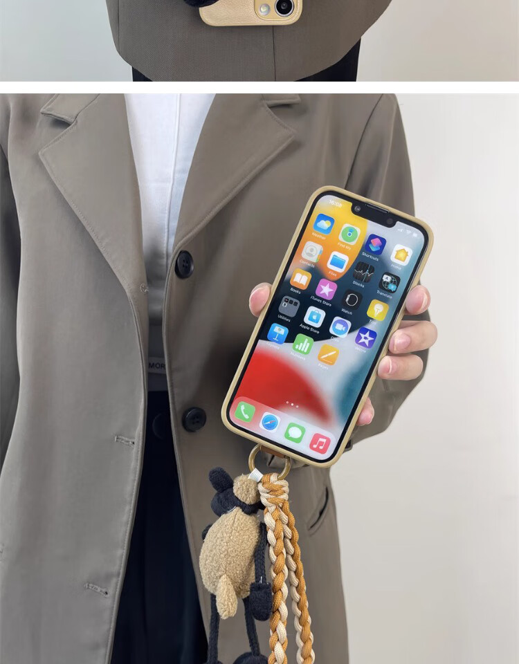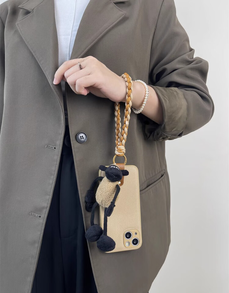 八脚兽毛绒小羊公仔挂件适用苹果17promax手机壳iphone16promax创意17秋冬15pro斜挎14防丢13PM手提侧背 卡其皮纹壳+毛绒小羊公仔+棕色手绳+斜挎长绳 iPhone 13 Promax