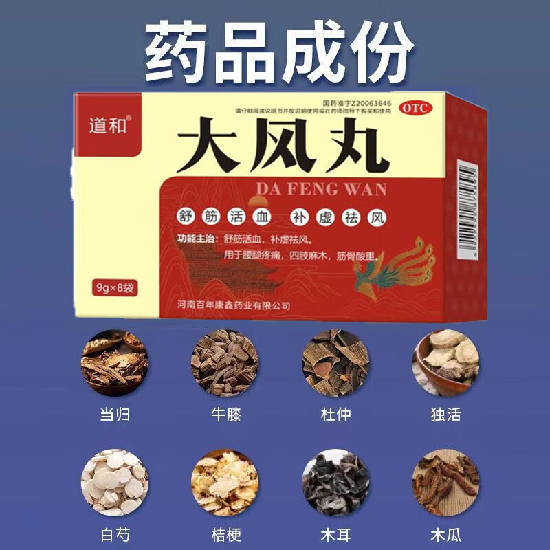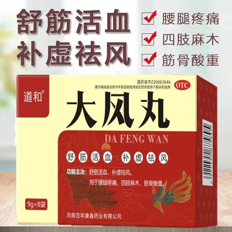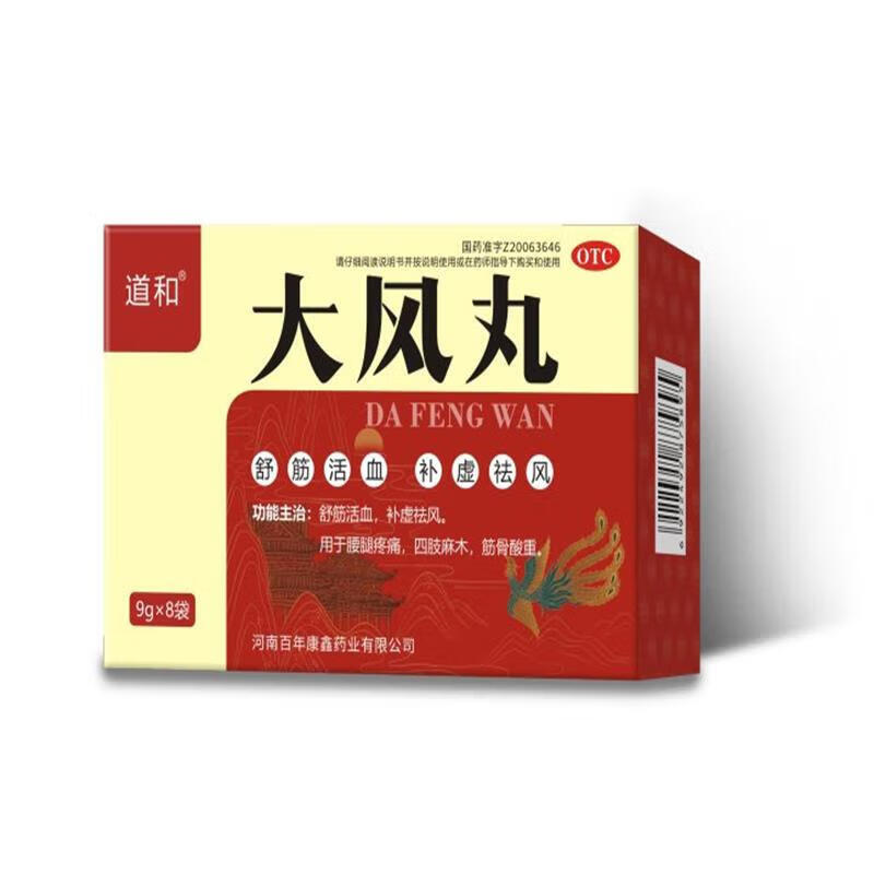 [道和(DAOHE)]大风丸 9g*8袋 1盒装 治四肢手脚麻木专用药神经压迫手足麻木手麻脚麻腰疼腿疼半夜麻木发胀手脚麻 国药准字