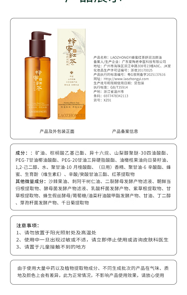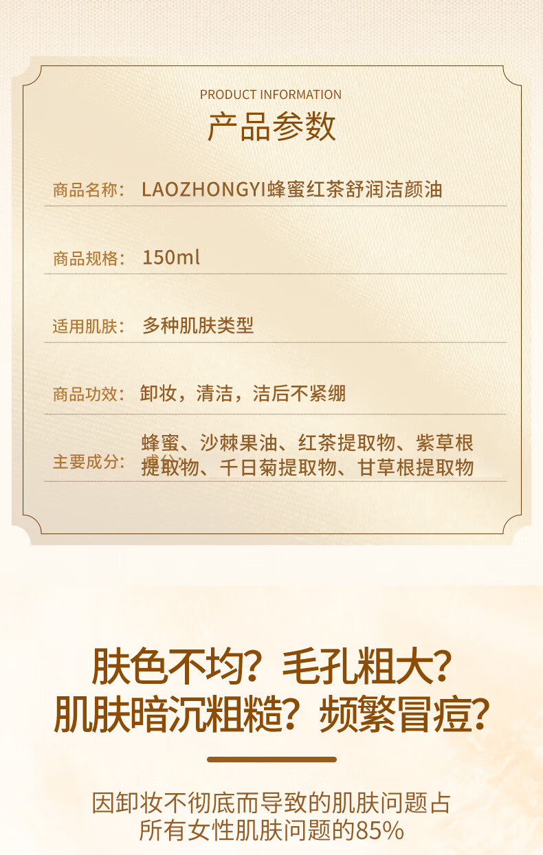 老中医蜂蜜红茶舒润洁颜卸妆油 男女士脸部卸妆 温和清洁清爽干净不油腻 蜂蜜红茶舒润洁颜油150ml