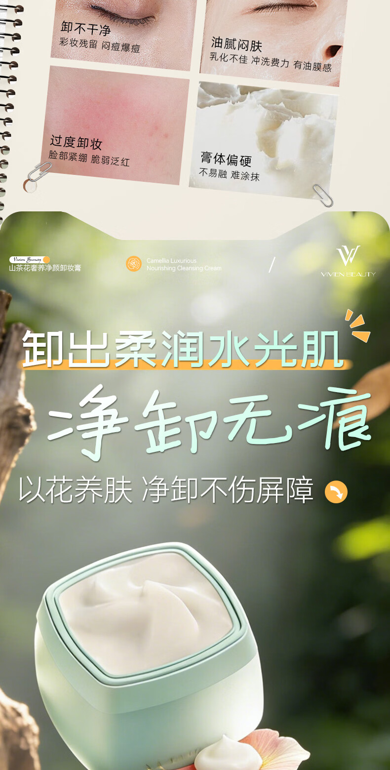 VIVIEN BEAUTY山茶花净颜卸妆膏卸妆油水面部深层清洁温和无残留滋润不假滑 【单个正装】山茶花卸妆膏100ml+试用装