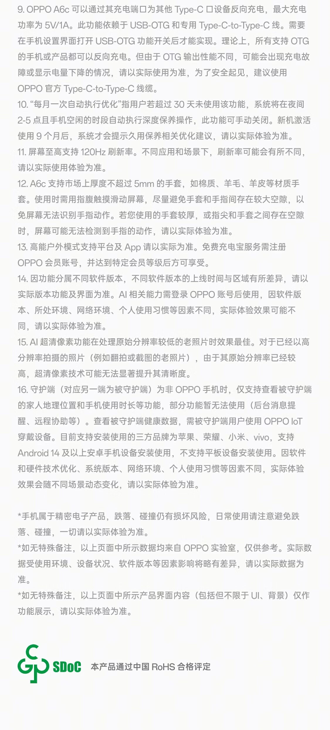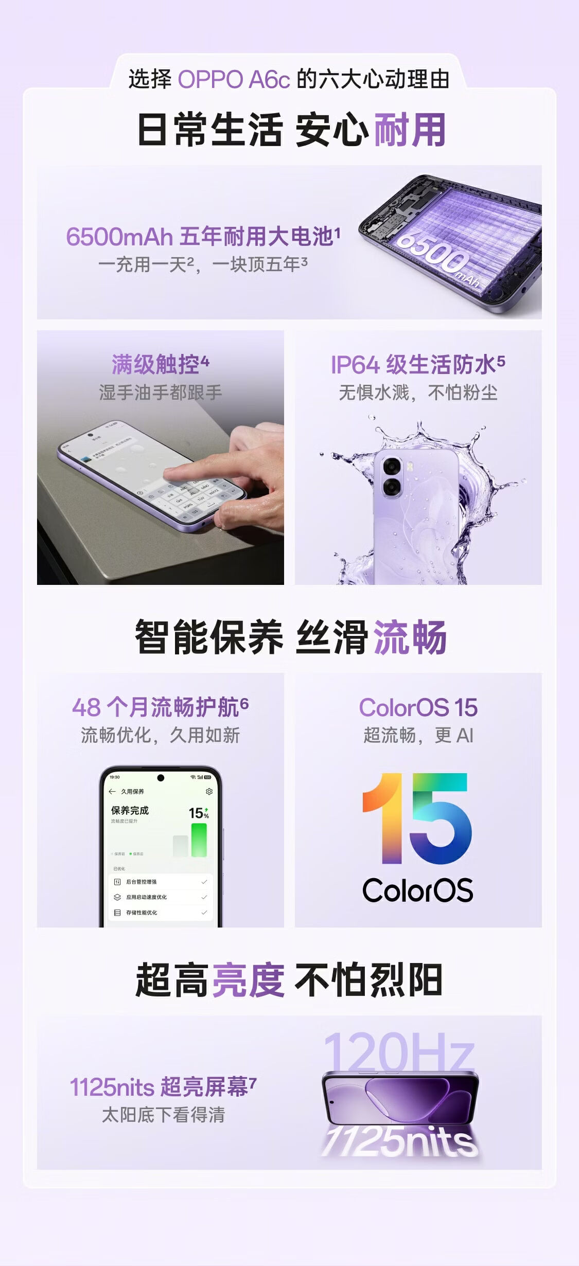 OPPO A6c 6GB+128GB 橄榄绿 6500mAh耐用大电池 IP64级生活防水 老年人智能手机 新品上市 国家补贴