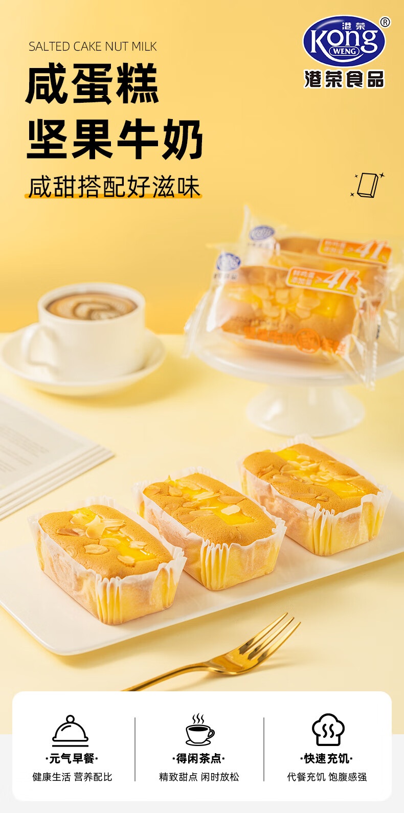 港荣蛋糕坚果牛奶咸蛋糕480g面包早餐零食饼干西式糕点甜品礼品盒物箱