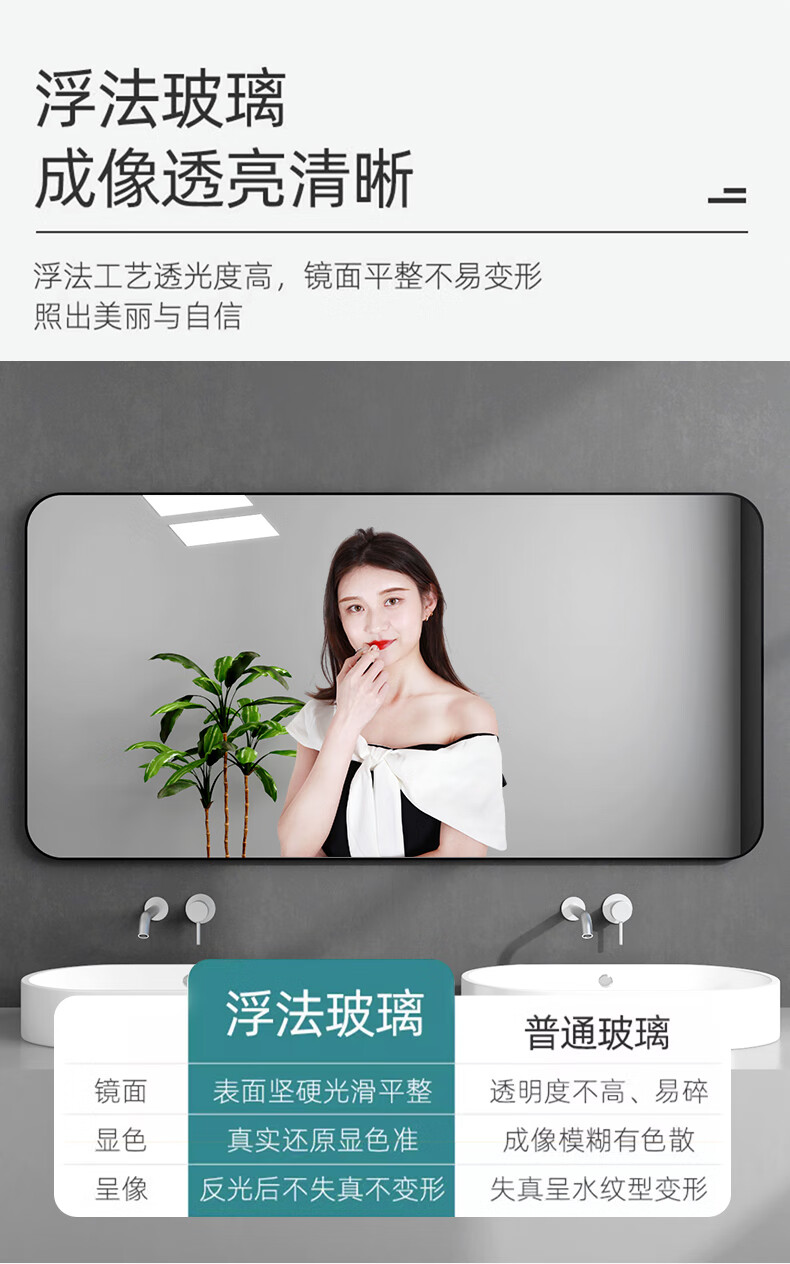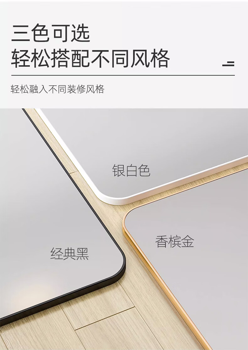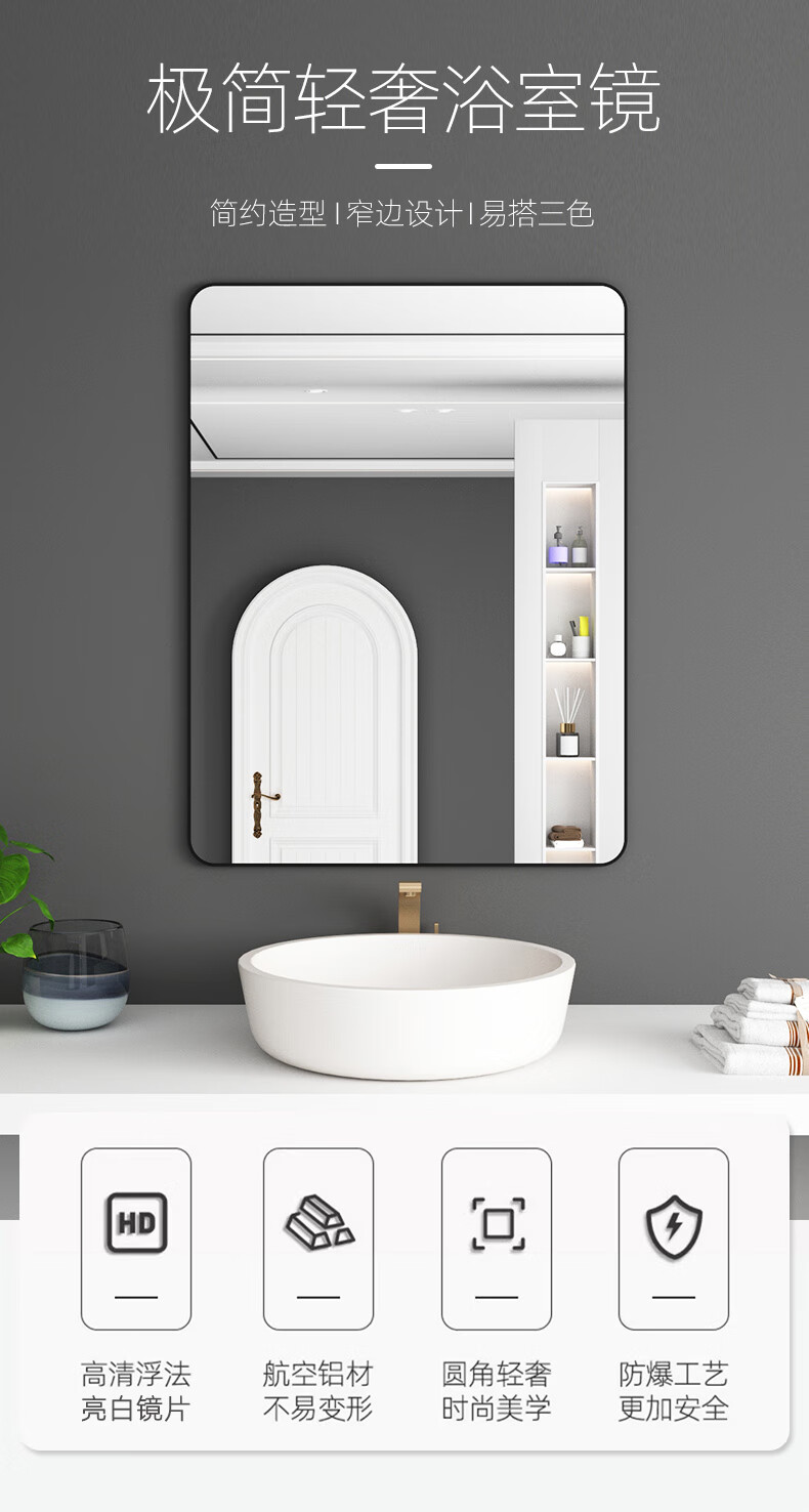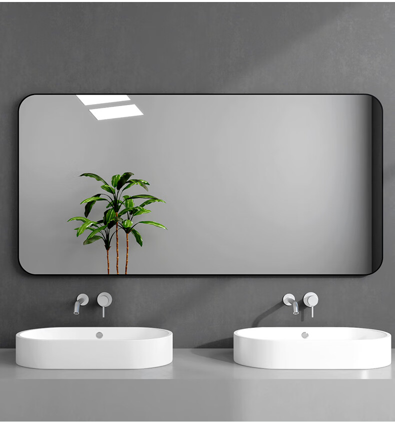 诗元卫生间镜子洗漱台上贴墙镜自粘酒店厕所仪容镜化妆镜大尺寸浴室镜 静谧黑 60*80【热卖尺寸】