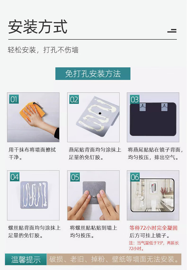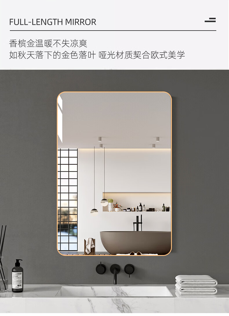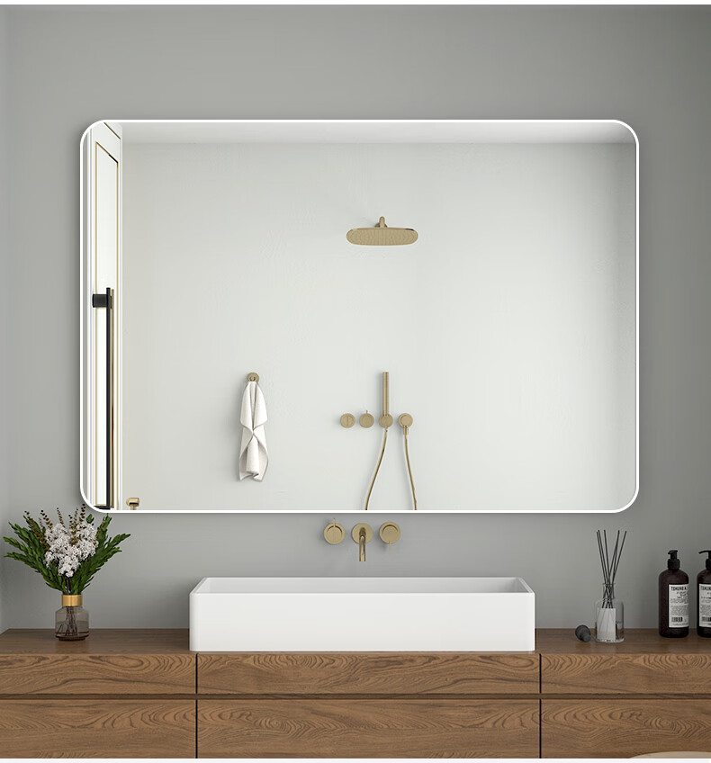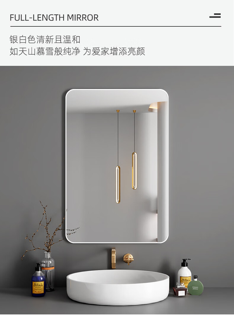 诗元卫生间镜子洗漱台上贴墙镜自粘酒店厕所仪容镜化妆镜大尺寸浴室镜 静谧黑 60*80【热卖尺寸】