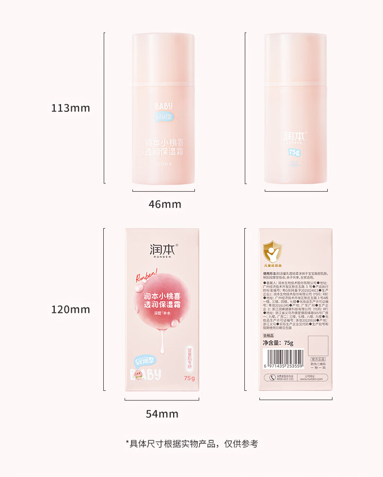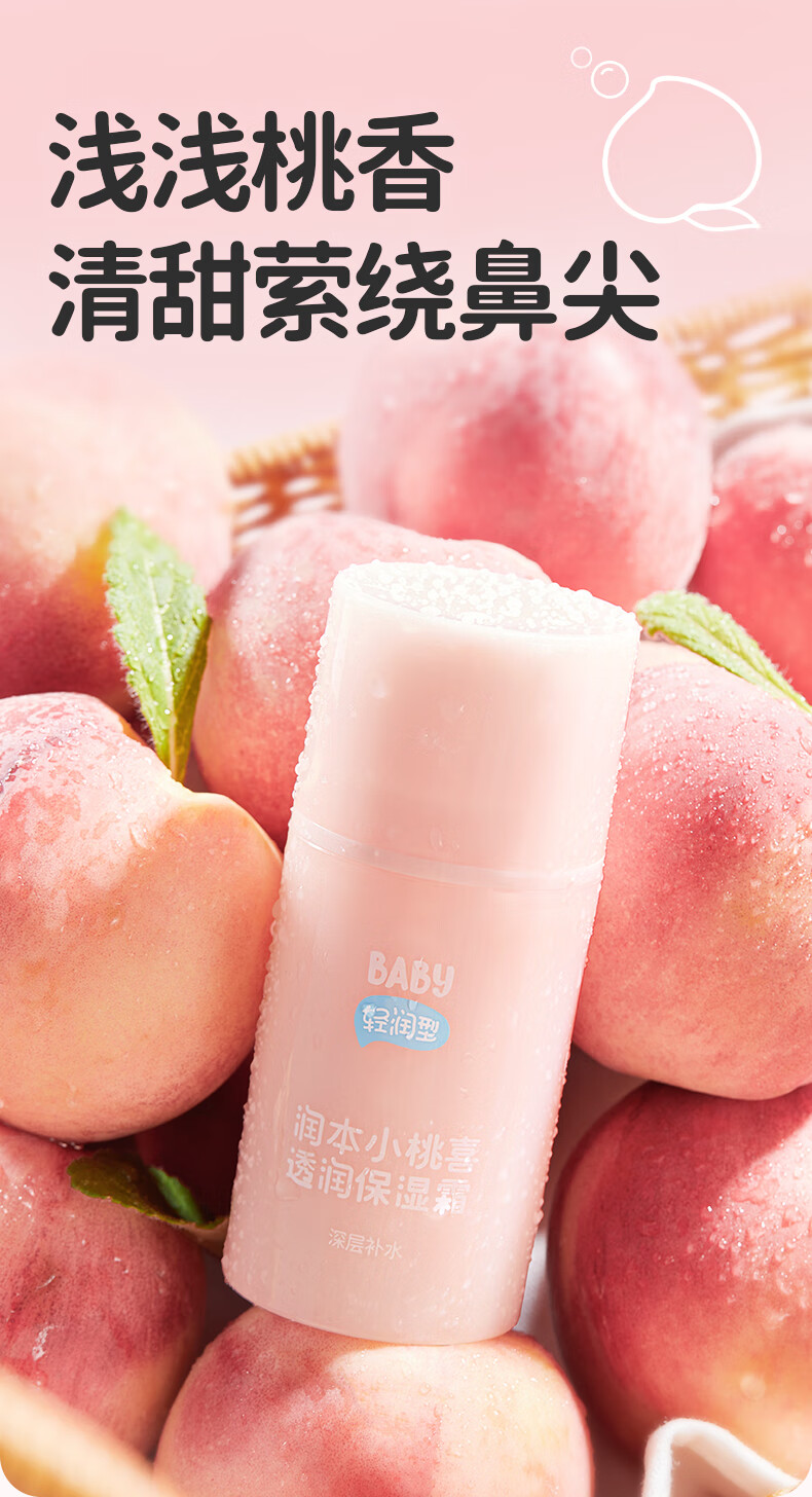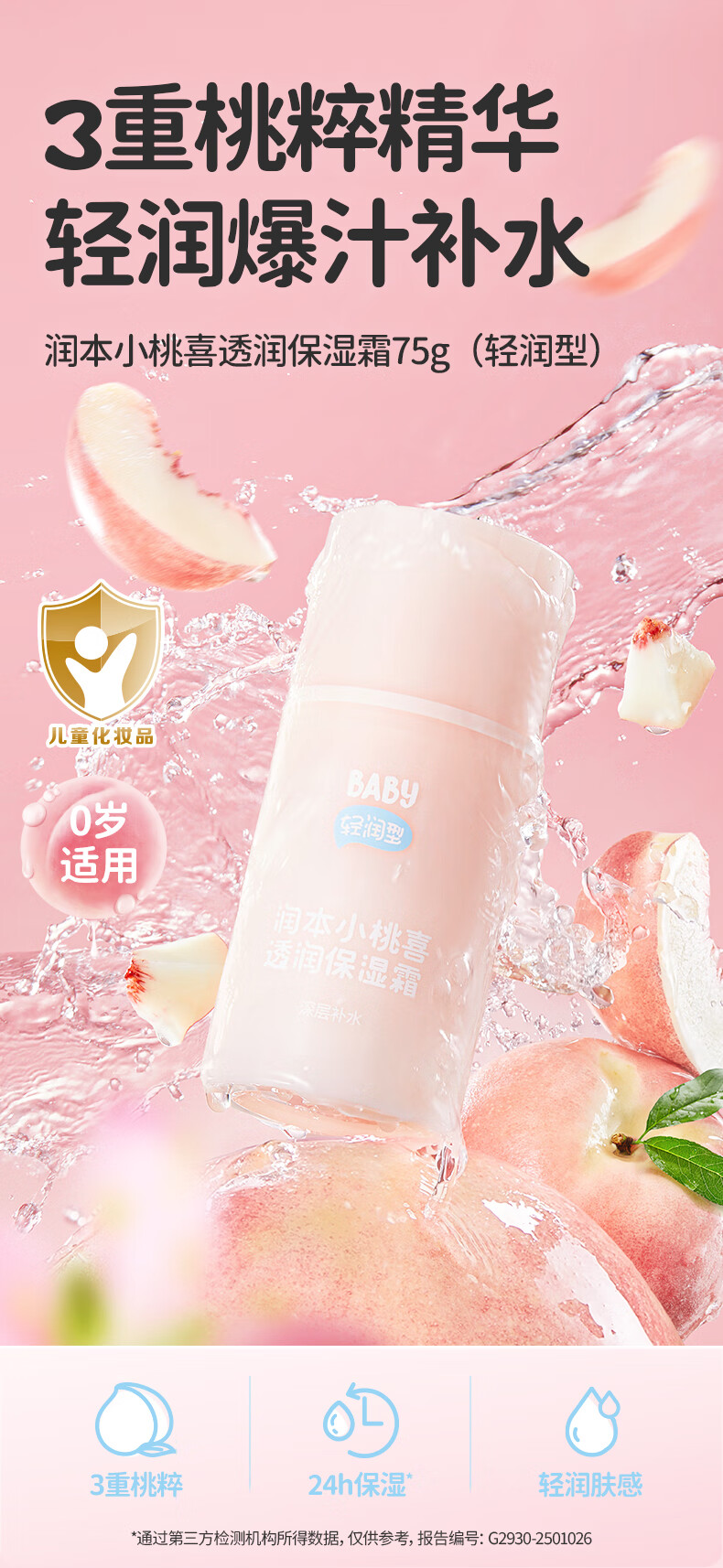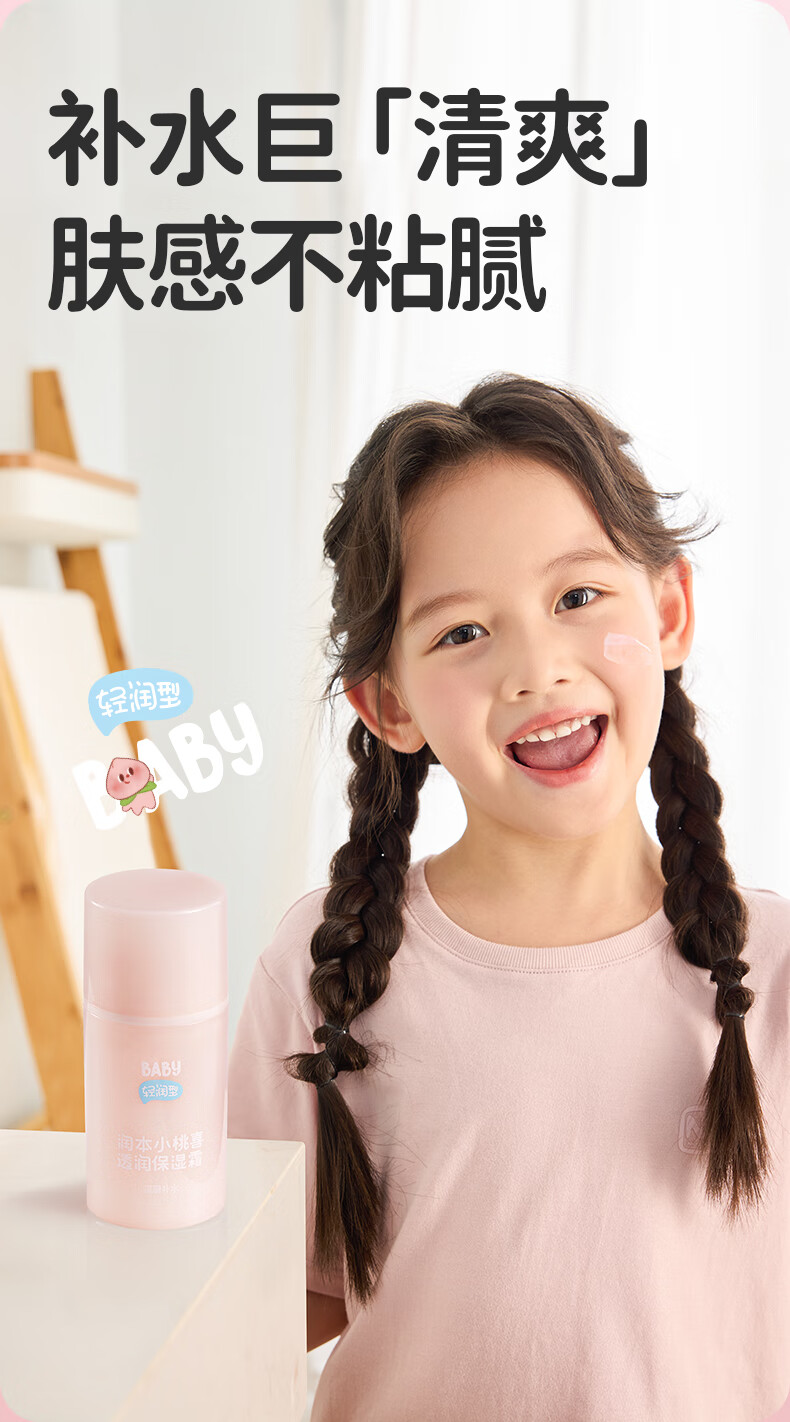 润本儿童宝宝婴儿面霜母婴补水保湿护肤小桃喜透润保湿霜75g轻润款