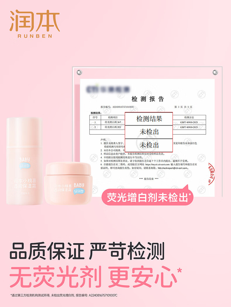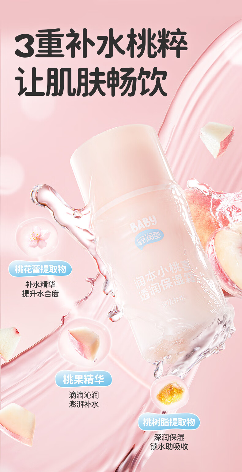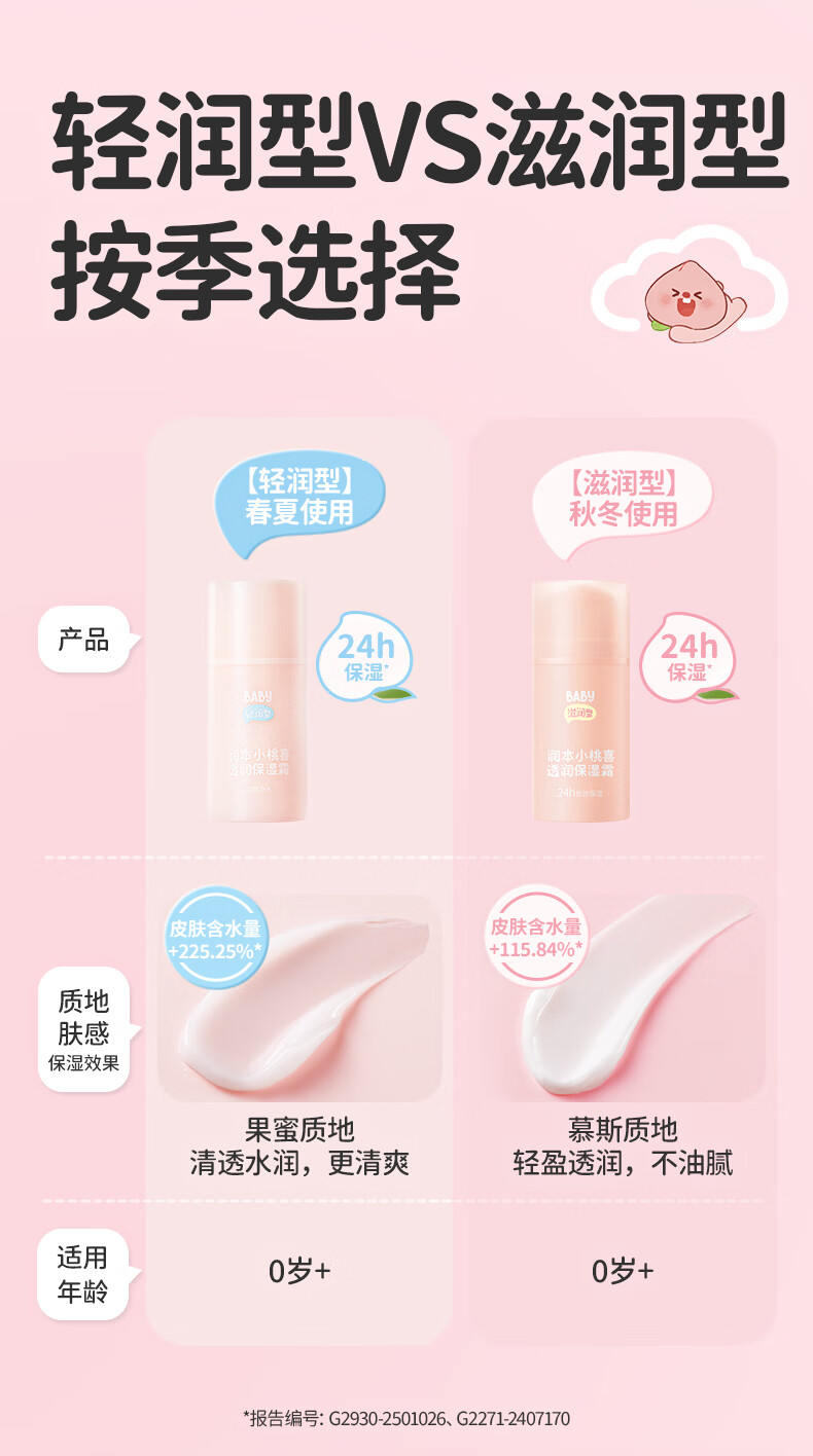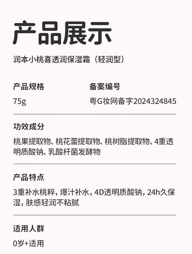 润本儿童宝宝婴儿面霜母婴补水保湿护肤小桃喜透润保湿霜75g轻润款