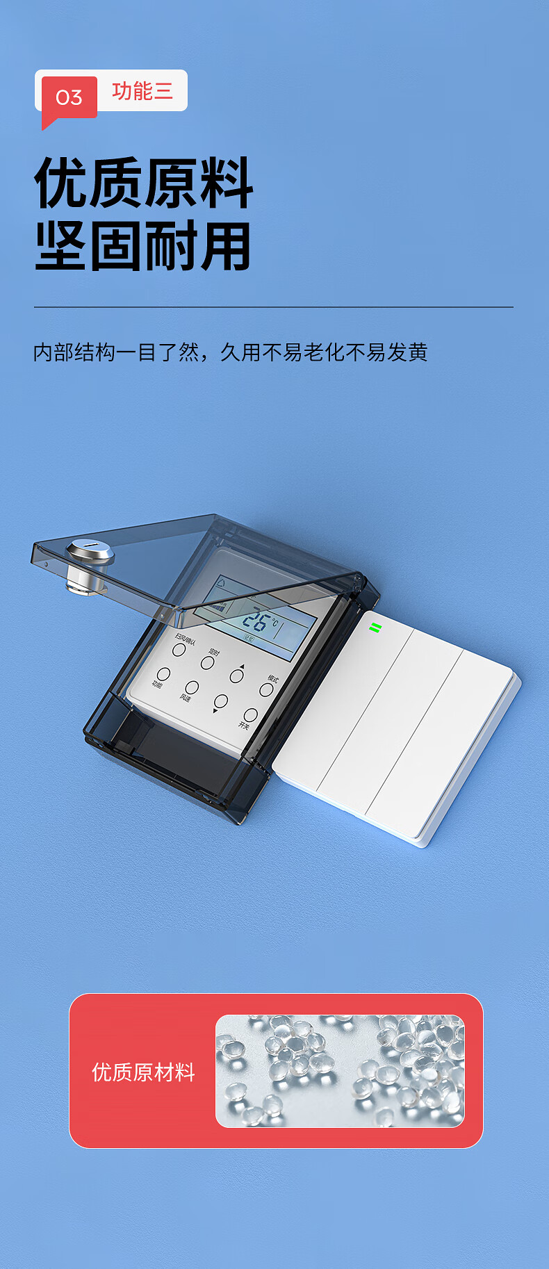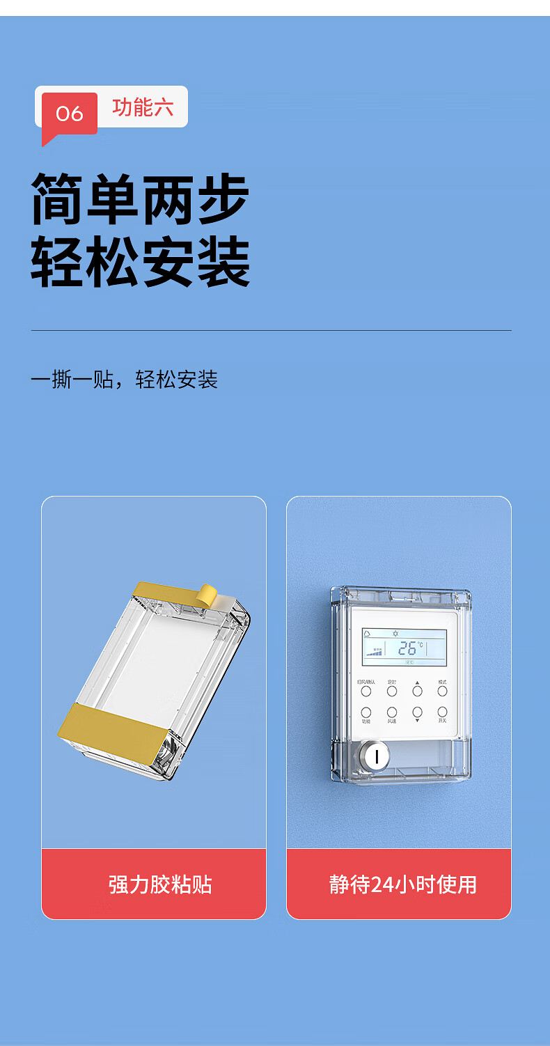 国际电工中央空调面板防误触不伤墙遮光保护盖温控器保护盖开关插座防水罩 自带锁粘贴防水盒-白色